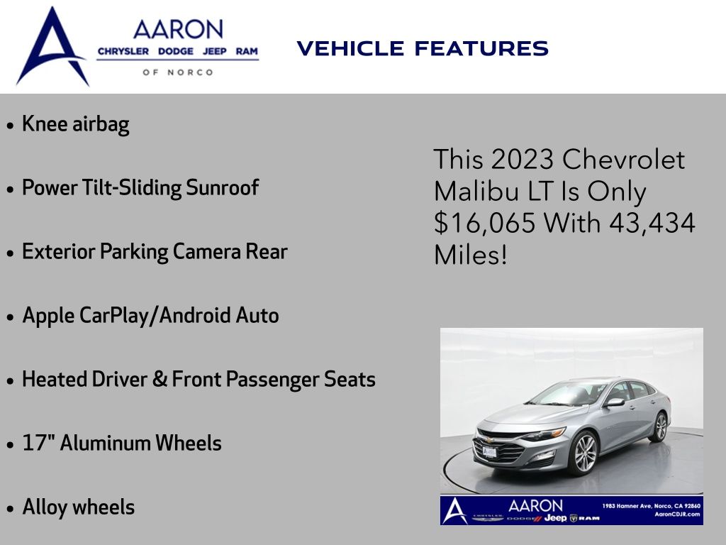 Priced below KBB Fair Purchase Price!FACTORY WARRANTY, FRESH OIL CHANGE, NEW FILTERS, NEW WIPERS, Malibu LT 1LT, 4D Sedan, 1.5L DOHC, FWD, 17" Aluminum Wheels, 8-Way Power Driver Seat Adjuster, Alloy wheels, Apple CarPlay/Android Auto, Dual front side impact airbags, Exterior Parking Camera Rear, Front dual zone A/C, Heated Driver & Front Passenger Seats, Knee airbag, Overhead airbag, Power Tilt-Sliding Sunroof, Preferred Equipment Group 1LT, Premium audio system: Chevrolet Infotainment 3 Plus.Clean CARFAX.CARFAX One-Owner.