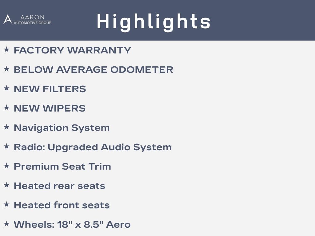 Priced below KBB Fair Purchase Price!FACTORY WARRANTY, BELOW AVERAGE ODOMETER, NEW FILTERS, NEW WIPERS, 4D Sedan, Electric Motor, 1-Speed Automatic, RWD, Alloy wheels, Dual front side impact airbags, Exterior Parking Camera Rear, Front dual zone A/C, Heated front seats, Heated rear seats, HVAC memory, Knee airbag, Lane Departure Warning System, Memory seat, Navigation System, Overhead airbag, Premium Seat Trim, Radio: Upgraded Audio System, Wheels: 18" x 8.5" Aero.Clean CARFAX.CARFAX One-Owner.