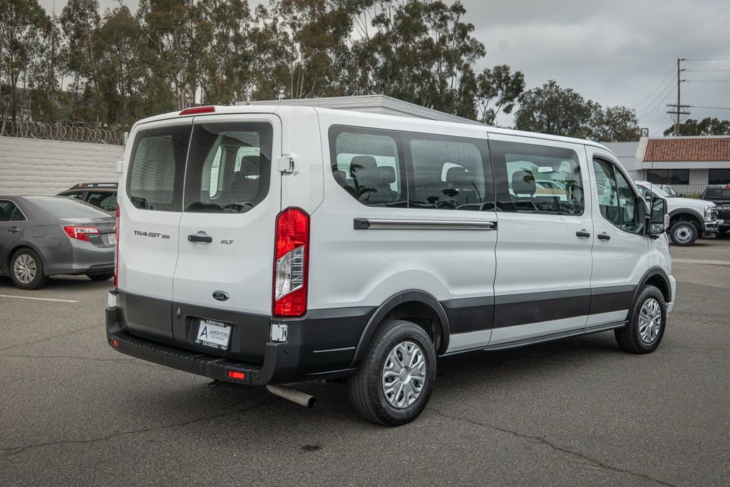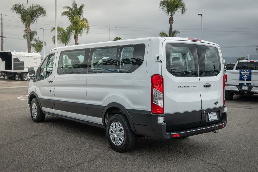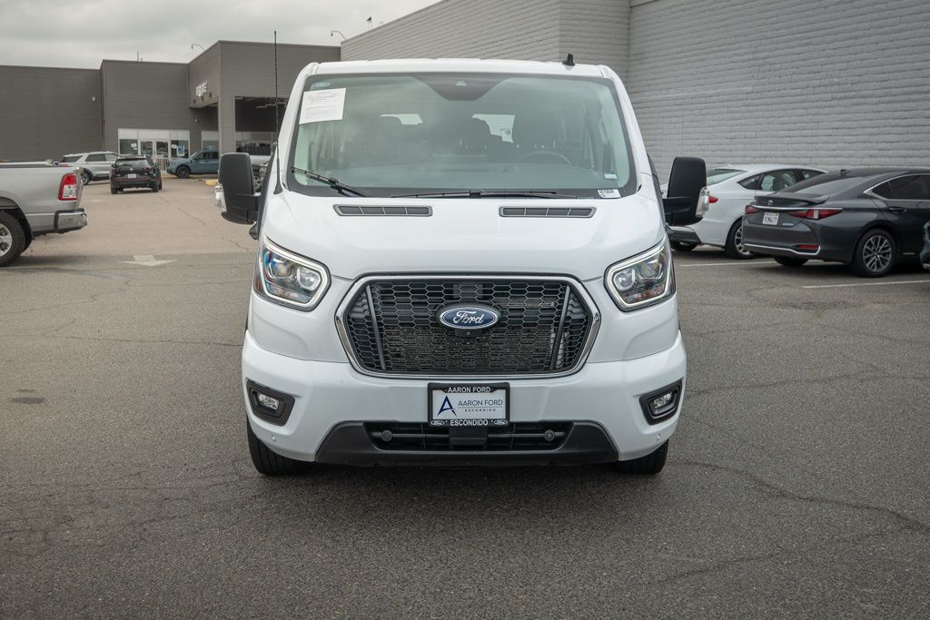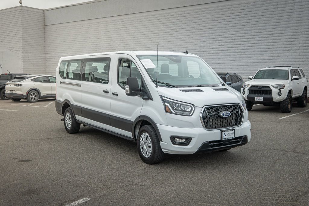 Oxford White 2023 Ford Transit-350 XLT RWD 10-Speed Automatic with Overdrive 3.5L V6 Flex Fuel 360-Degree Camera w/Split View, 3rd row seats: split-bench, 4th-Row Bench Seat, Front Fog Lamps, Honeycomb Mesh Grille w/Chrome Surround, Order Code 302A, Power windows, Remote keyless entry, Reverse Sensing System.
