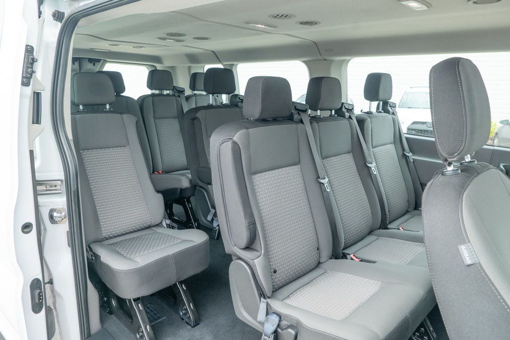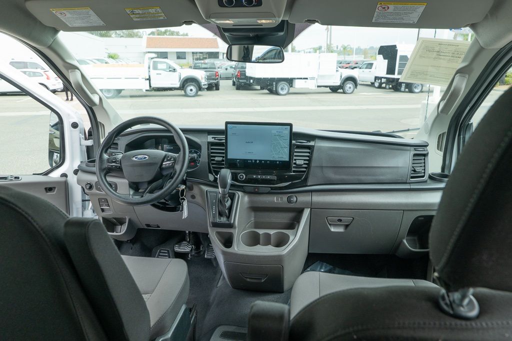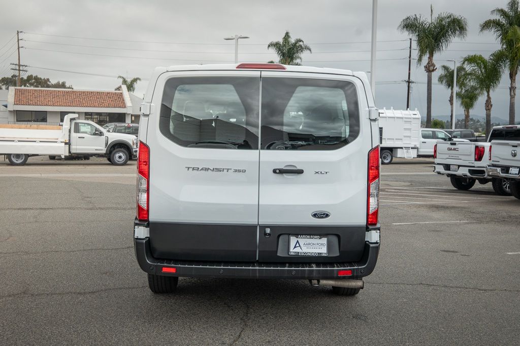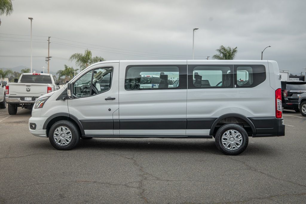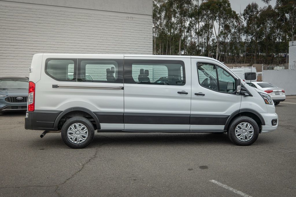 Oxford White 2023 Ford Transit-350 XLT RWD 10-Speed Automatic with Overdrive 3.5L V6 Flex Fuel 360-Degree Camera w/Split View, 3rd row seats: split-bench, 4th-Row Bench Seat, Front Fog Lamps, Honeycomb Mesh Grille w/Chrome Surround, Order Code 302A, Power windows, Remote keyless entry, Reverse Sensing System.