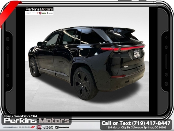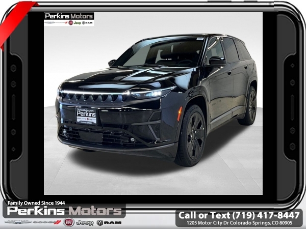 Factory MSRP: $72,590 $10,893 off MSRP! Priced below KBB Fair Purchase Price! Diamond Black Crystal Pearlcoat 2025 Jeep Wagoneer S Launch Edition 4WD 1-Speed Automatic Electric Motor<br><br>Check us out at www.perkinsmotors.com to see our specials! Since opening our doors in 1944, we’ve been proud to serve Colorado Springs, CO, and the surrounding areas of Pueblo, Castle Rock and Denver, CO. Throughout this time of being family owned for 80 years, we’ve maintained a firm commitment to our customers: to offer a wide selection of New Chrysler, Dodge, Fiat, Jeep, and Ram vehicles and quality pre-owned vehicles, and provide a quick, no-hassle car-buying process that ensures everyone drives off the lot satisfied with their purchase.<br><br>Luxury Group (115V Auxiliary Power Outlet, Digital Rearview Mirror, Front Passenger Interactive Display, Hands Free Power Liftgate, Heads-Up Display, and Roll-Up Tonneau Cover), Quick Order Package 25E, Two Tone Paint Group, 19 Speakers, 4-Wheel Disc Brakes, ABS brakes, Air Conditioning, Alloy wheels, AM/FM radio: SiriusXM with 360L, Apple CarPlay/Android Auto, Audio memory, Auto High-beam Headlights, Auto-dimming door mirrors, Auto-dimming Rear-View mirror, Automatic temperature control, Brake assist, Bumpers: body-color, Compass, Cruise Control, Delay-off headlights, Driver door bin, Driver vanity mirror, Dual front impact airbags, Dual front side impact airbags, Electronic Stability Control, Emergency communication system: Jeep Connect, Four wheel independent suspension, Front anti-roll bar, Front Bucket Seats, Front Center Armrest w/Storage, Front dual zone A/C, Front fog lights, Front reading lights, Fully automatic headlights, Garage door transmitter, Heated door mirrors, Heated front seats, Heated rear seats, Heated steering wheel, Heavy Duty Suspension, Illuminated entry, Knee airbag, Low tire pressure warning, Memory seat, Navigation System, Neo Ultra Lux III Seats, Occupant sensing airbag, Outside temperature display, Overhead airbag, Panic alarm, ParkView Rear Back-Up Camera, Passenger door bin, Passenger vanity mirror, Power door mirrors, Power driver seat, Power Liftgate, Power moonroof, Power passenger seat, Power steering, Power windows, Premium audio system: UConnect 5, Radio data system, Radio: Uconnect 5 Nav w/12.3 Display, Rain sensing wipers, Rear air conditioning, Rear anti-roll bar, Rear dual zone A/C, Rear reading lights, Rear seat center armrest, Rear side impact airbag, Rear window defroster, Rear window wiper, Remote keyless entry, Security system, Speed-sensing steering, Speed-Sensitive Wipers, Split folding rear seat, Spoiler, Steering wheel memory, Steering wheel mounted audio controls, Telescoping steering wheel, Tilt steering wheel, Traction control, Trip computer, Turn signal indicator mirrors, Variably intermittent wipers, Ventilated front seats, Ventilated rear seats, and Wheels: 20 x 8.5 Painted Aluminum Design 1.<br><br>104/90 City/Highway MPG Sale price includes all manufacture's incentives and dealer discounts. Sale price not available on lease or compatible with special APR. $1000 - 2025 West BC Auto Show Bonus Cash . Exp. 04/30/2025 $6500 - 2025 National Retail Consumer Cash. Exp. 04/30/2025
