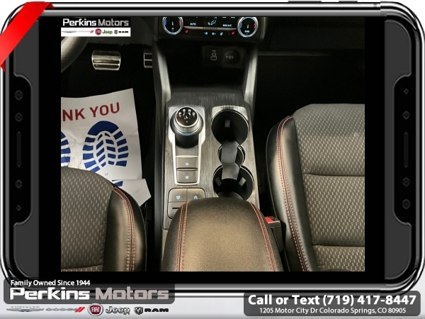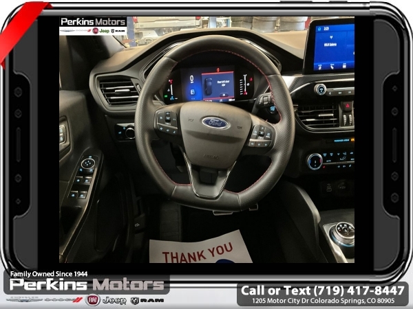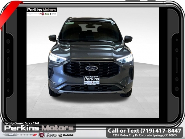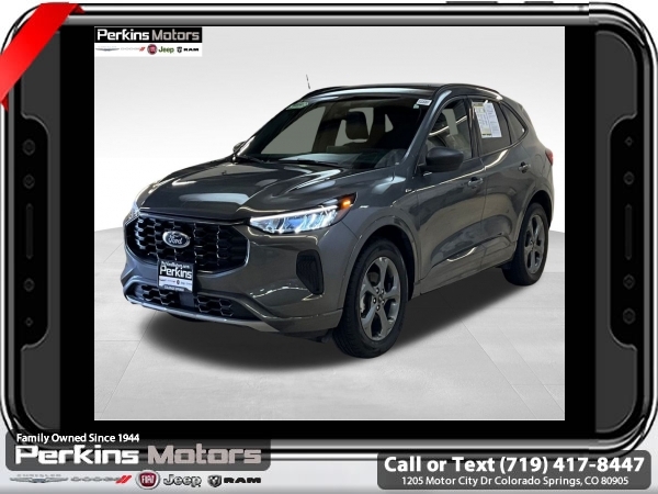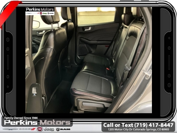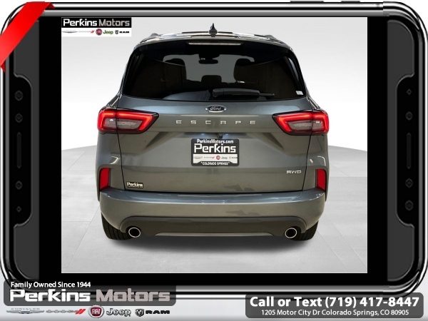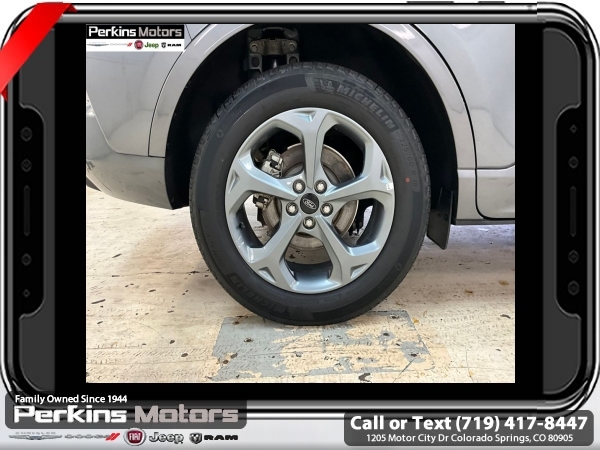 Gray Metallic AWD 1.5L EcoBoost 8-Speed Automatic<br><br>AWD, Cold Weather Package, Heated Front Row Seats, Heated Sideview Mirrors, Heated Steering Wheel, Remote Starter System.<br><br><br>CARFAX One-Owner. Clean CARFAX.<br><br>Check us out at www.perkinsmotors.com to see our specials! Since opening our doors in 1944, we’ve been proud to serve Colorado Springs, CO, and the surrounding areas of Pueblo, Castle Rock and Denver, CO. Throughout this time of being family owned for 80 years, we’ve maintained a firm commitment to our customers: to offer a wide selection of New Chrysler, Dodge, Fiat, Jeep, and Ram vehicles and quality pre-owned vehicles, and provide a quick, no-hassle car-buying process that ensures everyone drives off the lot satisfied with their purchase.<br><br><br>Cold Weather Package (Heated Front Row Seats, Heated Sideview Mirrors, Heated Steering Wheel, and Remote Starter System), Equipment Group 300A, AWD, 3.81 Axle Ratio, 4-Wheel Disc Brakes, 6 Speakers, ABS brakes, Air Conditioning, Alloy wheels, AM/FM radio: SiriusXM, AM/FM Stereo, Auto High-beam Headlights, Automatic temperature control, Brake assist, Bumpers: body-color, Compass, Cruise Control, Delay-off headlights, Driver door bin, Driver vanity mirror, Dual front impact airbags, Dual front side impact airbags, Electronic Stability Control, Emergency communication system: SYNC 4 911 Assist, Exterior Parking Camera Rear, FordPass Connect, Four wheel independent suspension, Front anti-roll bar, Front Bucket Seats, Front Center Armrest, Front dual zone A/C, Front License Plate Bracket, Front reading lights, Fully automatic headlights, Illuminated entry, Knee airbag, Low tire pressure warning, Occupant sensing airbag, Outside temperature display, Overhead airbag, Overhead console, Panic alarm, Passenger door bin, Passenger vanity mirror, Power door mirrors, Power driver seat, Power Liftgate, Power steering, Power windows, Radio data system, Rear anti-roll bar, Rear reading lights, Rear seat center armrest, Rear window defroster, Rear window wiper, Remote keyless entry, Roof rack: rails only, Speed-sensing steering, Speed-Sensitive Wipers, Split folding rear seat, Spoiler, Sport steering wheel, Steering wheel mounted audio controls, SYNC 4, Tachometer, Telescoping steering wheel, Tilt steering wheel, Traction control, Trip computer, Variably intermittent wipers, Vinyl/Cloth Front Sport Contour Bucket Seats, and Wheels: 18 Rock Metallic Painted Aluminum.