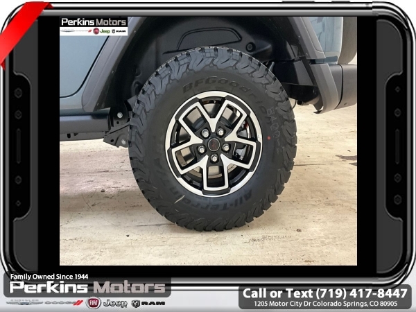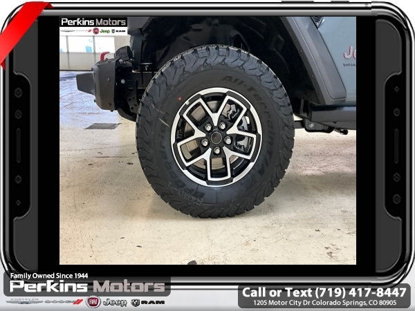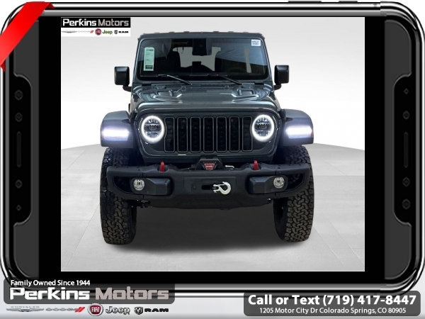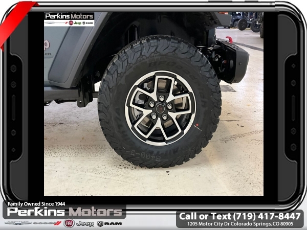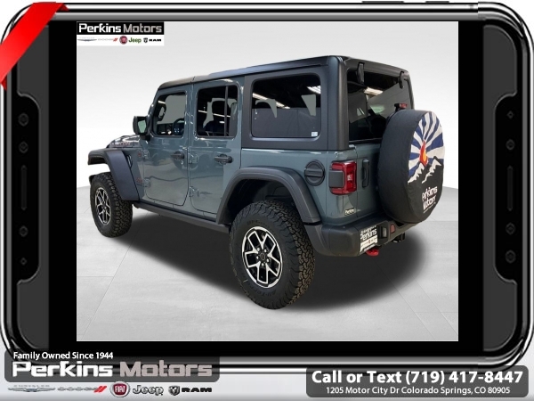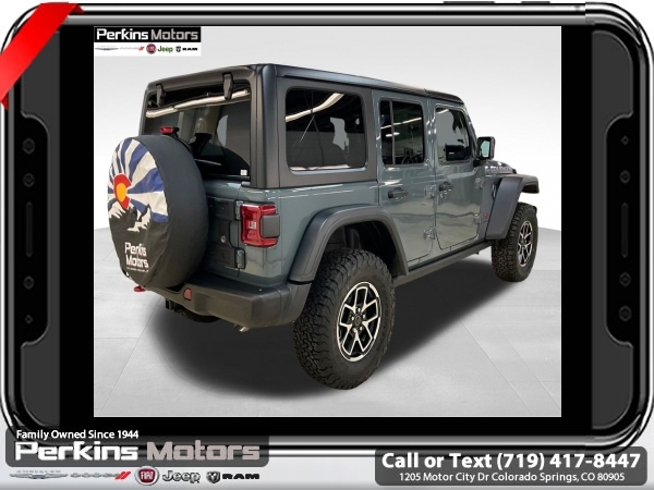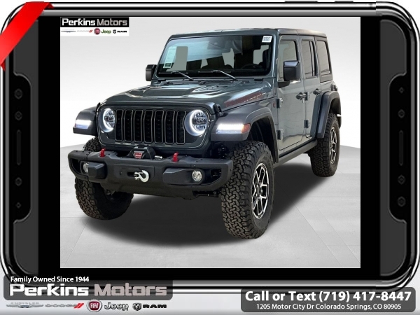 Factory MSRP: $66,690 $8,400 off MSRP! Anvil Clear Coat 2025 Jeep Wrangler Rubicon 4WD 8-Speed Automatic 2.0L I4 DOHC<br><br>Check us out at www.perkinsmotors.com to see our specials! Since opening our doors in 1944, we’ve been proud to serve Colorado Springs, CO, and the surrounding areas of Pueblo, Castle Rock and Denver, CO. Throughout this time of being family owned for 80 years, we’ve maintained a firm commitment to our customers: to offer a wide selection of New Chrysler, Dodge, Fiat, Jeep, and Ram vehicles and quality pre-owned vehicles, and provide a quick, no-hassle car-buying process that ensures everyone drives off the lot satisfied with their purchase.<br><br>Capability Package (DISC) (Steel Front Bumper, Steel Rear Bumper, and Warn Winch), Convenience Group (Heated Front Seats, Heated Steering Wheel, and Universal Garage Door Opener), Quick Order Package 22R Rubicon, 4-Wheel Disc Brakes, 4.10 Rear Axle Ratio, 4G LTE Wi-Fi Hot Spot, 8 Speakers, 97 MPH Vehicle Max Speed Calibration, ABS brakes, Air Conditioning, Alloy wheels, AM/FM radio: SiriusXM, Apple CarPlay, Apple CarPlay/Android Auto, Automatic temperature control, Aux Battery, Auxiliary Switches, Black 3-Piece Hard Top, Brake assist, Class II Receiver Hitch, Cloth Low-Back Bucket Seats, Compass, Connectivity - US/Canada, Cruise Control, Delay-off headlights, Driver door bin, Driver vanity mirror, Dual front impact airbags, Dual front side impact airbags, Electronic Stability Control, Emergency communication system: Jeep Connect, Freedom Panel Storage Bag, Front anti-roll bar, Front Bucket Seats, Front Center Armrest w/Storage, Front dual zone A/C, Front fog lights, Front License Plate Bracket (DISC), Front reading lights, Fully automatic headlights, Google Android Auto, Heated door mirrors, Illuminated entry, Integrated roll-over protection, Jeep Trail Rated Kit, Low tire pressure warning, MOPAR All-Weather Floor Mats, MOPAR Cargo Tub Liner, MOPAR Hardtop Headliner, MOPAR Hinge-Gate Reinforcement, MOPAR Plastic Door Sill Guards, Non-Lock Fuel Cap w/o Discriminator, Occupant sensing airbag, Outside temperature display, Overhead airbag, Panic alarm, ParkView Rear Back-Up Camera, Passenger door bin, Passenger vanity mirror, Performance Suspension, Power door mirrors, Power steering, Power windows, Radio data system, Radio: Uconnect 5 w/12.3 Display, Rear anti-roll bar, Rear reading lights, Rear Window Defroster, Rear Window Wiper/Washer, Remote keyless entry, Security system, Split folding rear seat, Steering wheel mounted audio controls, Stop-Start Dual Battery System, Tachometer, Telescoping steering wheel, Tilt steering wheel, Traction control, Trip computer, Variably intermittent wipers, Voltmeter, and Wheels: 17 x 7.5 Machined/Painted Black.