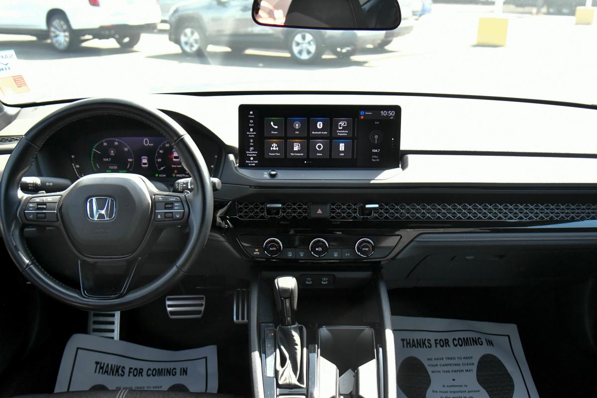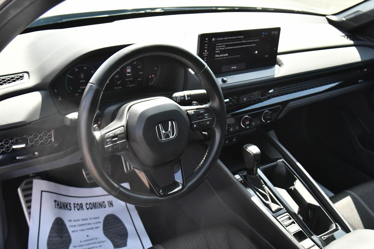 Scores 41 Highway MPG and 46 City MPG! This Honda Accord Hybrid delivers a Gas/Electric I-4 2.0 L/122 engine powering this Variable transmission. Wheels: 19 x 8.5J Berlina Black -inc: machined face, Vehicle Stability Assist (VSA) Electronic Stability Control (ESC), Valet Function.*This Honda Accord Hybrid Features the Following Options *Trunk Rear Cargo Access, Trip Computer, Transmission: Electronic Continuously Variable -inc: econ, normal, sport and individual modes, Traffic Jam Assist, Tires: 235/40R19 96V AS, Tire Specific Low Tire Pressure Warning, Tire mobility kit, Strut Front Suspension w/Coil Springs, Speed Sensitive Variable Intermittent Wipers, Smart Device Remote Engine Start.