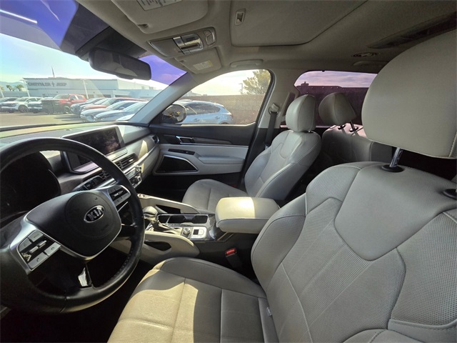 Recent Arrival!Priced below KBB Fair Purchase Price!Odometer is 20661 miles below market average!Ebony Black 2020 Kia Telluride EX AWD 8-Speed Automatic 3.8L V6 DGI DOHC Dual CVVTIf you don't drive here, you can't save here!Awards: * Motor Trend Automobiles of the year * JD Power Automotive Performance, Execution and Layout (APEAL) Study * 2020 KBB.com 10 Favorite New-for-2020 Cars * 2020 KBB.com Best Buy Awards * NACTOY 2020 North American Utility of the Year * 2020 KBB.com 10 Best SUVs Worth Waiting ForPrice may not include recon fee. Towing Package (Self-Leveling Rear Suspension and Tow Hitch w/Harness), 3.648 Axle Ratio, 3rd row seats: split-bench, 4-Wheel Disc Brakes, 6 Speakers, ABS brakes, Air Conditioning, Alloy wheels, AM/FM radio: SiriusXM, Apple CarPlay & Android Auto, Auto-dimming Rear-View mirror, Automatic temperature control, Brake assist, Bumpers: body-color, Cargo Cover, Carpeted Floor Mats, Compass, Delay-off headlights, Driver door bin, Driver vanity mirror, Dual front impact airbags, Dual front side impact airbags, Electronic Stability Control, Emergency communication system: 911 Connect, Four wheel independent suspension, Front anti-roll bar, Front Bucket Seats, Front Center Armrest, Front dual zone A/C, Front reading lights, Fully automatic headlights, Heated & Ventilated Front Bucket Seats, Heated door mirrors, Heated front seats, Hybrid Cargo Net, Illuminated entry, Knee airbag, Leather Shift Knob, Leather steering wheel, Leather-Trimmed Upholstery, Low tire pressure warning, Navigation System, Occupant sensing airbag, Outside temperature display, Overhead airbag, Overhead console, Panic alarm, Passenger door bin, Passenger vanity mirror, Power door mirrors, Power driver seat, Power Liftgate, Power moonroof, Power passenger seat, Power steering, Power windows, Radio data system, Radio: AM/FM/MP3/SiriusXM Audio System, Rear air conditioning, Rear anti-roll bar, Rear audio controls, Rear reading lights, Rear seat center armrest, Rear window defroster, Rear window wiper, Reclining 3rd row seat, Remote keyless entry, Roof rack: rails only, Security system, Speed control, Speed-sensing steering, Split folding rear seat, Spoiler, Steering wheel mounted audio controls, Tachometer, Telescoping steering wheel, Tilt steering wheel, Traction control, Trip computer, Turn signal indicator mirrors, Variably intermittent wipers, Ventilated front seats, and Wheels: 7.5" x 18" Machined Finish Alloy.