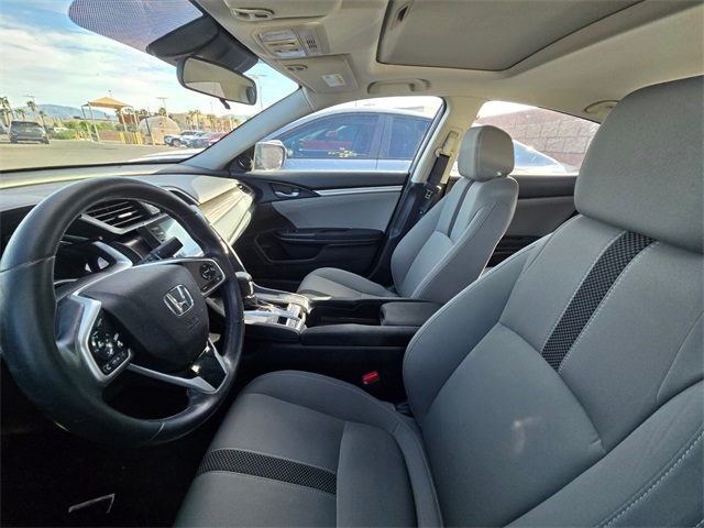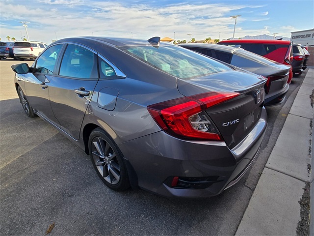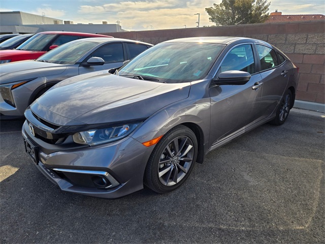 Recent Arrival!32/42 City/Highway MPGGrey 2020 Honda Civic EX FWD CVT 1.5L I-4 DI DOHC Turbocharged Cloth.If you don't drive here, you can't save here!Price may not include recon fee. Cloth, 4-Wheel Disc Brakes, 8 Speakers, ABS brakes, Adaptive Cruise Control: Adaptive Cruise Control (ACC) with Low-Speed Follow, Air Conditioning, Alloy wheels, AM/FM radio: SiriusXM, Apple CarPlay/Android Auto, Auto High-beam Headlights, Automatic temperature control, Brake assist, Bumpers: body-color, Cloth Seat Trim, Delay-off headlights, Driver door bin, Driver vanity mirror, Dual front impact airbags, Dual front side impact airbags, Electronic Stability Control, Emergency communication system: HondaLink, Exterior Parking Camera Rear, Forward collision: Collision Mitigation Braking System (CMBS) + FCW mitigation, Four wheel independent suspension, Front anti-roll bar, Front Bucket Seats, Front Center Armrest, Front dual zone A/C, Front fog lights, Front reading lights, Fully automatic headlights, Heated door mirrors, Heated Front Bucket Seats, Heated front seats, Illuminated entry, Lane departure: Lane Keeping Assist System (LKAS) active, Leather Shift Knob, Low tire pressure warning, Occupant sensing airbag, Outside temperature display, Overhead airbag, Overhead console, Panic alarm, Passenger door bin, Passenger vanity mirror, Power door mirrors, Power driver seat, Power moonroof, Power steering, Power windows, Radio data system, Radio: 180-Watt AM/FM/HD/SiriusXM Audio System, Rear anti-roll bar, Rear seat center armrest, Rear window defroster, Remote keyless entry, Security system, Speed control, Speed-sensing steering, Speed-Sensitive Wipers, Split folding rear seat, Spoiler, Steering wheel mounted audio controls, Tachometer, Telescoping steering wheel, Tilt steering wheel, Traction control, Trip computer, and Variably intermittent wipers.