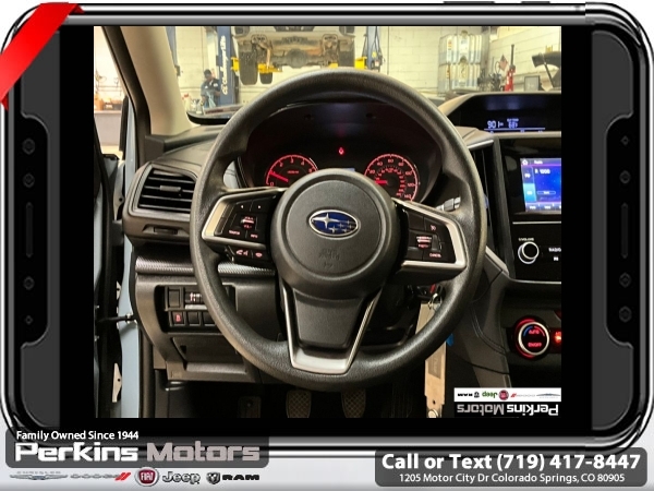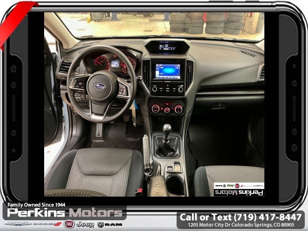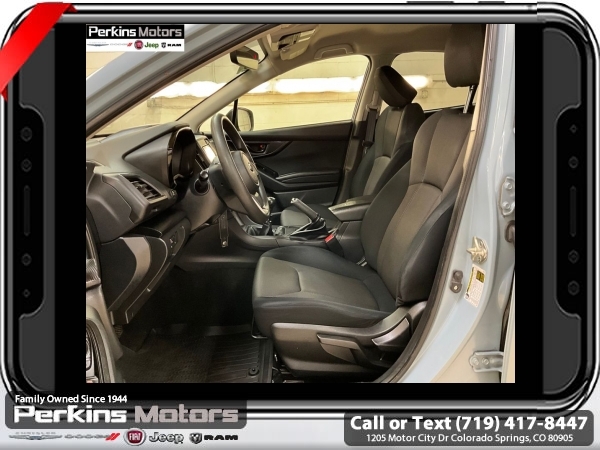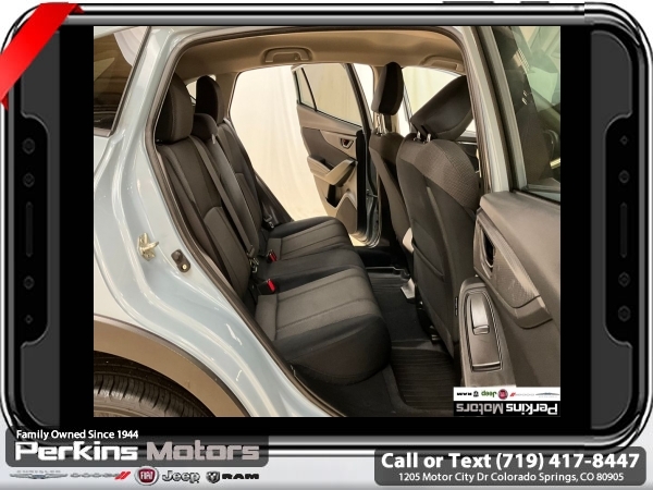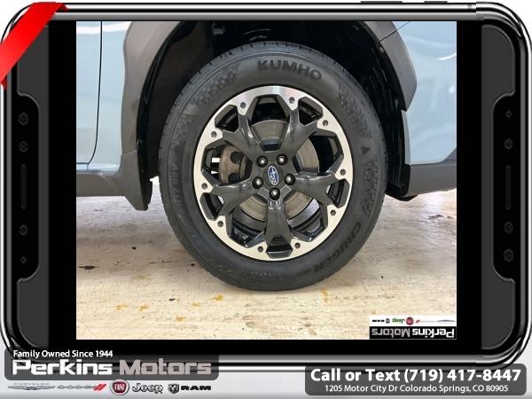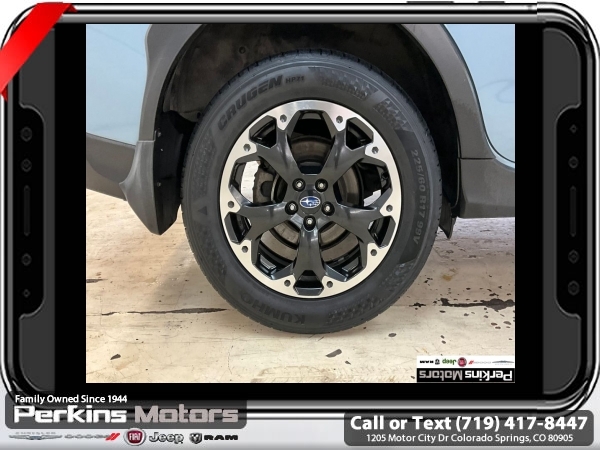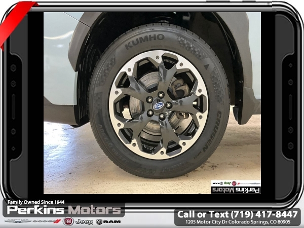 Cool Gray Khaki AWD 2.0L DOHC 6-Speed Manual<br><br><br>Check us out at www.perkinsmotors.com to see our specials! Since opening our doors in 1944, we’ve been proud to serve Colorado Springs, CO, and the surrounding areas of Pueblo, Castle Rock and Denver, CO. Throughout this time of being family owned for 80 years, we’ve maintained a firm commitment to our customers: to offer a wide selection of New Chrysler, Dodge, Fiat, Jeep, and Ram vehicles and quality pre-owned vehicles, and provide a quick, no-hassle car-buying process that ensures everyone drives off the lot satisfied with their purchase.<br><br><br>Awards:<br> * ALG Residual Value Awards, Residual Value Awards<br><br>Standard Model, 17 Alloy Wheels, 4 Speakers, 4-Wheel Disc Brakes, 4.44 Axle Ratio, ABS brakes, Air Conditioning, All-Weather Floor Liners, Alloy wheels, AM/FM radio, Anti-whiplash front head restraints, Auto-Dimming Mirror w/Compass, Automatic temperature control, Brake assist, Bumpers: body-color, Cargo Tray, Cloth Upholstery, Cruise Control, Driver door bin, Driver vanity mirror, Dual front impact airbags, Dual front side impact airbags, Electronic Stability Control, Exterior Parking Camera Rear, Four wheel independent suspension, Front anti-roll bar, Front Bucket Seats, Front Center Armrest, Front reading lights, Illuminated entry, Knee airbag, Low tire pressure warning, Occupant sensing airbag, Outside temperature display, Overhead airbag, Overhead console, Panic alarm, Passenger door bin, Passenger vanity mirror, Power door mirrors, Power steering, Power windows, Radio data system, Radio: Subaru STARLINK 6.5 Multimedia System, Rear anti-roll bar, Rear Bumper Cover, Rear window defroster, Rear window wiper, Remote keyless entry, Security system, Speed-sensing steering, Splash Guards, Split folding rear seat, Spoiler, STARLINK/Apple CarPlay/Android Auto, Steering wheel mounted audio controls, Subaru STARLINK Smartphone Integration, Tachometer, Telescoping steering wheel, Tilt steering wheel, Traction control, Trip computer, and Variably intermittent wipers.