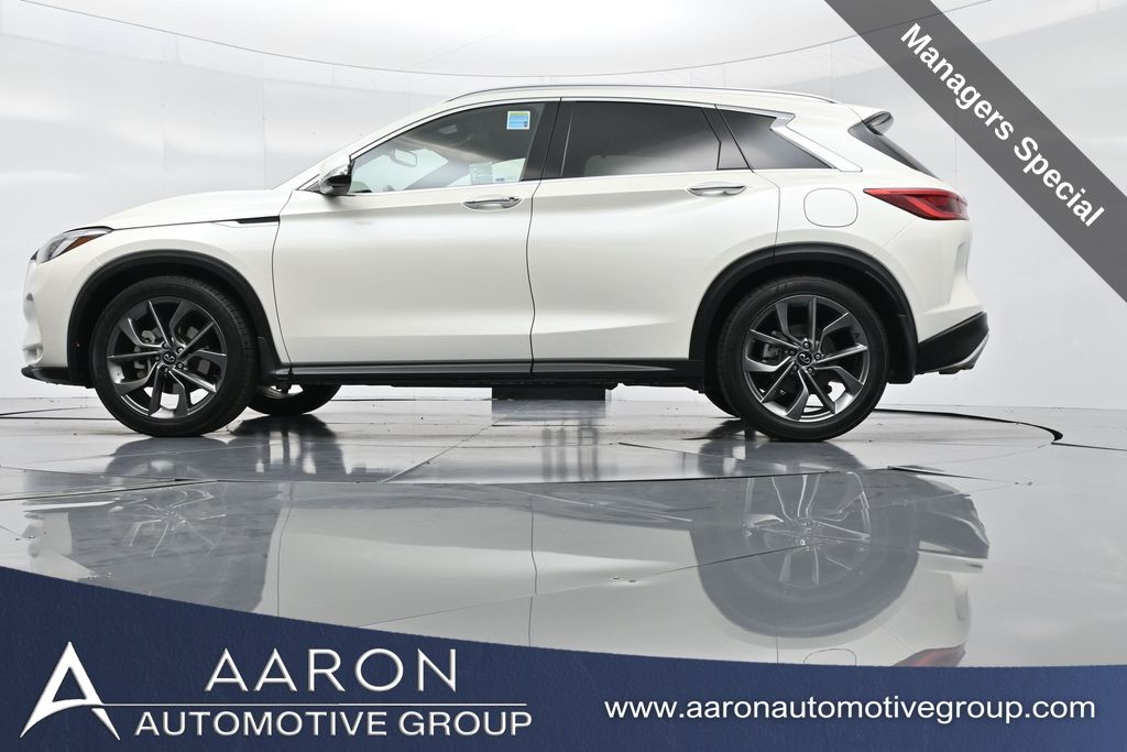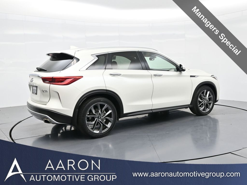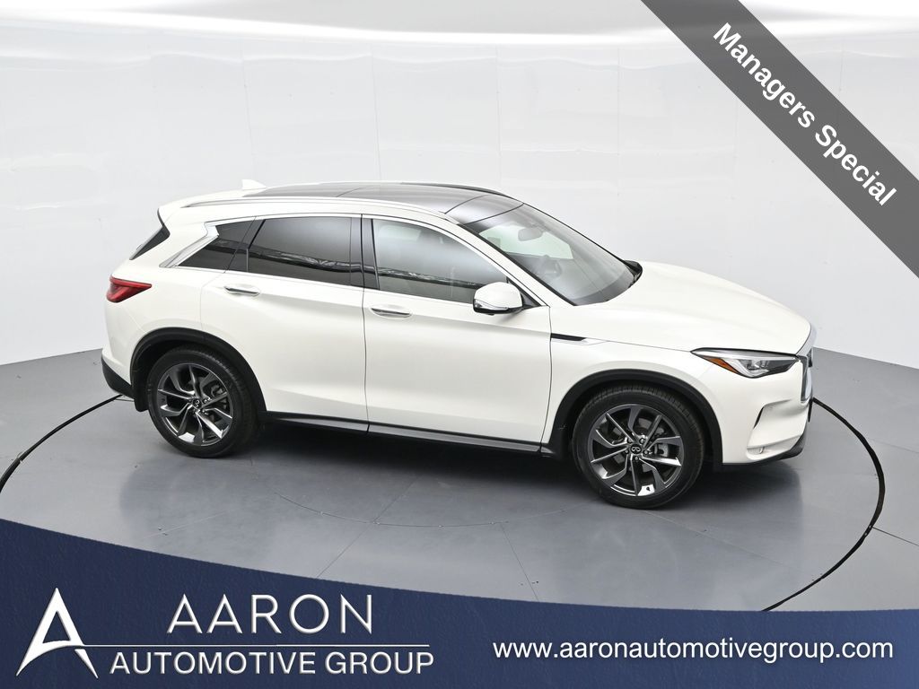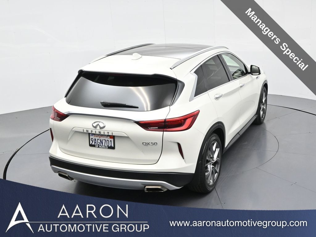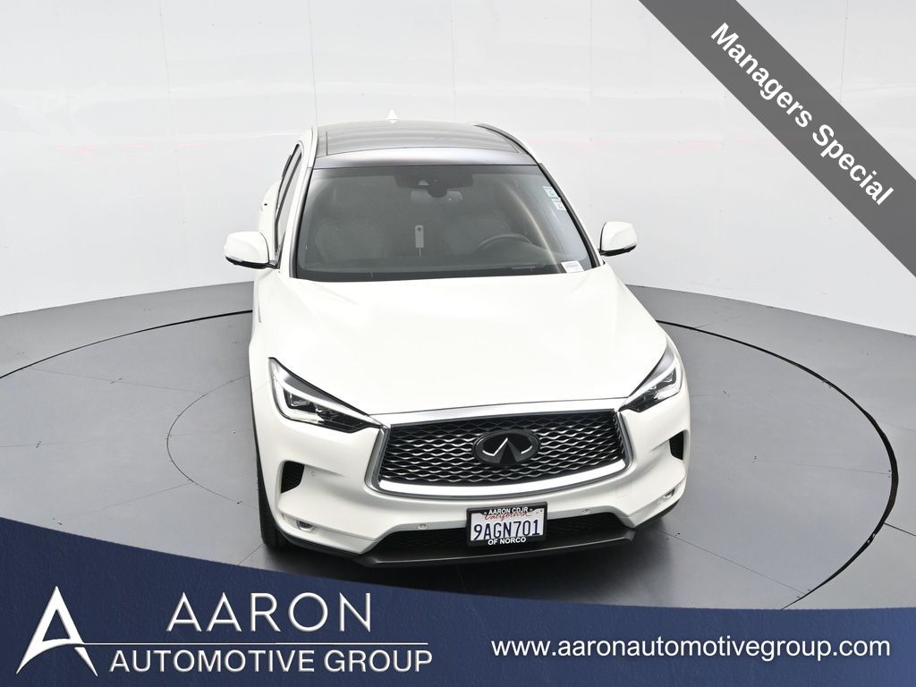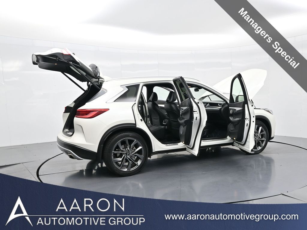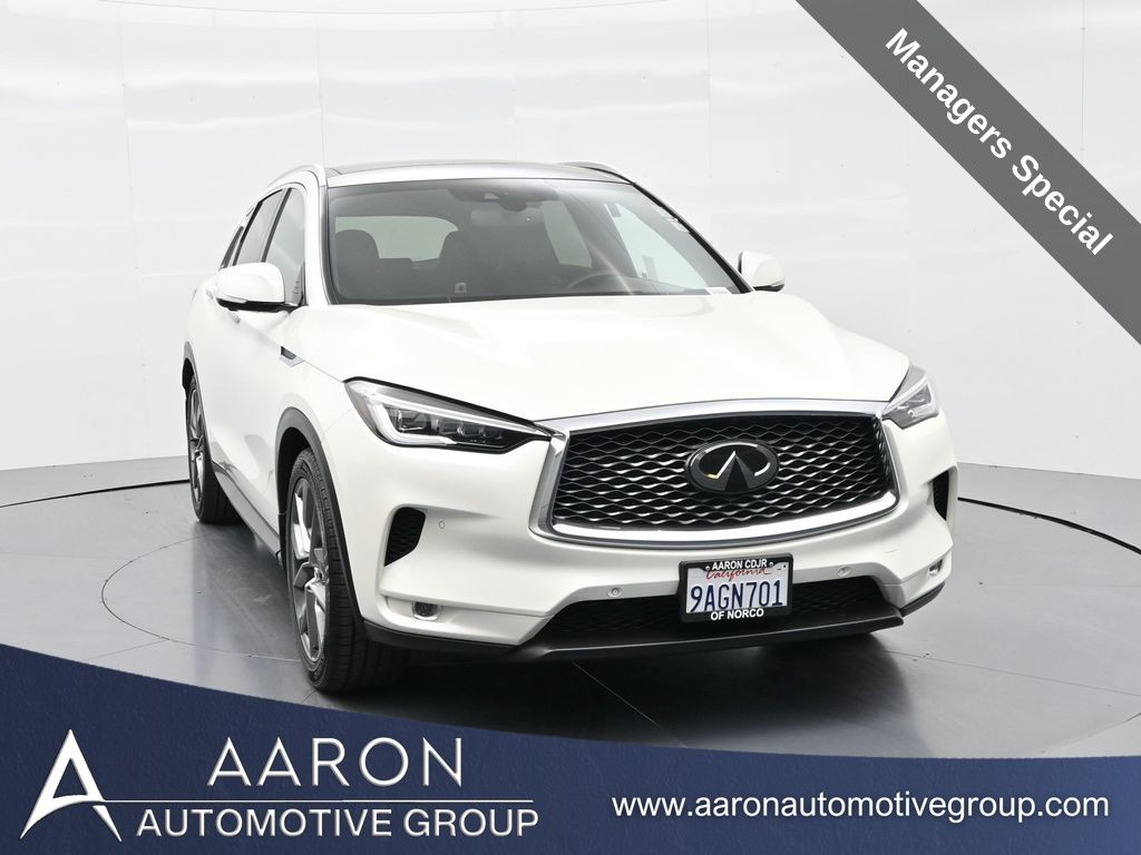 Elevate your everyday drive with this premium and tech-forward 2021 INFINITI QX50 AUTOGRAPH, the top-tier trim in INFINITIs luxury crossover lineupdesigned to deliver refined performance, premium materials, and advanced safety in a sleek and sporty package. With just 28,695 miles, this exceptionally maintained vehicle comes with a clean Carfax, no accidents, regular oil changes, and personal-use history, making it a smart and stylish choice for discerning drivers. Power comes from INFINITIs groundbreaking 2.0L VC-Turbo engine paired with a continuously variable transmission (CVT), offering smooth acceleration and an EPA-estimated 26 MPG combined (23 city / 29 highway). Finished in stunning Majestic White over a rich Graphite semi-aniline quilted leather interior, this AUTOGRAPH trim offers flagship-level luxury with premium features like black open-pore wood trim, tri-zone climate control, rear sunshades, and massaging climate-controlled front seats. A 16-speaker Bose Performance Series audio system, 9-inch upper and 8-inch lower dual HD displays, and Apple CarPlay/Android Auto integration keep you seamlessly connected, while ProPILOT Assist, adaptive cruise control, distance control assist, and head-up display enhance comfort and driver confidence. Safety features include Forward Emergency Braking with Pedestrian Detection, Predictive Forward Collision Warning, Blind Spot Warning and Intervention, Rear Cross Traffic Alert, Lane Departure Prevention, Around View Monitor, and Traffic Sign Recognitionensuring total peace of mind. This QX50 also features 20-inch dark-painted wheels, LED headlights with signature DRLs, power panoramic moonroof, motion-activated liftgate, and Welcome Lighting Package to round out its premium appeal. Backed by INFINITIs 4-year/60,000-mile basic warranty and 6-year/70,000-mile powertrain coverage, this AUTOGRAPH model delivers world-class luxury, intelligent engineering, and elegant style in one premium crossover. Don't miss the opportunity to drive one of the most fully loaded and low-mileage QX50s on the market. Schedule your test drive today before its gone.