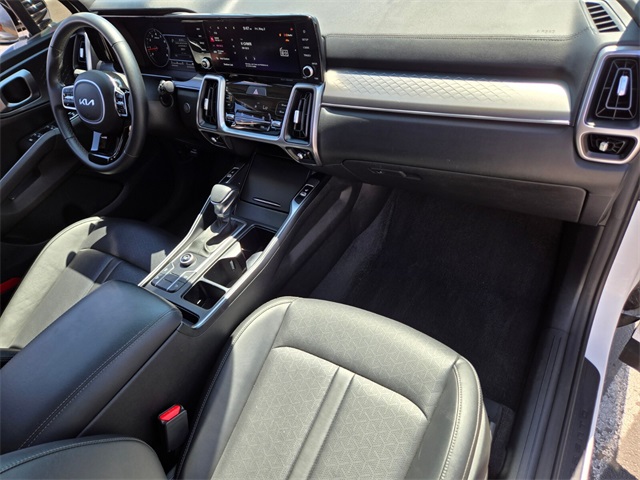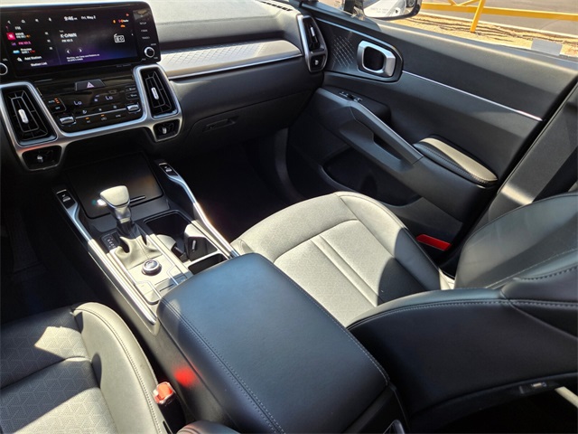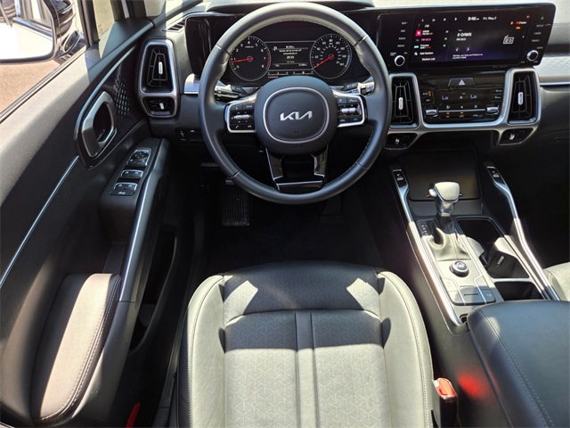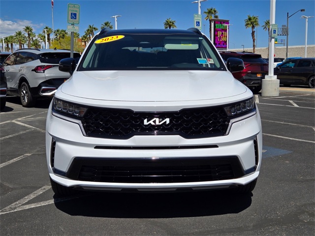 CARFAX One-Owner.Priced below KBB Fair Purchase Price!Odometer is 1402 miles below market average!24/29 City/Highway MPGGlacial White Pearl 2023 Kia Sorento S FWD 8-Speed Automatic 2.5L I4 DGI DOHC 16V LEV3-ULEV70 191hpIf you don't drive here, you can't save here!Price may not include recon fee. Panoramic Sunroof Package (LED Interior Lighting and Panoramic Power Sunroof w/Power Sunshade), 3.798 Axle Ratio, 3rd row seats: split-bench, 4-Wheel Disc Brakes, 6 Speakers, ABS brakes, Air Conditioning, Alloy wheels, AM/FM radio: SiriusXM, Apple CarPlay & Android Auto, Auto High-beam Headlights, Automatic temperature control, Brake assist, Bumpers: body-color, Carpet Floor Mats, Delay-off headlights, Driver door bin, Driver vanity mirror, Dual front impact airbags, Dual front side impact airbags, Electronic Stability Control, Emergency communication system, Exterior Parking Camera Rear, Four wheel independent suspension, Front anti-roll bar, Front Bucket Seats, Front Center Armrest, Front dual zone A/C, Front reading lights, Fully automatic headlights, Heated door mirrors, Heated Front Bucket Seats, Heated front seats, Illuminated entry, Knee airbag, Leather Shift Knob, Leather steering wheel, Low tire pressure warning, Navigation System, Occupant sensing airbag, Outside temperature display, Overhead airbag, Overhead console, Panic alarm, Passenger door bin, Passenger vanity mirror, Power door mirrors, Power driver seat, Power steering, Power windows, Radio data system, Radio: AM/FM Audio System, Rear air conditioning, Rear anti-roll bar, Rear reading lights, Rear seat center armrest, Rear window defroster, Rear window wiper, Remote keyless entry, Roof rack: rails only, Security system, Smart Key w/ Push Button and Remote Start, Speed control, Speed-sensing steering, Split folding rear seat, Spoiler, Steering wheel mounted audio controls, SynTex Artificial Leather Seat Trim, Tachometer, Telescoping steering wheel, Tilt steering wheel, Traction control, Trip computer, Turn signal indicator mirrors, Variably intermittent wipers, and Wheels: 7.5J x 18" Machine-Finished Alloy.