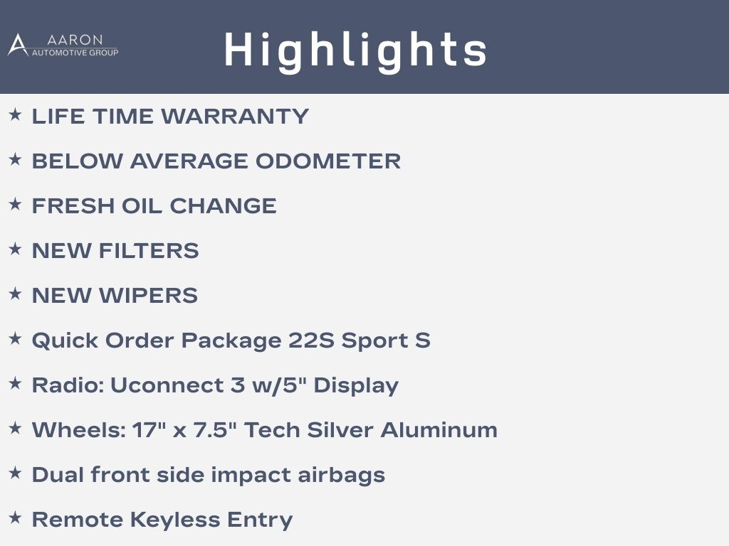 LIFE TIME WARRANTY, BELOW AVERAGE ODOMETER, FRESH OIL CHANGE, NEW FILTERS, NEW WIPERS, Wrangler Sport S, 2D Sport Utility, 2.0L I4 DOHC, 8-Speed Automatic, 4WD, 110 mph Vehicle Max Speed Calibration, Air Conditioning, Automatic Headlamps, Black 3-Piece Hard Top, Compass, Deep Tint Sunscreen Windows, Dual front side impact airbags, Freedom Panel Storage Bag, Front 1-Touch Down Power Windows, Leather Wrapped Steering Wheel, No Soft Top, ParkView Rear Back-Up Camera, Power Heated Mirrors, Quick Order Package 22S Sport S, R1234YF A/C Refrigerant, Radio: Uconnect 3 w/5" Display, Rear Window Defroster, Rear Window Wiper/Washer, Remote Keyless Entry, Security Alarm, Speed Sensitive Power Locks, Stop-Start Dual Battery System, Sun Visors w/Illuminated Vanity Mirrors, Wheels: 17" x 7.5" Tech Silver Aluminum.Clean CARFAX.
