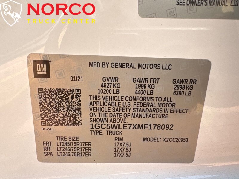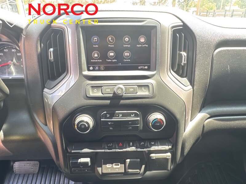 INSTALLED FEATURES: Air filtration, Front air conditioning, Front air conditioning zones: single, Rear vents: second row, Airbag deactivation: occupant sensing passenger, Front airbags: dual, Side airbags: front, Side curtain airbags: front / rear, Antenna type: mast, Auxiliary audio input: Bluetooth / iPod/iPhone / USB, Radio: AM/FM / touch screen display, Radio data system, Speed sensitive volume control, Total speakers: 6, ABS: 4-wheel, Braking assist, Electronic brakeforce distribution, Electronic parking brake: auto off, Front brake type: ventilated disc, Power brakes, Rear brake type: ventilated disc, Armrests: front center, Floor material: rubber/vinyl, Steering wheel trim: urethane, Assist handle: front / rear, Capless fuel filler system, Cupholders: front, One-touch windows: 4, Overhead console: front, Power outlet(s): 12V front / USB front, Power steering, Power windows: lockout button, Reading lights: front / rear, Rearview mirror: manual day/night, Steering wheel: tilt, Storage: door pockets, Sun visors, Bumper detail: rear step, Door handle color: black, Exhaust tip color: stainless steel, Fender lip moldings: black, Front bumper color: black, Grille color: black, Hood scoop, Mirror color: black, Pickup bed light, Rear bumper color: black, Tailgate: removable, Window trim: black, Infotainment: Chevrolet Infotainment System, Infotainment screen size: 7 in., Smartphone integration: Android Auto / Apple CarPlay, Clock, Digital odometer, External temperature display, Fuel economy display: MPG / range, Gauge: oil pressure / tachometer, Instrument cluster screen size: 3.5 in., Multi-function display, Powertrain hour meter, Trip odometer, Warnings and reminders: coolant temperature warning / lamp failure / low battery / low fuel level / low oil pressure / maintenance due, Daytime running lights, Headlights: auto delay off / auto on/off / halogen / wiper activated, Side mirror adjustments: manual / manual folding / manual telescoping, Towing mirrors, Alternator: 170 amps, Auxiliary oil cooler, Auxiliary transmission fluid cooler, Battery: heavy duty / maintenance-free, Battery rating: 720 CCA, Battery saver, Locking differential: rear, Camera system: rearview, Check rear seat reminder, Child safety door locks, Child seat anchors: LATCH system, Programmable safety key, Rearview monitor: in dash, Emergency locking retractors: front, Front seatbelts: 3-point, Rear seatbelts: 3-point, Seatbelt pretensioners: front, Seatbelt warning sensor: front, Driver seat manual adjustments: 4 / reclining, Front headrests: 2 / adjustable, Front seat type: 40-20-40 split bench, Passenger seat manual adjustments: 4 / reclining, Rear headrests: 3 / adjustable, Rear seat folding: folds up, Rear seat type: 60-40 split bench, Upholstery: vinyl, Anti-theft system: vehicle immobilizer, Power door locks: anti-lockout / auto-locking, Hill holder control, Roll stability control, Stability control, Traction control, Trailer stability control, Front shock type: twin-tube gas, Front spring type: torsion bars, Front stabilizer bar: diameter 35 mm, Front suspension classification: independent, Front suspension type: short and long arm, Rear shock type: twin-tube gas, Rear spring type: leaf, Rear suspension classification: solid live axle, Rear suspension type: multi-leaf, Electronic messaging assistance: voice operated / with read function, Hands-free phone call integration: voice operated, Wireless data link: Bluetooth, Pickup bed cargo management: tie-down anchors, Tow hooks: front, Tow/Haul mode, Trailer hitch, Trailer wiring: 4-pin / 7-pin, Spare tire mount location: underbody, Spare tire size: full-size, Spare wheel type: steel, Tire Pressure Monitoring System, Wheels: painted steel, Front wipers: variable intermittent, Power windows: safety reverse, Solar-tinted glass