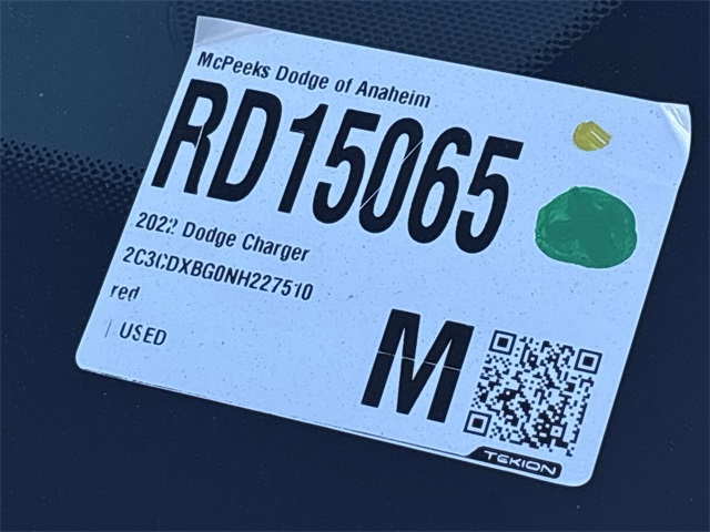 Certified. 19/30 City/Highway MPG Odometer is 6104 miles below market average! Clean CARFAX. CARFAX One-Owner. INTERIOR & EXTERIOR PROFESSIONALLY DETAILED FOR DELIVERY, MCPEEK CHRYSLER DODGE JEEP RAM FAMILY OWNED AND OPERATED SINCE 1961 !!!!!, Black Cloth, 4-Wheel Disc Brakes, 6 Speakers, ABS brakes, Air Conditioning, Alloy wheels, AM/FM radio: SiriusXM, Anti-whiplash front head restraints, Apple CarPlay, Apple CarPlay/Android Auto, Body Color Exterior Mirrors, Brake assist, Bumpers: body-color, Cloth Sport Seat, Compass, Delay-off headlights, Driver door bin, Driver vanity mirror, Dual front impact airbags, Dual front side impact airbags, Electronic Stability Control, Four wheel independent suspension, Front anti-roll bar, Front Bucket Seats, Front Center Armrest, Front dual zone A/C, Front reading lights, Fully automatic headlights, Google Android Auto, GPS Antenna Input, Illuminated entry, Integrated Center Stack Radio, Integrated Voice Command w/Bluetooth, Knee airbag, Leather Shift Knob, Low tire pressure warning, Media Hub (2 USB, AUX), Occupant sensing airbag, Outside temperature display, Overhead airbag, Overhead console, Panic alarm, ParkView Rear Back-Up Camera, Passenger door bin, Passenger vanity mirror, Power 2-Way Driver Lumbar Adjust, Power 8-Way Driver Seat, Power driver seat, Power steering, Power windows, Quick Order Package 2EG, Radio: Uconnect 4 w/7" Display, Rear anti-roll bar, Rear Armrest w/Cupholder Seat, Rear reading lights, Rear seat center armrest, Rear window defroster, Remote keyless entry, Speed control, Speed-Sensitive Wipers, Split folding rear seat, Steering wheel mounted audio controls, Tachometer, Telescoping steering wheel, Tilt steering wheel, Traction control, Trip computer, USB Host Flip, Variably intermittent wipers, Wheels: 17" x 7" Painted Cast Aluminum.Torred Clearcoat 2022 Dodge Charger SXT RWD 8-Speed AutomaticFCA US LLC Certified Pre-Owned Details: * 125 Point Inspection * Vehicles Up to 75,000 Miles and/or 5 Model Years. 24-Hour Towing & Roadside Assistance, Car Rental Allowance, CARFAX® Vehicle History ReportTM and an Introductory 3-month Subscription to SiriusXM® Satellite Radio & Certified Warranty Upgrades * Warranty Deductible: $100 * Powertrain Limited Warranty: 84 Month/100,000 Mile (whichever comes first) from original in-service date * Transferable Warranty * Limited Warranty: 3 Month/3,000 Mile (whichever comes first) after new car warranty expires or from certified purchase date * Vehicle History * Roadside AssistanceReceive Free lube and oil filter changes for up to 45,000 miles for 3 years!!! McPeek's Dodge of Anahiem 1221 S. Auto Center Drive Anahiem, CA 92806 714-262-4902.
