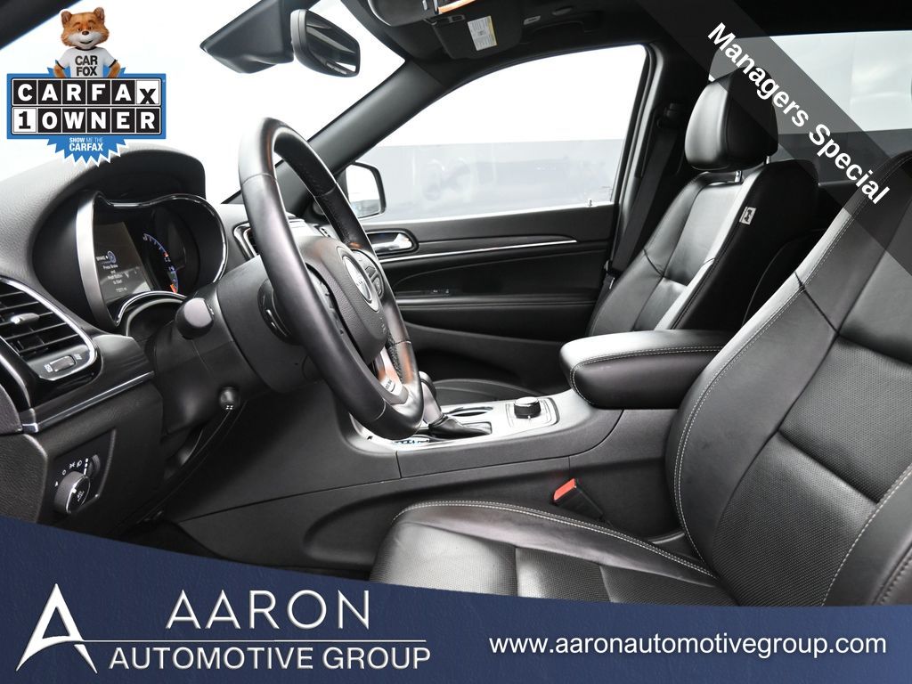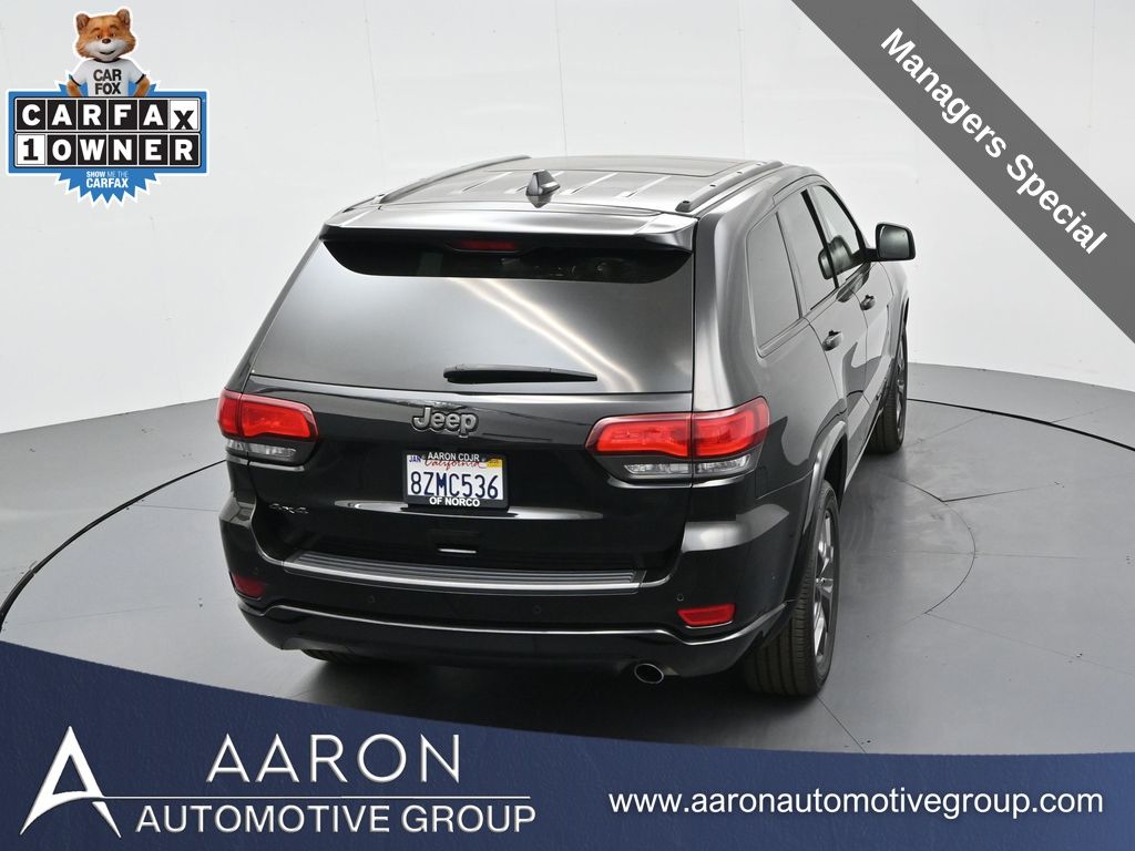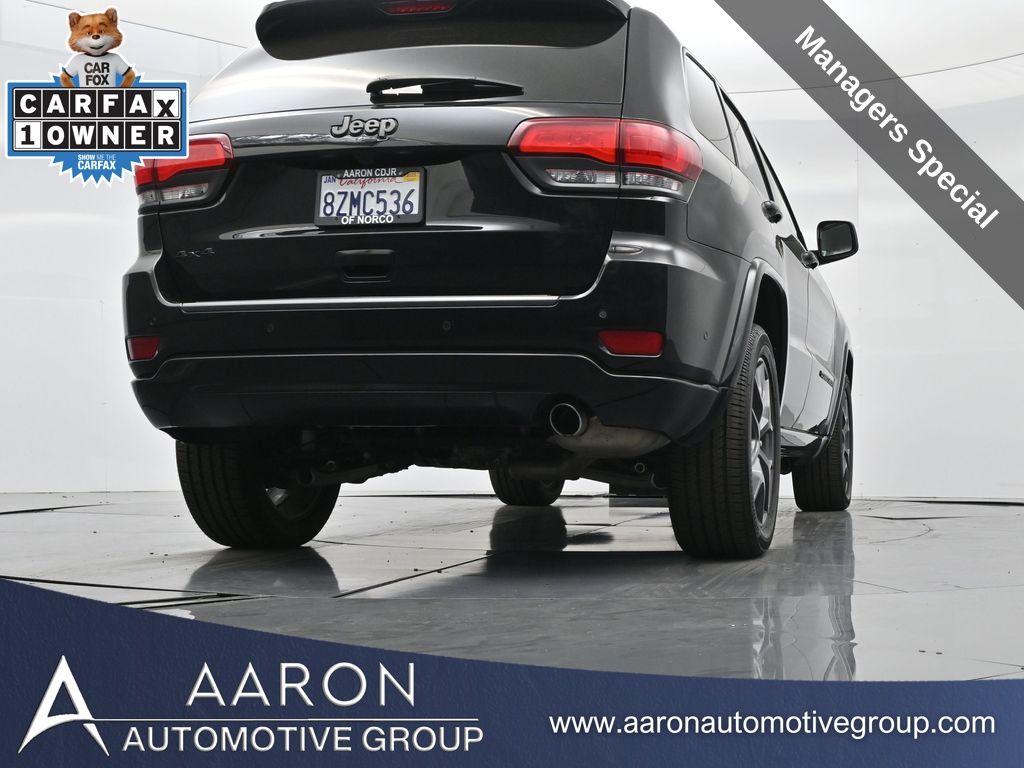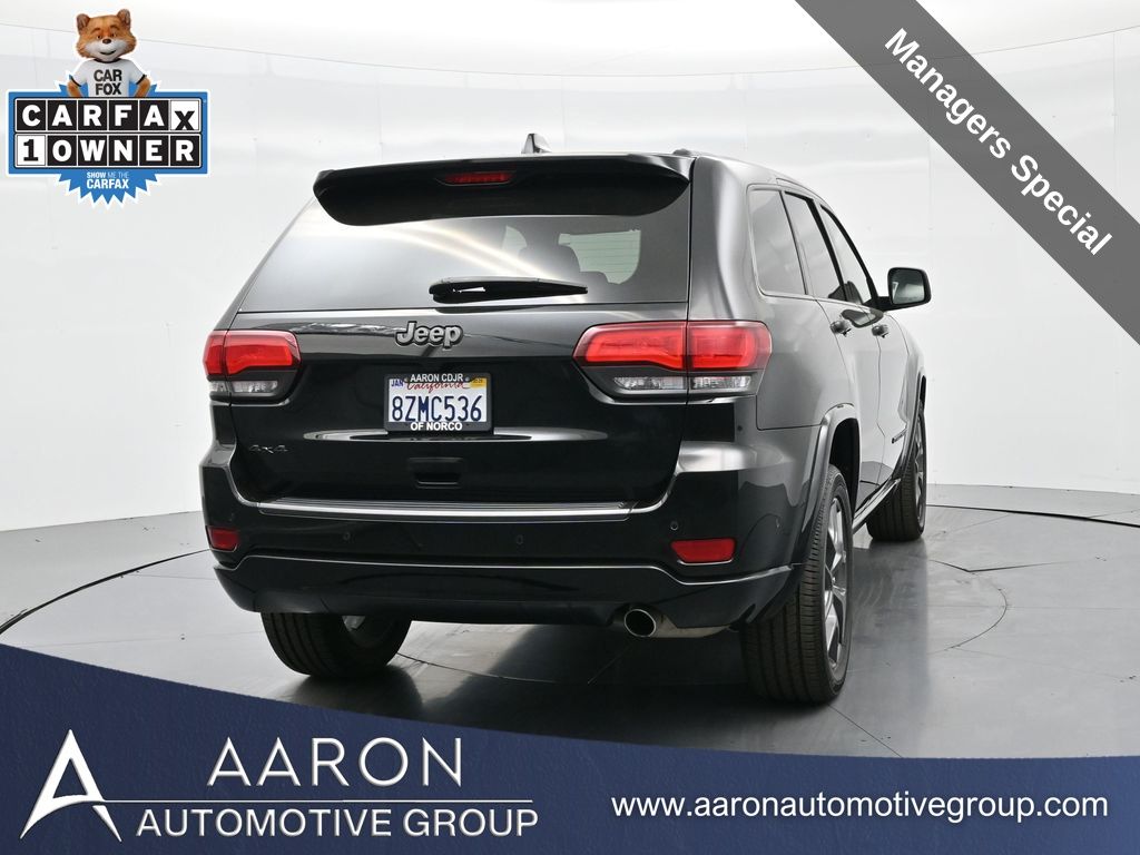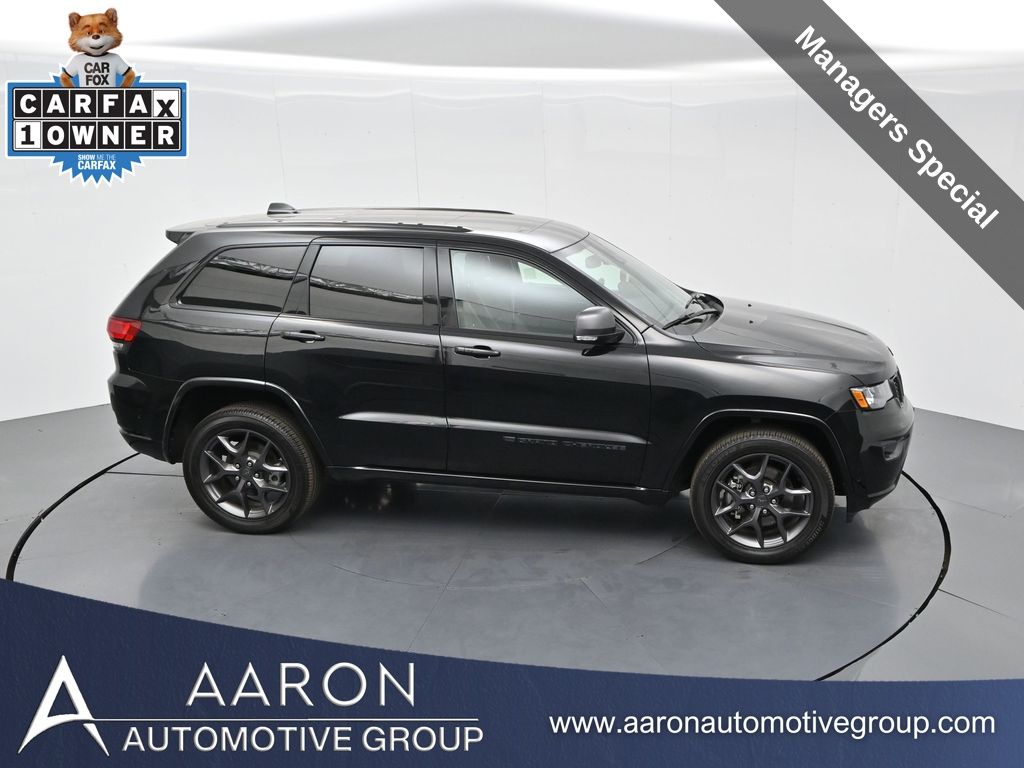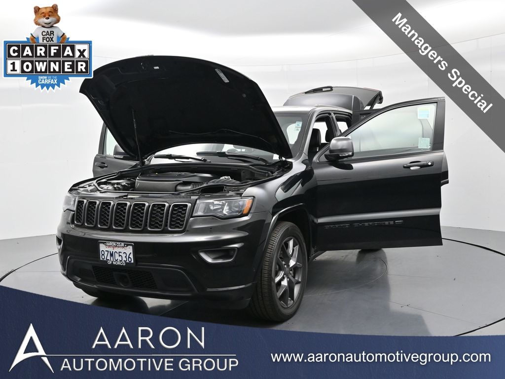 Celebrate iconic Jeep heritage in premium style with this 2021 Jeep Grand Cherokee 80th Anniversary Edition 4x4, a special edition SUV built to honor 80 years of off-road capability and luxury refinement. With 70,337 miles, a 1-owner Carfax history, no accidents reported, and consistent service records, this well-maintained vehicle blends comfort, safety, and rugged Jeep DNA into one standout package. Powered by the trusted 3.6L Pentastar V6 engine paired with an efficient 8-speed automatic transmission, this Grand Cherokee delivers strong performance and confident capability while achieving an EPA-estimated 21 MPG combined (18 city / 25 highway). Finished in premium Diamond Black Crystal Pearl-Coat Paint, this 4WD model features signature 80th Anniversary badging, granite crystal metallic accents, 20-inch granite painted aluminum wheels, dark lens taillamps, and body-color mirrors, bumpers, and grille for a sleek, upscale look. Inside, youll find an elegant black leather-trimmed interior with light tungsten accent stitching, power-adjustable heated front seats, heated steering wheel, dual-zone climate control, memory settings, power lift-gate, and a full suite of comfort and convenience features. Technology is abundant with Uconnect 8.4-inch touchscreen display, GPS navigation, Apple CarPlay and Android Auto, SiriusXM, and premium Alpine 9-speaker sound system with subwoofer. Safety is prioritized with Blind Spot Monitoring, Rear Cross Path Detection, ParkSense front and rear park assist, Full-Speed Forward Collision Warning Plus, Adaptive Cruise Control with Stop, Lane Departure Warning Plus, Advanced Brake Assist, and a rear backup camera. This 80th Anniversary Edition also includes a dual-pane panoramic sunroof, remote start, universal garage door opener, Selec-Terrain traction management system, and power-folding heated side mirrors with memory. Backed by Jeeps 5-year/60,000-mile powertrain warranty, this Grand Cherokee delivers capability, class, and confidence for all of life's journeys. Whether you're looking for refined everyday comfort or a rugged trail-capable SUV with tech-savvy sophistication, this rare 80th Anniversary Edition is the perfect fit. Contact us today to schedule your test drive and secure a piece of Jeep history before its gone.