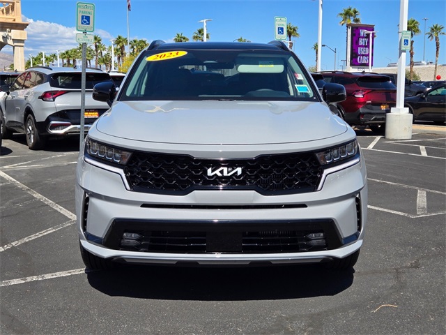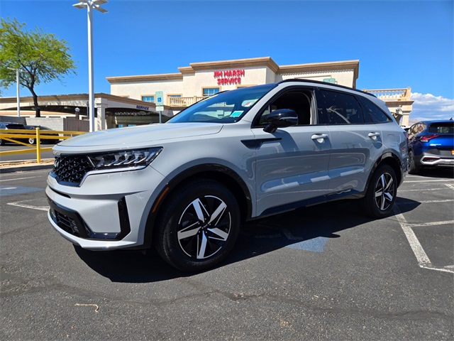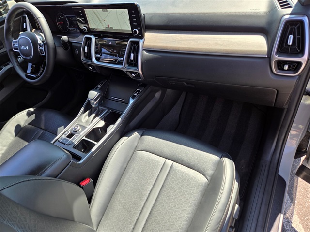 Priced below KBB Fair Purchase Price!Odometer is 19202 miles below market average!22/29 City/Highway MPGWolf Gray 2023 Kia Sorento EX FWD 8-Speed DCT 2.5L I4 DGI Turbocharged DOHC 16V LEV3-ULEV70 281hpIf you don't drive here, you can't save here!Price may not include recon fee. Panoramic Sunroof Package (LED Interior Lighting and Panoramic Power Sunroof w/Power Sunshade), 3.316 Axle Ratio, 3rd row seats: split-bench, 4-Wheel Disc Brakes, 6 Speakers, ABS brakes, Air Conditioning, Alloy wheels, AM/FM radio: SiriusXM, Apple CarPlay & Android Auto, Auto High-beam Headlights, Auto-dimming Rear-View mirror, Automatic temperature control, Brake assist, Bumpers: body-color, Carpet Floor Mats, Delay-off headlights, Driver door bin, Driver vanity mirror, Dual front impact airbags, Dual front side impact airbags, Electronic Stability Control, Emergency communication system, Exterior Parking Camera Rear, Four wheel independent suspension, Front anti-roll bar, Front Bucket Seats, Front Center Armrest, Front dual zone A/C, Front fog lights, Front reading lights, Fully automatic headlights, Heated door mirrors, Heated Front Bucket Seats, Heated front seats, Illuminated entry, Knee airbag, Leather Shift Knob, Leather steering wheel, Low tire pressure warning, Navigation System, Occupant sensing airbag, Outside temperature display, Overhead airbag, Overhead console, Panic alarm, Passenger door bin, Passenger vanity mirror, Power door mirrors, Power driver seat, Power Liftgate, Power passenger seat, Power steering, Power windows, Radio data system, Radio: AM/FM Audio System, Rear air conditioning, Rear anti-roll bar, Rear reading lights, Rear window defroster, Rear window wiper, Remote keyless entry, Roof rack: rails only, Security system, Smart Key w/ Push Button and Remote Start, Speed control, Speed-sensing steering, Split folding rear seat, Spoiler, Steering wheel mounted audio controls, SynTex Artificial Leather Seat Trim, Tachometer, Telescoping steering wheel, Tilt steering wheel, Traction control, Trip computer, Turn signal indicator mirrors, Variably intermittent wipers, and Wheels: 7.5J x 18" Machine-Finished Alloy.