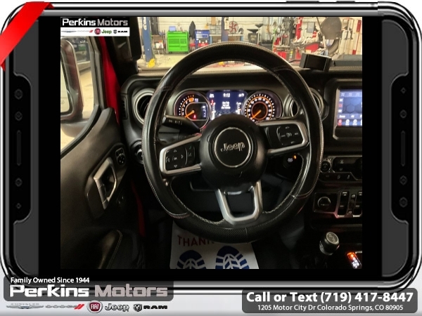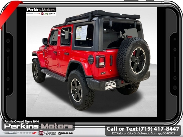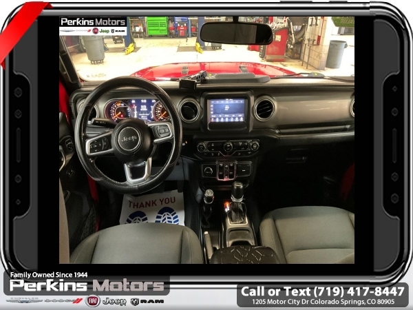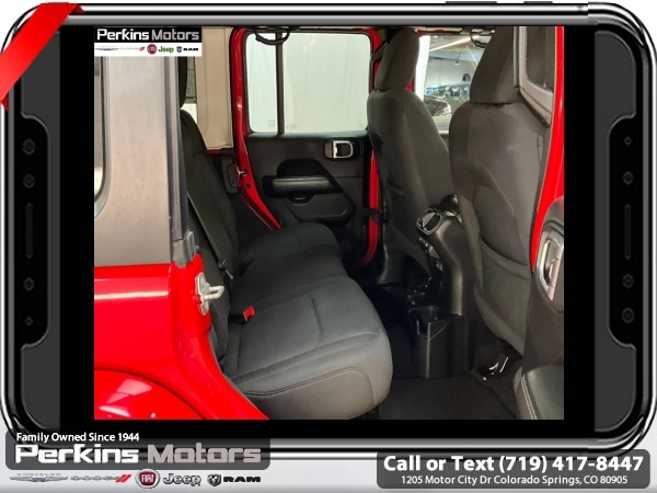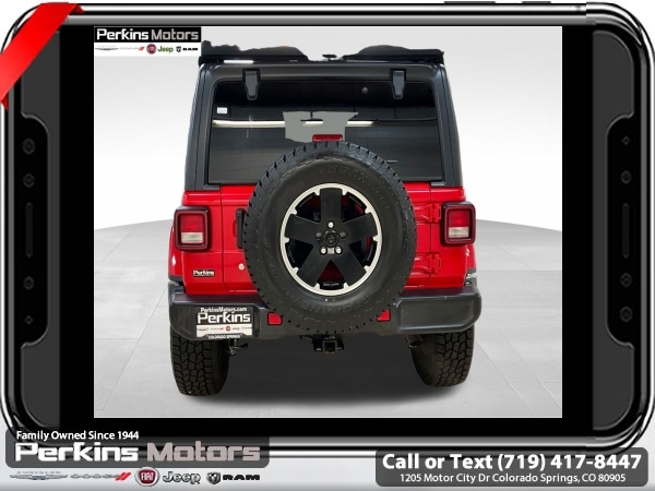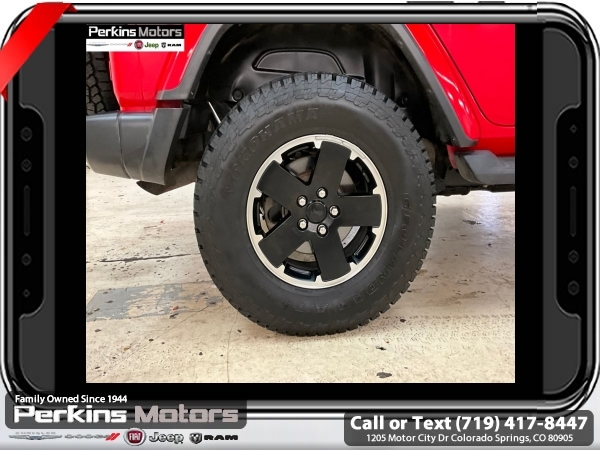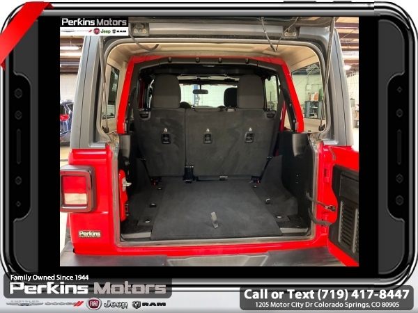 Firecracker Red Clearcoat 4WD 2.0L I4 DOHC 8-Speed Automatic<br><br><br>Clean CARFAX.<br><br>Check us out at www.perkinsmotors.com to see our specials! Since opening our doors in 1944, we’ve been proud to serve Colorado Springs, CO, and the surrounding areas of Pueblo, Castle Rock and Denver, CO. Throughout this time of being family owned for 80 years, we’ve maintained a firm commitment to our customers: to offer a wide selection of New Chrysler, Dodge, Fiat, Jeep, and Ram vehicles and quality pre-owned vehicles, and provide a quick, no-hassle car-buying process that ensures everyone drives off the lot satisfied with their purchase.<br><br><br>Quick Order Package 28G, 1-Year SiriusXM Radio Service, 3.45 Rear Axle Ratio, 4-Wheel Disc Brakes, 8 Speakers, ABS brakes, Air Conditioning, Alloy wheels, AM/FM radio: SiriusXM, Apple CarPlay, Apple CarPlay/Android Auto, Automatic temperature control, Aux Battery, Black 3-Piece Hard Top, Brake assist, Cloth Low-Back Bucket Seats, Compass, Cruise Control, Delay-off headlights, Driver door bin, Driver vanity mirror, Dual front impact airbags, Dual front side impact airbags, Electronic Stability Control, Freedom Panel Storage Bag, Front anti-roll bar, Front Bucket Seats, Front Center Armrest w/Storage, Front dual zone A/C, Front fog lights, Front License Plate Bracket, Front reading lights, Fully automatic headlights, Garage door transmitter, Google Android Auto, GPS Antenna Input, Heated door mirrors, Heavy Duty Suspension w/Gas Shocks, Illuminated entry, Integrated roll-over protection, Integrated Voice Command w/Bluetooth, Leather steering wheel, Low tire pressure warning, Manufacturer's Statement of Origin, No Soft Top, Non-Lock Fuel Cap w/o Discriminator, Occupant sensing airbag, Outside temperature display, Panic alarm, ParkView Rear Back-Up Camera, Passenger door bin, Passenger vanity mirror, Power door mirrors, Power steering, Power windows, Radio data system, Radio: Uconnect 4 w/7 Display, Rear anti-roll bar, Rear reading lights, Rear Window Defroster, Rear Window Wiper/Washer, Remote keyless entry, Security system, Split folding rear seat, Steering wheel mounted audio controls, Stop-Start Dual Battery System, Tachometer, Telescoping steering wheel, Tilt steering wheel, Traction control, Trip computer, Variably intermittent wipers, Voltmeter, and Wheels: 18 x 7.5 Polished w/Gray Spokes.