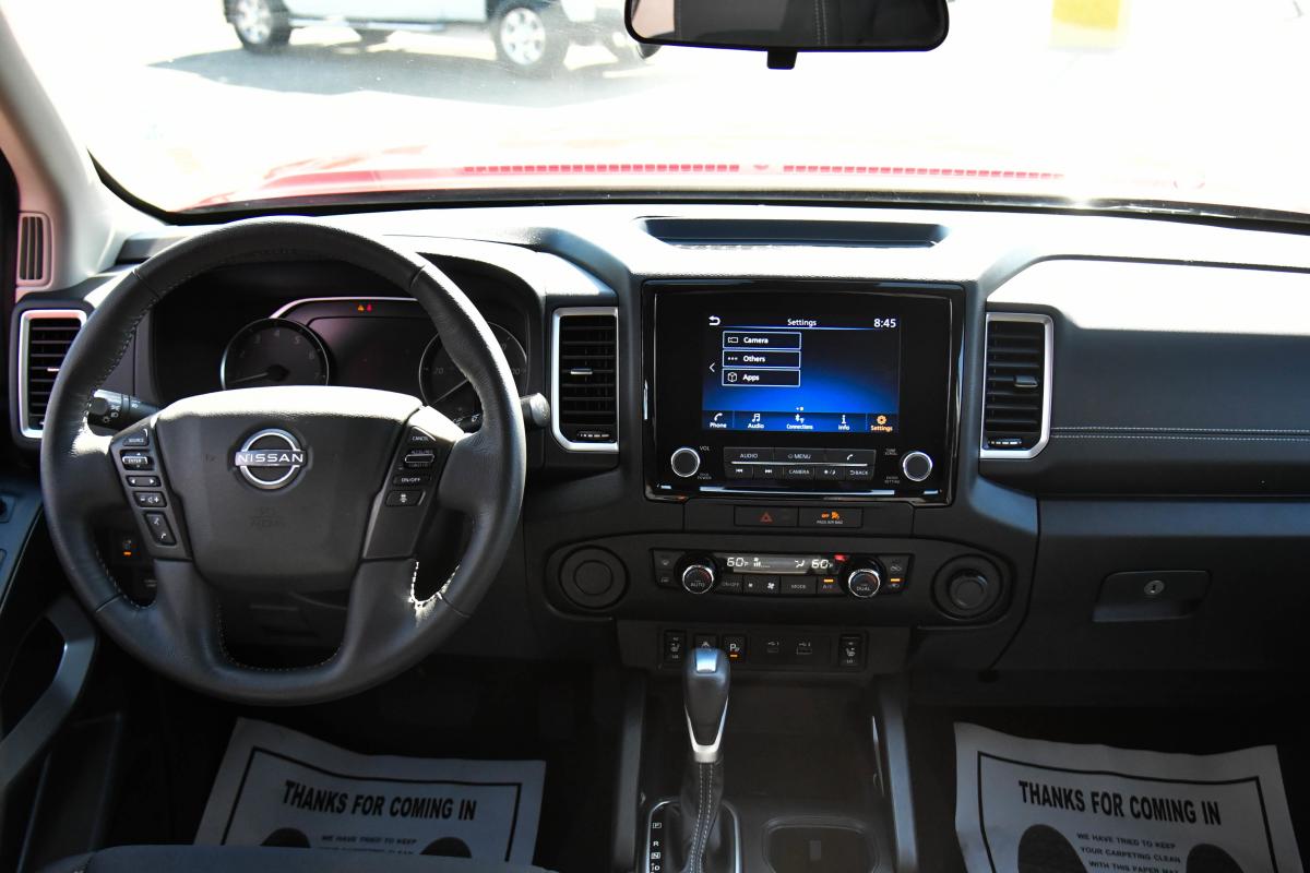 This Nissan Frontier has a strong Regular Unleaded V-6 3.8 L/231 engine powering this Automatic transmission. RED ALERT, CHARCOAL, PREMIUM CLOTH SEAT TRIM, CHARCOAL, FRONT & REAR LEATHER SEAT TRIM (1ST/2ND).*This Nissan Frontier Comes Equipped with These Options *[V01] TECHNOLOGY PACKAGE -inc: Rear Sonar System, Rear Automatic Braking (RAB), High Beam Assist (HBA), Blind Spot Warning (BSW), Rear Cross Traffic Alert (RCTA), Intelligent Cruise Control (ICC), Lane Departure Warning (LDW), [K01] SV COMFORT & CONVENIENCE PACKAGE -inc: Bed Under-Rail Lighting, Remote Engine Starter, 120V Power Outlet in Bed, Heated Front Seats, Utili-Track System, 4 adjustable tie-down cleats, Spray-In Bedliner, Trailer Hitch w/Wiring Harness, VPC installed accessory, Overhead Console Storage (Sunglass Holder), HVAC - Dual-Zone Front Auto A/C, I-Key w/Request Switches on O/S Handles, Full function, Halogen Daytime Running Lights, Leather Shift Lever, Front Halogen Fog Lights, Sliding Rear Window, Heated Leather Steering Wheel, Heated Outside Mirrors, 120V Power Outlet in Rear Center Console , [L93] FLOOR MATS, [F96] ELECTRONIC TAILGATE LOCK, [B92] SPLASH GUARDS, Wheels: 17 Alloy -inc: Type A, Variable Intermittent Wipers, Urethane Gear Shifter Material, Trip Computer, Transmission: 9-Speed Automatic.