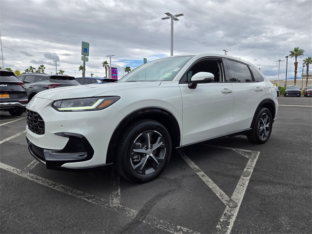 Priced below KBB Fair Purchase Price!26/32 City/Highway MPGWhite 2023 Honda HR-V EX-L FWD CVT 2.0L I4 DOHC 16V i-VTECIf you don't drive here, you can't save here!Price may not include recon fee. 17" Machine-Finished Alloy Wheels, 4-Wheel Disc Brakes, 5.436 Axle Ratio, 8 Speakers, ABS brakes, Adaptive Cruise Control: Adaptive Cruise Control (ACC) with Low-Speed Follow, Air Conditioning, Alloy wheels, AM/FM radio: SiriusXM, Apple CarPlay/Android Auto, Auto High-beam Headlights, Auto-dimming Rear-View mirror, Automatic temperature control, Blind Spot Information (BSI) System warning, Brake assist, Bumpers: body-color, Compass, Delay-off headlights, Driver door bin, Driver vanity mirror, Dual front impact airbags, Dual front side impact airbags, Electronic Stability Control, Emergency communication system: HondaLink, Exterior Parking Camera Rear, Four wheel independent suspension, Front anti-roll bar, Front Bucket Seats, Front Center Armrest, Front dual zone A/C, Front reading lights, Fully automatic headlights, Heated door mirrors, Heated Front Bucket Seats, Heated front seats, Illuminated entry, Knee airbag, Leather Shift Knob, Leather-Trimmed Seats, Low tire pressure warning, Occupant sensing airbag, Outside temperature display, Overhead airbag, Panic alarm, Passenger door bin, Passenger vanity mirror, Power door mirrors, Power driver seat, Power moonroof, Power steering, Power windows, Radio data system, Radio: 180-Watt Audio System w/8 Speakers, Rear anti-roll bar, Rear reading lights, Rear side impact airbag, Rear window defroster, Rear window wiper, Remote keyless entry, Security system, Speed control, Speed-sensing steering, Split folding rear seat, Spoiler, Steering wheel mounted audio controls, Tachometer, Telescoping steering wheel, Tilt steering wheel, Traction control, Trip computer, Turn signal indicator mirrors, and Variably intermittent wipers.
