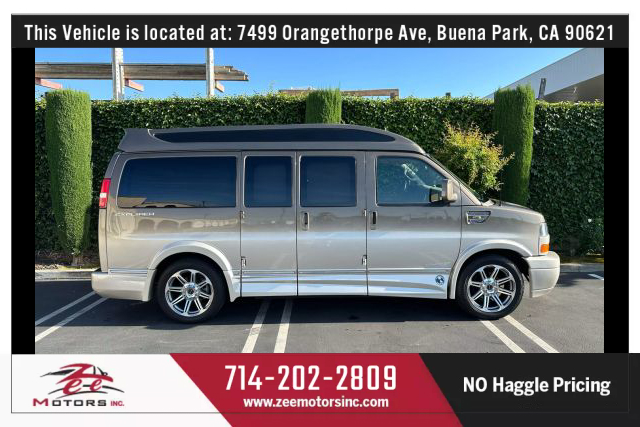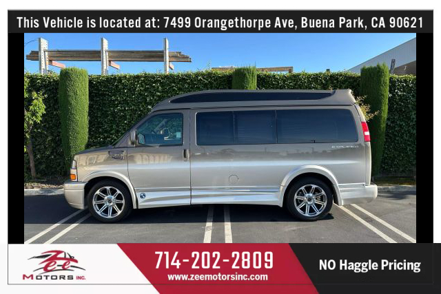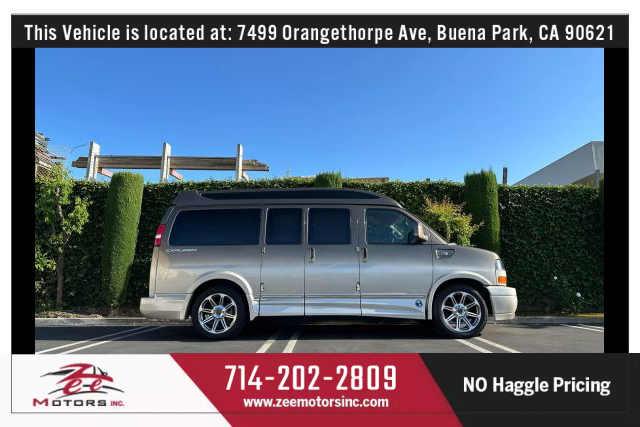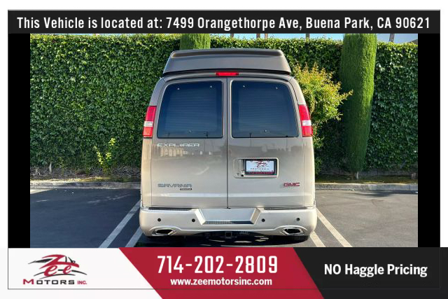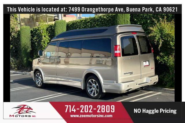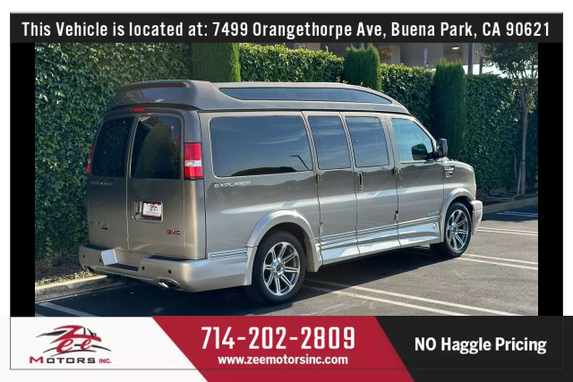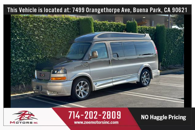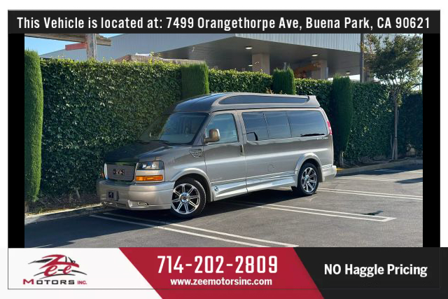 THIS VEHICLE IS LOCATED AT OUR BUENA PARK LOCATION: 7479 ORANGETHORPE AVE, BUENA PARK CA 90621. Please Call us at 657-255-4555 or 714-202-2809 or email us at BUENAPARK@ZEEMOTORSINC.COM To Check Availability. This 2016 GMC Savana 2500 7-passenger van was modified by the Explorer Van Company with their extended-roof Limited SE conversion package. the van is powered by a 6.0-liter V8 paired with a six-speed automatic transmission. Features include revised lower bodywork, 20? eight-spoke alloy wheels, heated power-adjustable front captain's chairs, air conditioning, cruise control, Rockford Fosgate speakers, and a CD stereo with navigation and a backup camera in addition to a power-folding rear bench, a rear sunroof, a Samsung television, and a rear surround sound system. This Savana is offered by the selling dealer with two sets of keys* 2 OWNER* No Accidents.* Very Well Maintained Vehicle, Service records available on CARFAX. * Very Clean Inside and Outside.* Passed Safety inspection and Smog Check.Attention to all buyers: All special prices are cash price and it does not include sales tax, license and registration fee, documentation fee, smog fee or any dealer add-ons / accessories. Additional financing charges may apply on approved credit. While great effort is made to ensure the accuracy of the information provided on this site, errors do occur so please verify information with a team member. This is easily done by contacting us via phone or email (Call or Text 657-346-8544)