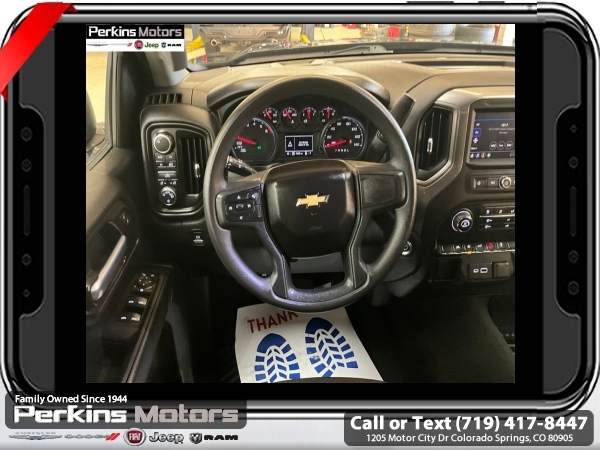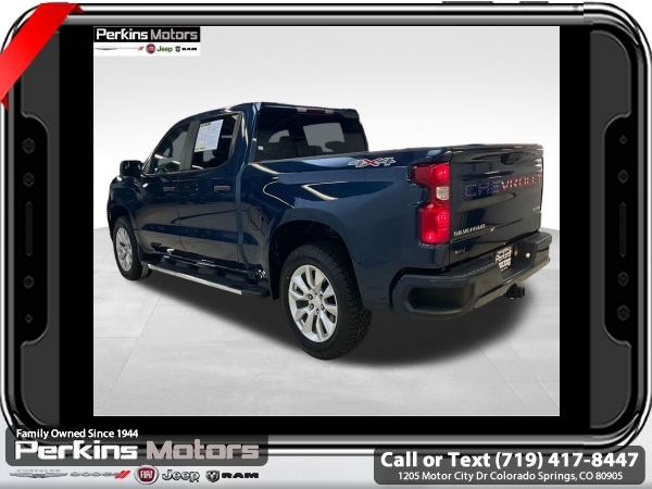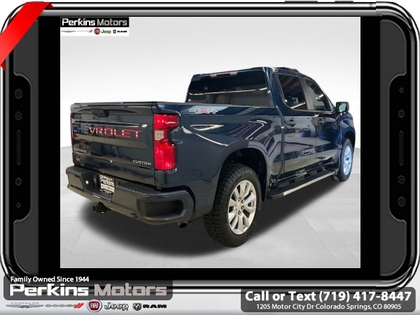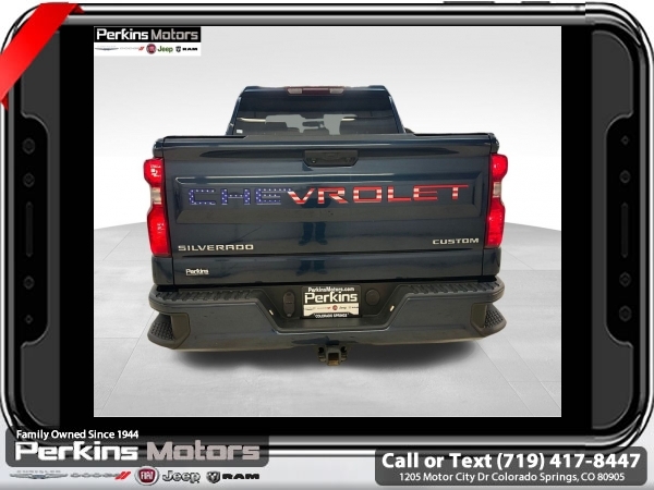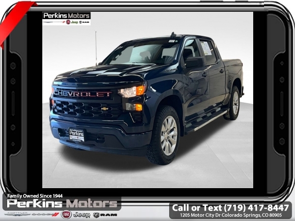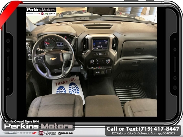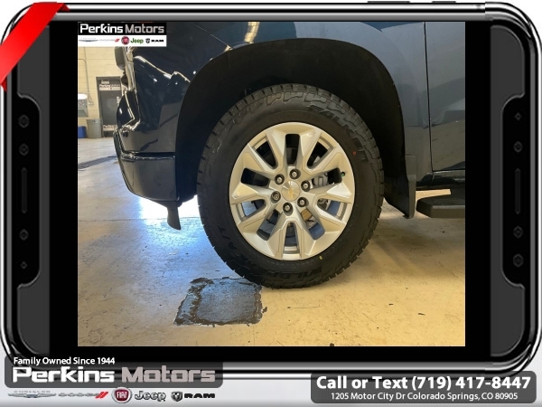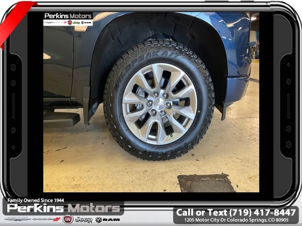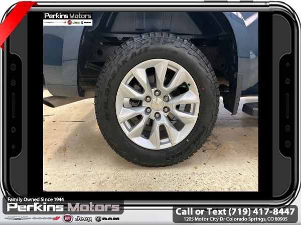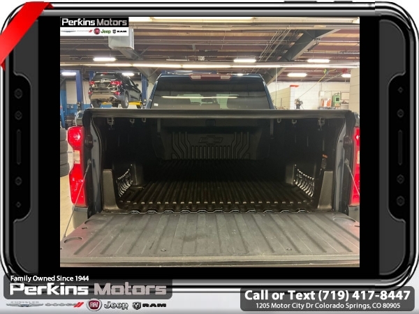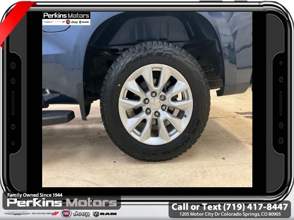 Northsky Blue Metallic 4WD 2.7L Turbo 8-Speed Automatic<br><br>8-Speed Automatic, 4WD, Black Cloth.<br><br><br>Clean CARFAX.<br><br>Check us out at www.perkinsmotors.com to see our specials! Since opening our doors in 1944, we’ve been proud to serve Colorado Springs, CO, and the surrounding areas of Pueblo, Castle Rock and Denver, CO. Throughout this time of being family owned for 80 years, we’ve maintained a firm commitment to our customers: to offer a wide selection of New Chrysler, Dodge, Fiat, Jeep, and Ram vehicles and quality pre-owned vehicles, and provide a quick, no-hassle car-buying process that ensures everyone drives off the lot satisfied with their purchase.<br><br><br>Custom Convenience Package (Electric Rear-Window Defogger, EZ Lift Power Lock & Release Tailgate, LED Cargo Area Lighting, and Remote Vehicle Starter System), Custom Value Package, High Capacity Suspension Package, Preferred Equipment Group 1CX (10-Way Power Driver Seat w/Lumbar, 120-Volt Bed Mounted Power Outlet, 120-Volt Instrument Panel Power Outlet, 3.5 Monochromatic Display Driver Info Center, Bluetooth® For Phone, Chevrolet Connected Access Capable, Color-Keyed Carpeting Floor Covering, Compass, Deep-Tinted Glass, Dual Rear USB Ports (Charge Only), Electrical Steering Column Lock, Electronic Cruise Control, Front Frame-Mounted Black Recovery Hooks, Front Rubberized Vinyl Floor Mats, HD Rear Vision Camera, Manual Tilt Wheel Steering Column, OnStar & Chevrolet Connected Services Capable, Power Front Windows w/Driver Express Up/Down, Power Front Windows w/Passenger Express Down, Power Rear Windows w/Express Down, Rear 60/40 Folding Bench Seat (Folds Up), Rear Rubberized-Vinyl Floor Mats, Remote Keyless Entry, SiriusXM Radio, Standard Tailgate, Theft Deterrent System (Unauthorized Entry), Wi-Fi Hot Spot Capable, and Wireless Phone Projection), Trailering Package (Hitch Guidance), 8-Speed Automatic, 4WD, Black Cloth, 3.42 Rear Axle Ratio, 4-Wheel Disc Brakes, 40/20/40 Front Split-Bench Seat, 6 Speakers, 6-Speaker Audio System, ABS brakes, Air Conditioning, Alloy wheels, AM/FM radio: SiriusXM, Apple CarPlay/Android Auto, Auto High-beam Headlights, Auto-Locking Rear Differential, Automatic Emergency Braking, Brake assist, Bumpers: body-color, Cloth Seat Trim, Cruise Control, Delay-off headlights, Driver door bin, Driver vanity mirror, Dual front impact airbags, Dual front side impact airbags, Electronic Stability Control, Following Distance Indicator, Forward Collision Alert, Front anti-roll bar, Front Center Armrest w/Storage, Front License Plate Kit, Front Pedestrian Braking, Front reading lights, Front wheel independent suspension, Fully automatic headlights, Heated door mirrors, Illuminated entry, IntelliBeam Automatic High Beam On/Off, Lane Keep Assist w/Lane Departure Warning, Low tire pressure warning, Not Equipped w/Rear USB Ports, Not Equipped w/Steering Column Lock, Occupant sensing airbag, Outside temperature display, Overhead airbag, Overhead console, Panic alarm, Passenger door bin, Passenger vanity mirror, Power door mirrors, Power driver seat, Power steering, Power windows, Premium audio system: Chevrolet Infotainment 3, Radio data system, Radio: Chevrolet Infotainment 3 System, Rear reading lights, Rear step bumper, Rear window defroster, Remote keyless entry, Security system, Speed-sensing steering, Split folding rear seat, Tachometer, Tilt steering wheel, Traction control, Trip computer, Variably intermittent wipers, Voltmeter, and Wheels: 20 x 9 Bright Silver Painted Aluminum.
