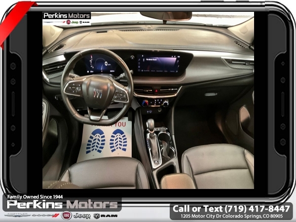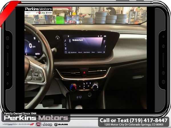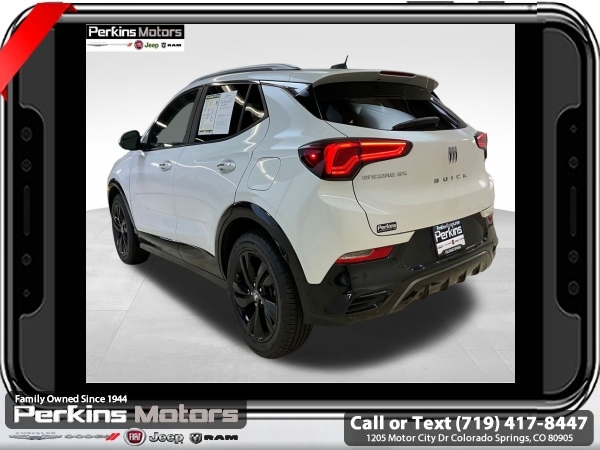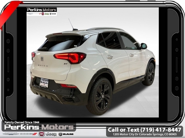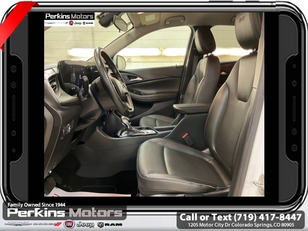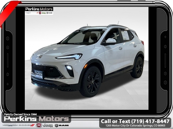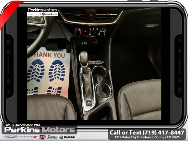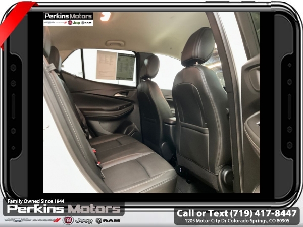 Summit White FWD ECOTEC 1.3L Turbo CVT<br><br><br>CARFAX One-Owner. Clean CARFAX.<br><br>Check us out at www.perkinsmotors.com to see our specials! Since opening our doors in 1944, we’ve been proud to serve Colorado Springs, CO, and the surrounding areas of Pueblo, Castle Rock and Denver, CO. Throughout this time of being family owned for 80 years, we’ve maintained a firm commitment to our customers: to offer a wide selection of New Chrysler, Dodge, Fiat, Jeep, and Ram vehicles and quality pre-owned vehicles, and provide a quick, no-hassle car-buying process that ensures everyone drives off the lot satisfied with their purchase.<br><br><br>Preferred Equipment Group 1SD, 2 USB Ports (1 Type-A, 1 Type-C), 4-Way Manual Passenger Seat Adjuster, 4-Wheel Disc Brakes, 5.45 Final Drive Axle Ratio, 6 Speakers, 6-Way Manual Driver Seat Adjuster, ABS brakes, Air Conditioning, Alloy wheels, AM/FM radio: SiriusXM, Auto High-beam Headlights, Automatic temperature control, Brake assist, Bumpers: body-color, Compass, Cruise Control, Delay-off headlights, Deleted 3 Years of OnStar Remote Access, Driver door bin, Driver vanity mirror, Dual front impact airbags, Dual front side impact airbags, Electronic Stability Control, Emergency communication system: OnStar and Buick connected services capable, Enhanced Performance 6-Speaker System, Front anti-roll bar, Front Bucket Seats, Front Center Armrest, Front License Plate Bracket, Front reading lights, Front wheel independent suspension, Fully automatic headlights, Heated door mirrors, Illuminated entry, Knee airbag, Leatherette Seat Trim, Low tire pressure warning, Occupant sensing airbag, Outside temperature display, Overhead airbag, Overhead console, Panic alarm, Passenger door bin, Passenger vanity mirror, Power door mirrors, Power steering, Power windows, Radio data system, Radio: Audio System w/AM/FM, Rear reading lights, Rear side impact airbag, Rear window defroster, Rear window wiper, Remote keyless entry, Ride & Handling Suspension, Security system, SiriusXM, Speed-sensing steering, Split folding rear seat, Spoiler, Sport steering wheel, Steering wheel mounted audio controls, Tachometer, Telescoping steering wheel, Tilt steering wheel, Traction control, Trip computer, Variably intermittent wipers, Wheels: 18 Gloss Black Aluminum, and Wireless Apple CarPlay/Wireless Android Auto.