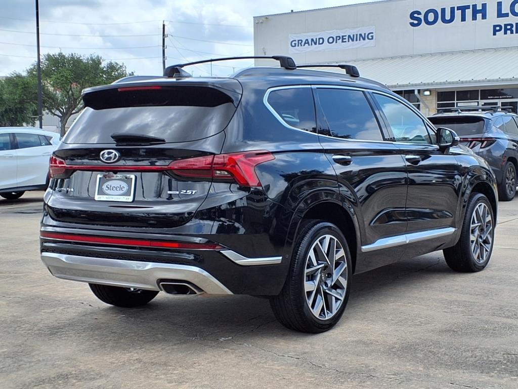 This Twilight Black 2021 Hyundai Santa Fe Calligraphy would be a welcomed addition to your family or business. \n\n \n\nThis Santa Fe has the following features:\n\n\n\n<h4 class=vc_build_package_name>Option Group 01</h4><ul class=vc_build_package_item_list></ul><h4 class=vc_build_package_name>Cargo Package ($200 value)</h4><ul class=vc_build_package_item_list><li>Cargo Net</li><li>Cargo Tray</li><li>First Aid Kit</li></ul>\n\n\n<h4 class=vc_build_feature_name>Convenience</h4><ul class=vc_build_feature_item_list><li> Distance pacing cruise control with traffic stop-go. Set it and forget it. Road trips used to be stressful. Cruise control only managed speed, but not distance or safety. Now, with Distance pacing cruise control with traffic stop-go, simply set your desired speed and let sensor technology maintain a safe distance between you and the vehicle ahead. It's stop/go feature automatically brings the vehicle to a stop if traffic stops and resumes distance pacing cruise when traffic starts to move again. Distance pacing cruise control with traffic stop-go; your ultimate co-pilot.</li></ul><h4 class=vc_build_feature_name>Safety and Security</h4><ul class=vc_build_feature_item_list><li> Hands-on cruise control. Set it and forget it. Road trips used to be stressful. Cruise control only managed speed, but not distance or safety. Now, with hands-on cruise control, simply set your desired speed and let sensor technology maintain a safe distance between you and surrounding vehicles. It slows you down; speeds you up and even keeps you in your own lane. Meet your ultimate co-pilot with hands-on cruise control.</li><li> Hands-on cruise control. Set it and forget it. Road trips used to be stressful. Cruise control only managed speed, but not distance or safety. Now, with hands-on cruise control, simply set your desired speed and let sensor technology maintain a safe distance between you and surrounding vehicles. It slows you down; speeds you up and even keeps you in your own lane. Meet your ultimate co-pilot with hands-on cruise control.</li><li> Pedestrian impact prevention - An extra step toward safety. Pedestrians don't always stop, look, and listen, but with Pedestrian Impact Prevention, your vehicle is equipped to better see them and avoid them. This system constantly monitors the road ahead to identify and track pedestrians. It projects that image to an interior display screen, AND should an impact become likely, Pedestrian impact prevention takes steps to avoid a collision.</li></ul><h4 class=vc_build_feature_name>Technology and Telematics</h4><ul class=vc_build_feature_item_list><li> Smart device mirroring - Smartphone, meet smart car. You can control your device through your vehicle's infotainment system. Smart device mirroring brings together safety and convenience by making it easier to find what you're looking for while keeping your eyes on the road.</li></ul>\n\n\n\n\n \n\nTo be sure you don't miss out, give us a call at and schedule a test drive. We are located at 8811 Lakes At 610 Dr Houston TX 77054. We look forward to seeing you soon.