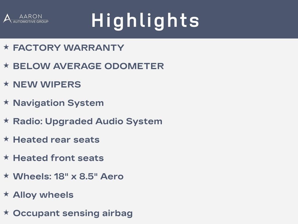 Priced below KBB Fair Purchase Price!FACTORY WARRANTY, BELOW AVERAGE ODOMETER, NEW WIPERS, 4D Sedan, Electric Motor, 1-Speed Automatic, RWD, Alloy wheels, Exterior Parking Camera Rear, Front dual zone A/C, Heated front seats, Heated rear seats, HVAC memory, Knee airbag, Lane Departure Warning System, Memory seat, Navigation System, Occupant sensing airbag, Radio: Upgraded Audio System, Wheels: 18" x 8.5" Aero.Clean CARFAX.CARFAX One-Owner.