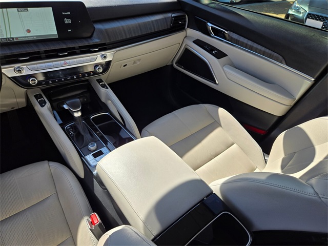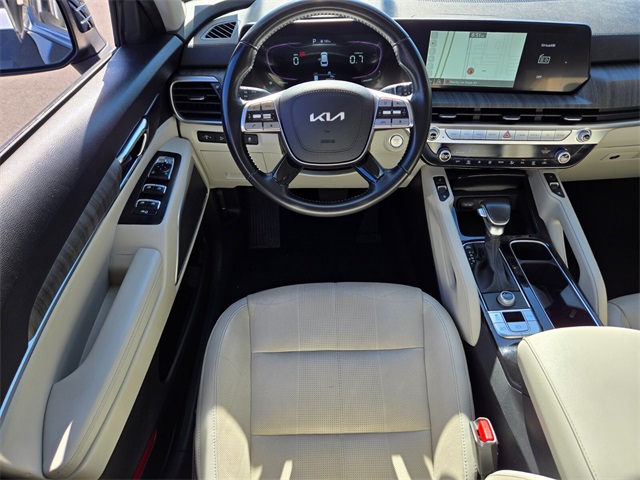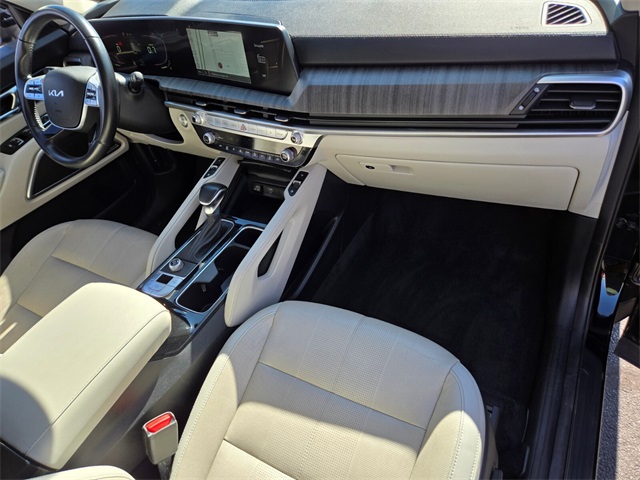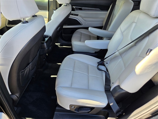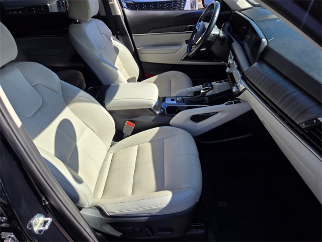 CARFAX One-Owner.20/26 City/Highway MPGEbony Black 2023 Kia Telluride EX FWD 8-Speed Automatic 3.8L V6 DGI DOHC Dual CVVTIf you don't drive here, you can't save here!Price may not include recon fee. EX Captain's Chair Package (2nd Row Captain Chairs), 3.510 Axle Ratio, 3rd row seats: split-bench, 4-Wheel Disc Brakes, 6 Speakers, ABS brakes, Air Conditioning, Alloy wheels, AM/FM radio: SiriusXM, Apple CarPlay & Android Auto, Auto High-beam Headlights, Auto-dimming Rear-View mirror, Automatic temperature control, Brake assist, Bumpers: body-color, Compass, Delay-off headlights, Driver door bin, Driver vanity mirror, Dual front impact airbags, Dual front side impact airbags, Electronic Stability Control, Emergency communication system: 911 Connect, Exterior Parking Camera Rear, Four wheel independent suspension, Front anti-roll bar, Front Bucket Seats, Front Center Armrest, Front dual zone A/C, Front reading lights, Fully automatic headlights, Heated & Ventilated Front Bucket Seats, Heated door mirrors, Heated front seats, Illuminated entry, Knee airbag, Leather Seat Trim, Leather Shift Knob, Leather steering wheel, Low tire pressure warning, Navigation System, Occupant sensing airbag, Outside temperature display, Overhead airbag, Overhead console, Panic alarm, Passenger door bin, Passenger vanity mirror, Power door mirrors, Power driver seat, Power Liftgate, Power moonroof, Power passenger seat, Power steering, Power windows, Radio data system, Radio: AM/FM Display Audio System, Rear air conditioning, Rear anti-roll bar, Rear audio controls, Rear reading lights, Rear seat center armrest, Rear side impact airbag, Rear window defroster, Rear window wiper, Reclining 3rd row seat, Remote keyless entry, Roof rack: rails only, Security system, Smart Key w/ Push Button and Remote Start, Speed control, Speed-sensing steering, Split folding rear seat, Spoiler, Steering wheel mounted audio controls, Tachometer, Telescoping steering wheel, Tilt steering wheel, Traction control, Trip computer, Turn signal indicator mirrors, Variably intermittent wipers, Ventilated front seats, and Wheels: 20" x 7.5" Black Finish.