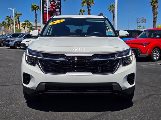 CARFAX One-Owner.Odometer is 4454 miles below market average!25/27 City/Highway MPGSnow White Pearl 2024 Kia Seltos X-Line AWD 8-Speed Automatic I4If you don't drive here, you can't save here!Price may not include recon fee. 3.510 Axle Ratio, 4-Wheel Disc Brakes, 6 Speakers, ABS brakes, Air Conditioning, Alloy wheels, AM/FM radio: SiriusXM, Apple CarPlay & Android Auto, Auto High-beam Headlights, Automatic temperature control, Brake assist, Bumpers: body-color, Carpet Floor Mats, Cloth & Sofino Premium Leatherette Seat Trim, Delay-off headlights, Driver door bin, Driver vanity mirror, Dual front impact airbags, Dual front side impact airbags, Electronic Stability Control, Emergency communication system: 911 Connect, Exterior Parking Camera Rear, Four wheel independent suspension, Front anti-roll bar, Front Bucket Seats, Front Center Armrest, Front fog lights, Front reading lights, Fully automatic headlights, Heated door mirrors, Heated Front Bucket Seats, Heated front seats, Illuminated entry, Leather Shift Knob, Leather steering wheel, Low tire pressure warning, Navigation System, Occupant sensing airbag, Outside temperature display, Overhead airbag, Overhead console, Panic alarm, Passenger door bin, Passenger vanity mirror, Power door mirrors, Power steering, Power windows, Radio: AM/FM/HD/Satellite Display System w/Navigation, Rear seat center armrest, Rear window defroster, Rear window wiper, Remote keyless entry, Security system, Speed control, Speed-sensing steering, Split folding rear seat, Spoiler, Steering wheel mounted audio controls, Tachometer, Telescoping steering wheel, Tilt steering wheel, Traction control, Trip computer, Turn signal indicator mirrors, Variably intermittent wipers, and Wheels: 18" Alloy w/Gloss Black.