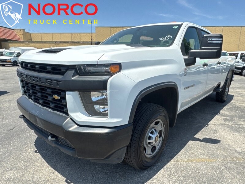 INSTALLED FEATURES: Air filtration, Front air conditioning, Front air conditioning zones: single, Rear vents: second row, Airbag deactivation: occupant sensing passenger, Front airbags: dual, Side airbags: front, Side curtain airbags: front / rear, Antenna type: mast, Auxiliary audio input: Bluetooth / iPod/iPhone / USB, Radio: AM/FM / touch screen display, Radio data system, Speed sensitive volume control, Total speakers: 6, ABS: 4-wheel, Braking assist, Electronic brakeforce distribution, Electronic parking brake: auto off, Front brake type: ventilated disc, Power brakes, Rear brake type: ventilated disc, Armrests: front center, Floor material: rubber/vinyl, Steering wheel trim: urethane, Assist handle: front / rear, Capless fuel filler system, Cupholders: front, One-touch windows: 4, Overhead console: front, Power outlet(s): 12V front, Power steering, Power windows: lockout button, Reading lights: front / rear, Rearview mirror: manual day/night, Steering wheel: tilt, Storage: door pockets, Sun visors, Bumper detail: rear step, Door handle color: black, Exhaust tip color: stainless steel, Fender lip moldings: black, Front bumper color: black, Grille color: black, Mirror color: black, Pickup bed light, Rear bumper color: black, Tailgate: removable, Window trim: black, Infotainment: Chevrolet Infotainment System, Infotainment screen size: 7 in., Smartphone integration: Android Auto / Apple CarPlay, Clock, Digital odometer, External temperature display, Fuel economy display: MPG / range, Gauge: oil pressure / tachometer, Instrument cluster screen size: 3.5 in., Multi-function display, Powertrain hour meter, Trip odometer, Warnings and reminders: coolant temperature warning / lamp failure / low battery / low fuel level / low oil pressure / maintenance due, Daytime running lights, Headlights: auto delay off / auto on/off / halogen / wiper activated, Side mirror adjustments: manual / manual folding / manual telescoping, Towing mirrors, Alternator: 170 amps, Auxiliary oil cooler, Auxiliary transmission fluid cooler, Battery: heavy duty / maintenance-free, Battery rating: 720 CCA, Battery saver, Locking differential: rear, Camera system: rearview, Check rear seat reminder, Child safety door locks, Child seat anchors: LATCH system, Programmable safety key, Rearview monitor: in dash, Emergency locking retractors: front, Front seatbelts: 3-point, Rear seatbelts: 3-point, Seatbelt pretensioners: front, Seatbelt warning sensor: front, Driver seat manual adjustments: 4 / reclining, Front headrests: 2 / adjustable, Front seat type: 40-20-40 split bench, Passenger seat manual adjustments: 4 / reclining, Rear headrests: 3 / adjustable, Rear seat folding: folds up, Rear seat type: 60-40 split bench, Upholstery: vinyl, Anti-theft system: vehicle immobilizer, Power door locks: anti-lockout / auto-locking, Hill holder control, Roll stability control, Stability control, Traction control, Trailer stability control, Front shock type: twin-tube gas, Front spring type: torsion bars, Front stabilizer bar: diameter 35 mm, Front suspension classification: independent, Front suspension type: short and long arm, Rear shock type: twin-tube gas, Rear spring type: leaf, Rear suspension classification: solid live axle, Rear suspension type: multi-leaf, Electronic messaging assistance: voice operated / with read function, Hands-free phone call integration: voice operated, Wireless data link: Bluetooth, Pickup bed cargo management: tie-down anchors, Tow hooks: front, Tow/Haul mode, Trailer hitch, Trailer wiring: 4-pin / 7-pin, Spare tire mount location: underbody, Spare tire size: full-size, Spare wheel type: steel, Tire Pressure Monitoring System, Wheels: painted steel, Front wipers: variable intermittent, Power windows: safety reverse, Solar-tinted glass
