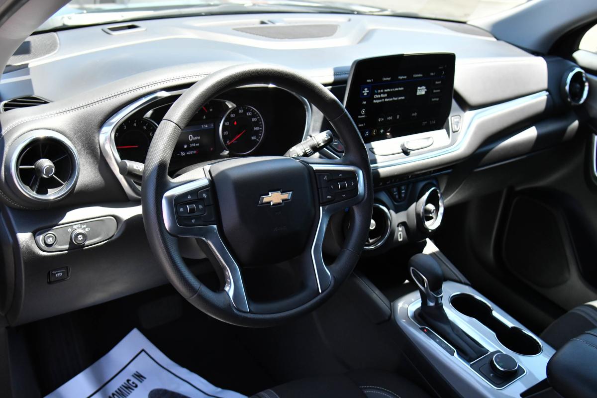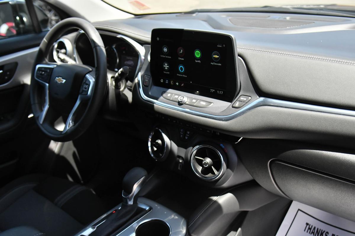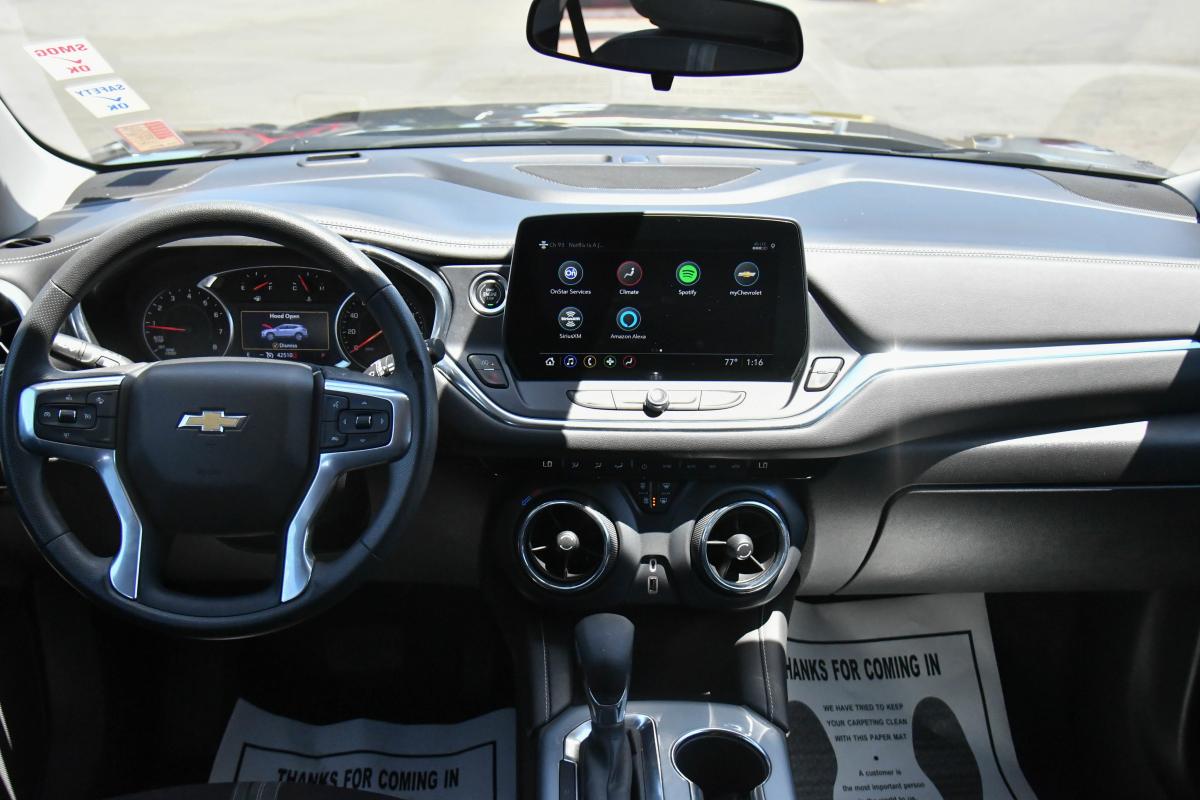 Scores 29 Highway MPG and 22 City MPG! This Chevrolet Blazer delivers a Turbocharged Gas I4 2.0L/ engine powering this Automatic transmission. WHEELS, 18 (45.7 CM) GRAZEN METALLIC ALUMINUM (STD), TRANSMISSION, 9-SPEED AUTOMATIC, ELECTRONICALLY-CONTROLLED with overdrive, includes Driver Shift Control (STD), TIRES, P235/65R18 ALL-SEASON BLACKWALL (STD).*This Chevrolet Blazer Comes Equipped with These Options *SEATS, FRONT BUCKET (STD), LT PREFERRED EQUIPMENT GROUP Includes Standard Equipment, JET BLACK, PREMIUM CLOTH SEAT TRIM, ENGINE, 2.0L TURBO, 4-CYLINDER, SIDI DOHC WITH VARIABLE VALVE TIMING (VVT) with Stop/Start (228 hp (170 kW) at 5000 rpm, 258 lb-ft of torque [350 N-m]) @ 1500-4000 rpm) (STD), DELETED 3 YEARS OF REMOTE ACCESS, BLACK, AXLE, 3.47 FINAL DRIVE RATIO, AUDIO SYSTEM, CHEVROLET INFOTAINMENT 3 PLUS SYSTEM 10.2 diagonal HD color touchscreen, AM/FM stereo, Bluetooth audio streaming for 2 active devices, Apple CarPlay and Android Auto capable, enhanced voice recognition, in-vehicle apps, cloud connected personalization for select infotainment and vehicle settings. Subscription required for enhanced and connected services after trial period. (STD), Wireless Apple CarPlay/Wireless Android Auto, Wipers, front variable-speed, intermittent with washers.