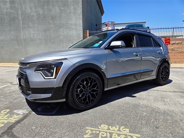 Recent Arrival!CARFAX One-Owner.Priced below KBB Fair Purchase Price!Odometer is 12942 miles below market average!53/45 City/Highway MPGSteel Gray 2023 Kia Niro SX Touring FWD 6-Speed Automatic 1.6L I4 DGI Hybrid DOHC 16V LEV3-SULEV30 1.6L I4 DGI Hybrid DOHC 16V LEV3-SULEV30.If you don't drive here, you can't save here!Price may not include recon fee. Light Gray Interior Color Package, 1.6L I4 DGI Hybrid DOHC 16V LEV3-SULEV30, 4-Wheel Disc Brakes, 4.438 Axle Ratio, 8 Speakers, ABS brakes, Air Conditioning, Alloy wheels, AM/FM radio: SiriusXM, Apple CarPlay & Android Auto, Auto High-beam Headlights, Auto-dimming Rear-View mirror, Automatic temperature control, Brake assist, Bumpers: body-color, Cargo Net, Carpet Floor Mats, Delay-off headlights, Driver door bin, Driver vanity mirror, Dual front impact airbags, Dual front side impact airbags, EC Mirror w/HomeLink (Plug-N-Play), Electronic Stability Control, Emergency communication system: Kia Connect (includes 1 year free trial), Exterior Parking Camera Rear, Four wheel independent suspension, Front anti-roll bar, Front Bucket Seats, Front Center Armrest, Front dual zone A/C, Front fog lights, Front reading lights, Fully automatic headlights, harman/kardon® Speakers, Heated & Ventilated Front Bucket Seats, Heated door mirrors, Heated front seats, Heated steering wheel, Illuminated entry, Knee airbag, Leather Shift Knob, Low tire pressure warning, Memory seat, Navigation System, Occupant sensing airbag, Outside temperature display, Overhead airbag, Overhead console, Panic alarm, Passenger door bin, Passenger vanity mirror, Perforated Vegan Leather-Trimmed Seats, Power door mirrors, Power driver seat, Power Liftgate, Power moonroof, Power steering, Power windows, Radio: AM/FM/HD/SiriusXM, Rain sensing wipers, Rear anti-roll bar, Rear seat center armrest, Rear window defroster, Rear window wiper, Remote keyless entry, Security system, Smart Key w/ Push Button and Remote Start, Speed control, Speed-sensing steering, Split folding rear seat, Spoiler, Steering wheel mounted audio controls, Telescoping steering wheel, Tilt steering wheel, Traction control, Trip computer, Turn signal indicator mirrors, Two-Level Luggage Board, Variably intermittent wipers, Ventilated front seats, and Wheels: 18" Alloy w/Machined Finish.