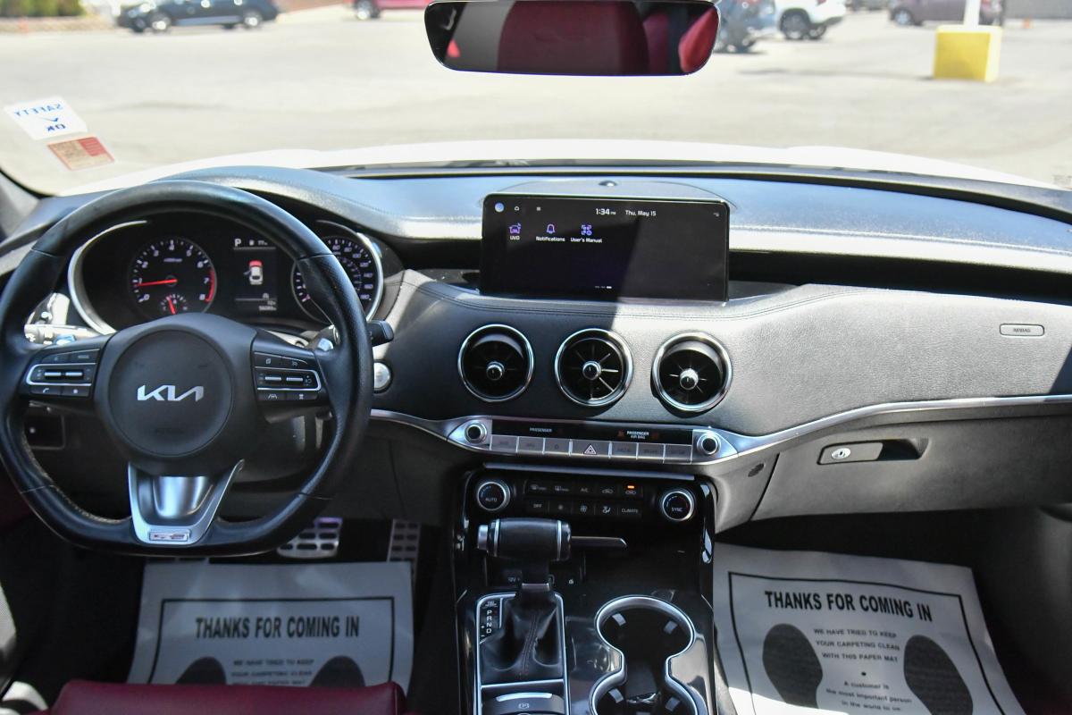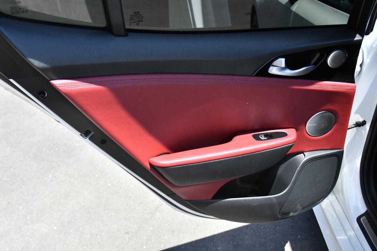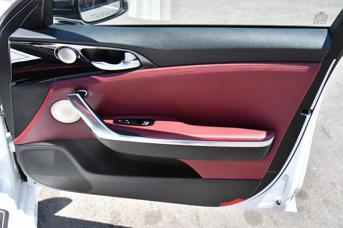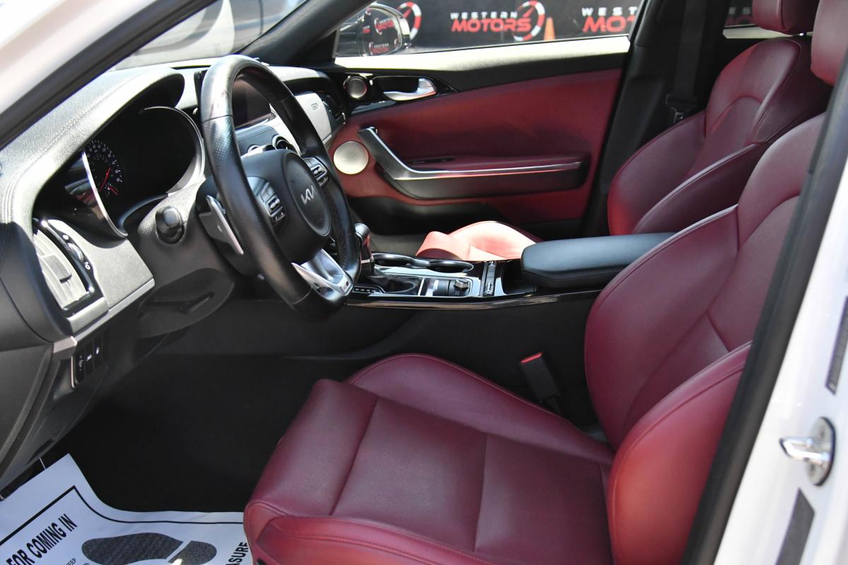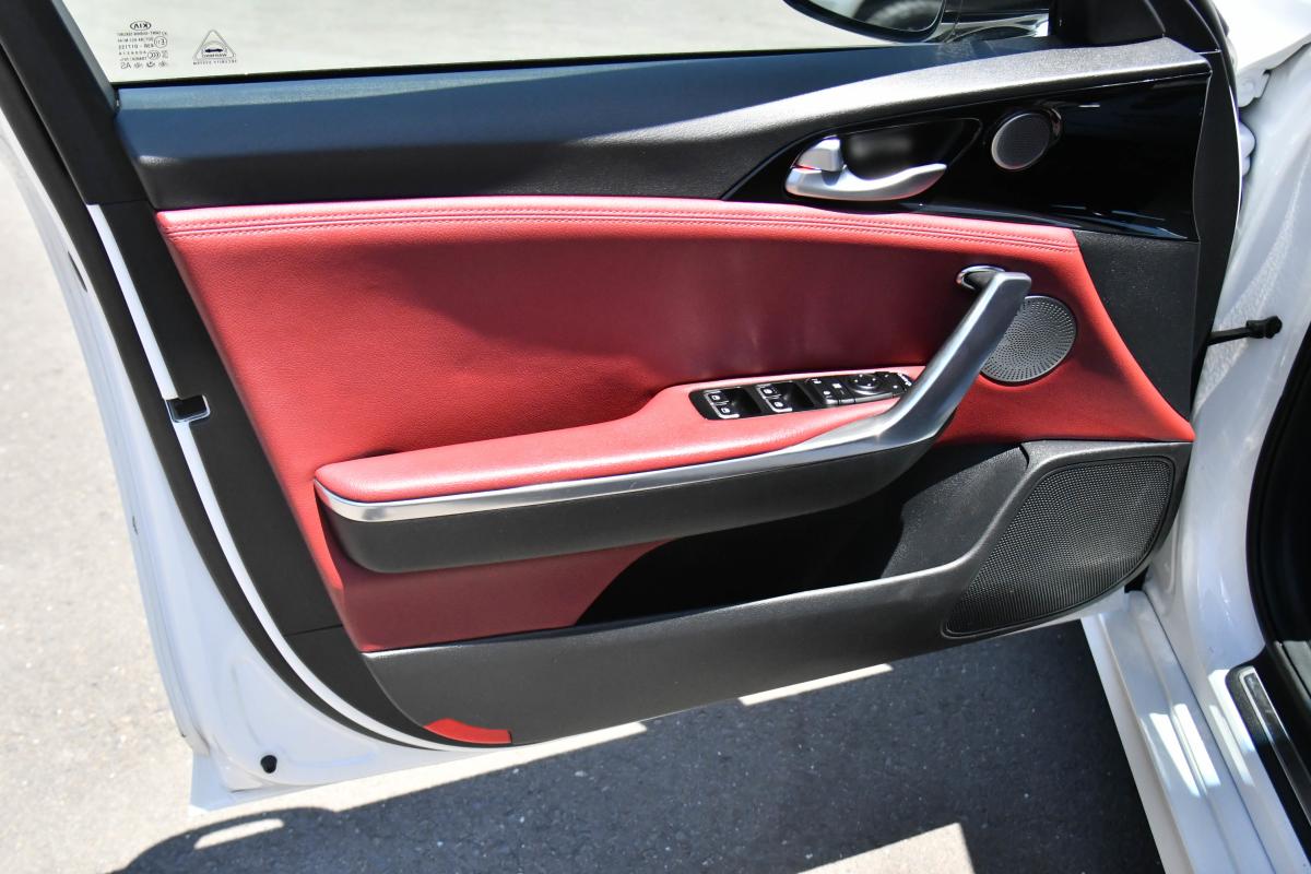 Scores 29 Highway MPG and 21 City MPG! This Kia Stinger boasts a Intercooled Turbo Premium Unleaded I-4 2.5 L/152 engine powering this Automatic transmission. SUN & SOUND PACKAGE -inc: 8-Way Power Adjustable Passenger Seat, Power Tilt & Slide Sunroof w/1-Touch, Radio: harmon/kardon AM/FM/HD Audio System, 720 watts, navigation system w/10.25 touchscreen color display, 15-speakers including dual underseat subwoofers, Quantum Logic surround sound, Clari-Fi signal enhancing technology, USB input, Android Auto/Apple CarPlay smartphone integration, Bluetooth wireless connectivity, wireless charger, steering-wheel-mounted controls, MP3, satellite radio and UVO Link, SNOW WHITE PEARL, RED INTERIOR COLOR PACKAGE -inc: Red Leather Seat Trim.*This Kia Stinger Comes Equipped with These Options *ALLOY DOOR SILL PLATE, Wheels: 8.0J x 18 Alloy, Wheels w/Machined w/Painted Accents Accents, Voice Activated Dual Zone Front Automatic Air Conditioning, Valet Function, Trip Computer, Transmission: Electronically Controlled 8-Spd Auto -inc: drive mode select and paddle shifters, Tracker System, Tires: P225/45R18 All-Season, Tire Specific Low Tire Pressure Warning.