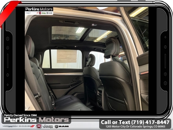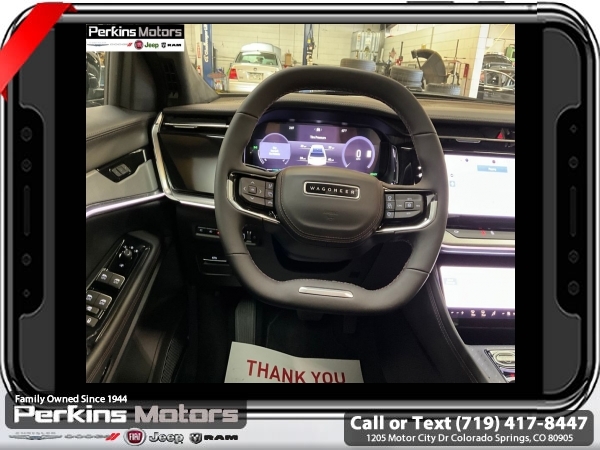 Factory MSRP: $72,790 $22,093 off MSRP! Priced below KBB Fair Purchase Price! Silver Zynith Clearcoat 2025 Jeep Wagoneer S Launch Edition 4WD 1-Speed Automatic Electric Motor<br><br>Check us out at www.perkinsmotors.com to see our specials! Since opening our doors in 1944, we’ve been proud to serve Colorado Springs, CO, and the surrounding areas of Pueblo, Castle Rock and Denver, CO. Throughout this time of being family owned for 80 years, we’ve maintained a firm commitment to our customers: to offer a wide selection of New Chrysler, Dodge, Fiat, Jeep, and Ram vehicles and quality pre-owned vehicles, and provide a quick, no-hassle car-buying process that ensures everyone drives off the lot satisfied with their purchase.<br><br>Luxury Group (115V Auxiliary Power Outlet, Digital Rearview Mirror, Front Passenger Interactive Display, Hands Free Power Liftgate, Heads-Up Display, and Roll-Up Tonneau Cover), Quick Order Package 25E, Two Tone Paint Group, 19 Speakers, 4-Wheel Disc Brakes, ABS brakes, Air Conditioning, Alloy wheels, AM/FM radio: SiriusXM with 360L, Apple CarPlay/Android Auto, Audio memory, Auto High-beam Headlights, Auto-dimming door mirrors, Auto-dimming Rear-View mirror, Automatic temperature control, Brake assist, Bumpers: body-color, Compass, Cruise Control, Delay-off headlights, Driver door bin, Driver vanity mirror, Dual front impact airbags, Dual front side impact airbags, Electronic Stability Control, Emergency communication system: Jeep Connect, Four wheel independent suspension, Front anti-roll bar, Front Bucket Seats, Front Center Armrest w/Storage, Front dual zone A/C, Front fog lights, Front reading lights, Fully automatic headlights, Garage door transmitter, Heated door mirrors, Heated front seats, Heated rear seats, Heated steering wheel, Heavy Duty Suspension, Illuminated entry, Knee airbag, Low tire pressure warning, Memory seat, Navigation System, Neo Ultra Lux III Seats, Occupant sensing airbag, Outside temperature display, Overhead airbag, Panic alarm, ParkView Rear Back-Up Camera, Passenger door bin, Passenger vanity mirror, Power door mirrors, Power driver seat, Power Liftgate, Power moonroof, Power passenger seat, Power steering, Power windows, Premium audio system: UConnect 5, Radio data system, Radio: Uconnect 5 Nav w/12.3 Display, Rain sensing wipers, Rear air conditioning, Rear anti-roll bar, Rear dual zone A/C, Rear reading lights, Rear seat center armrest, Rear side impact airbag, Rear window defroster, Rear window wiper, Remote keyless entry, Security system, Speed-sensing steering, Speed-Sensitive Wipers, Split folding rear seat, Spoiler, Steering wheel memory, Steering wheel mounted audio controls, Telescoping steering wheel, Tilt steering wheel, Traction control, Trip computer, Turn signal indicator mirrors, Variably intermittent wipers, Ventilated front seats, Ventilated rear seats, and Wheels: 20 x 8.5 Painted Aluminum Design 1.<br><br>104/90 City/Highway MPG Sale price includes all manufacture's incentives and dealer discounts. Sale price not available on lease or compatible with special APR. $3500 - Colorado Innovative Motor Vehicle Retail Credit. Exp. 12/31/2025 $4500 - 2025 National Retail Consumer Cash. Exp. 06/30/2025 $7500 - 2025 CDJ Federal Tax Credit Purchase FTC251. Exp. 01/05/2026