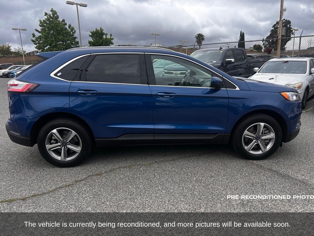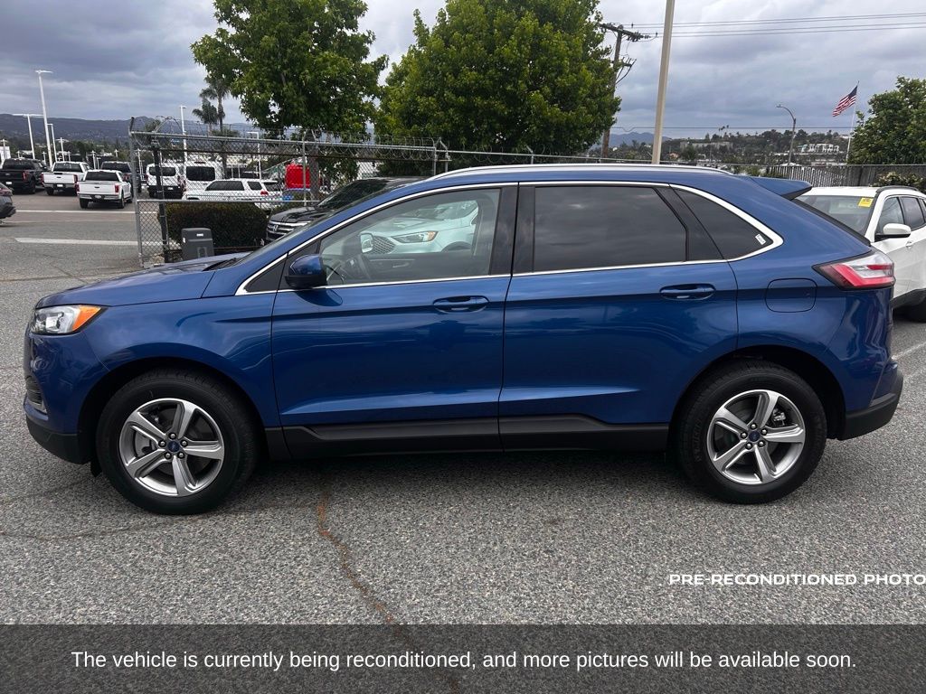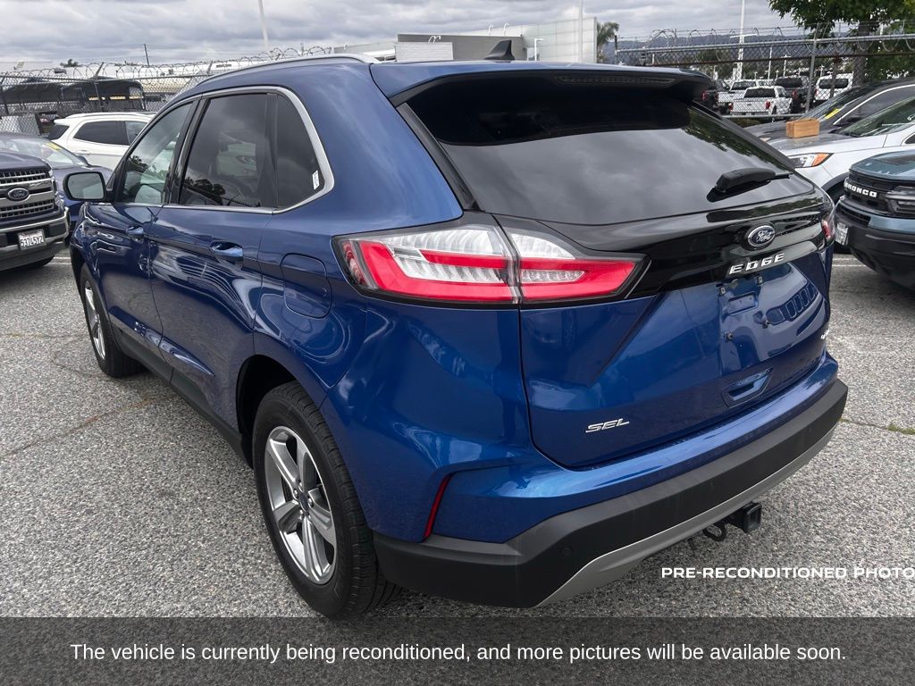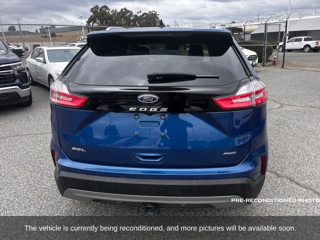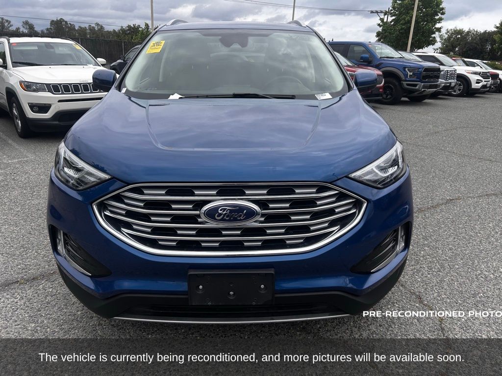 Blue 2021 Ford Edge SEL AWD 8-Speed Automatic EcoBoost 2.0L I4 GTDi DOHC Turbocharged VCT AWD, 110V/150W AC Power Outlet, Auto High-beam Headlights, Class II Trailer Tow Package, Convenience Package, Equipment Group 201A, Front Bucket Seats, Heated front seats, Perimeter Alarm, Power Liftgate, Power passenger seat, Remote Start System, SiriusXM w/360L, SYNC 4A w/Enhanced Voice Recognition, Universal Garage Door Opener (UGDO), Wheels: 18" Bright-Machined Aluminum, Wheels: 18" Sparkle Silver-Painted Aluminum, Wireless Charging Pad.Odometer is 22439 miles below market average! 21/28 City/Highway MPG