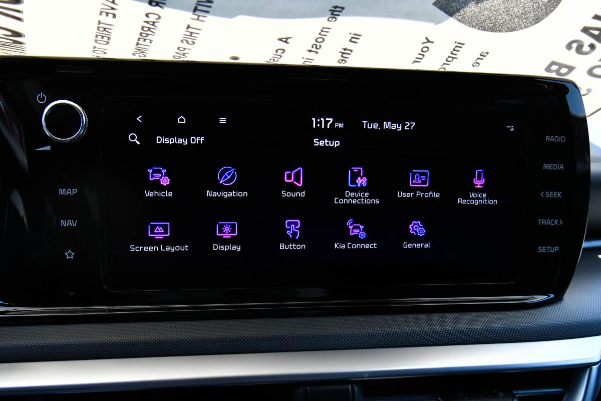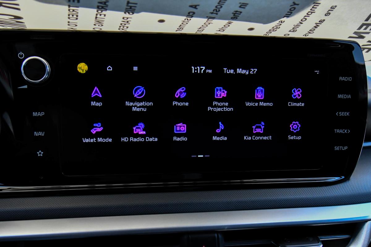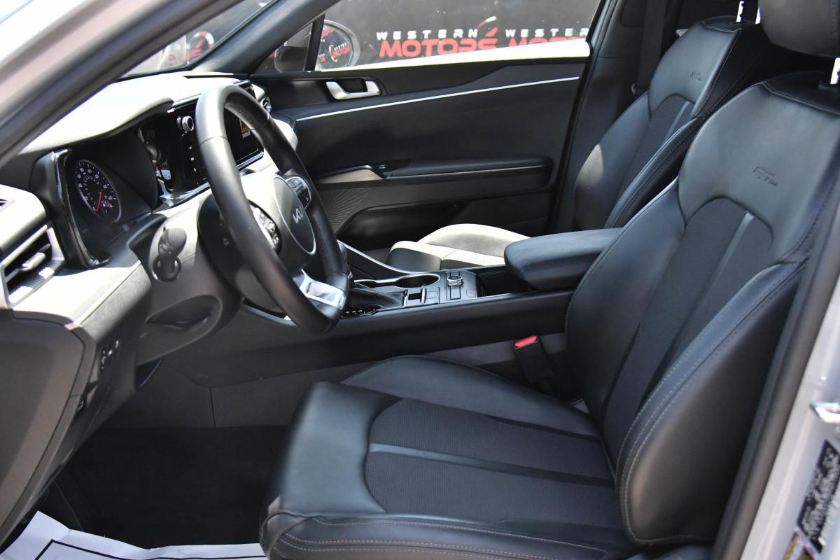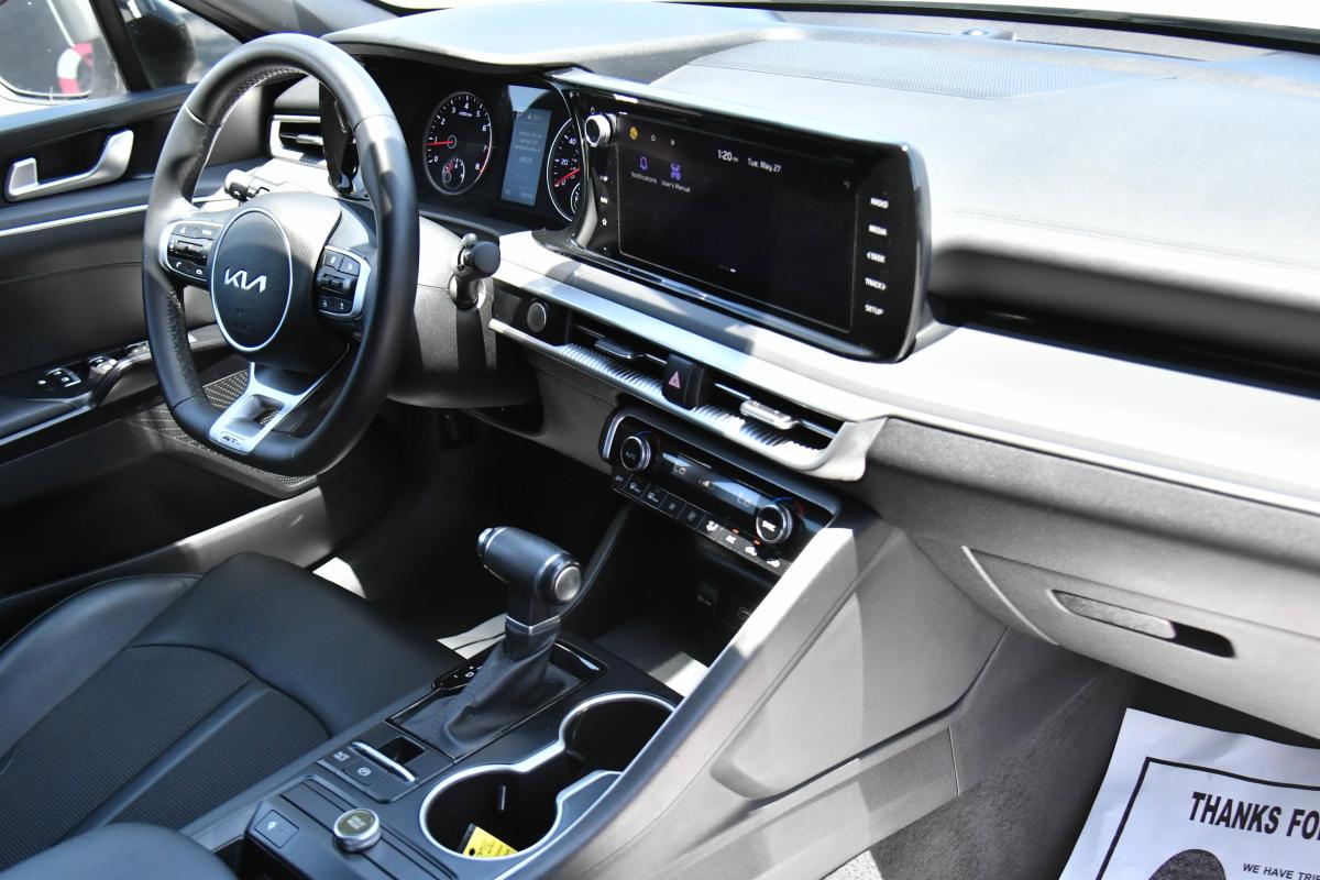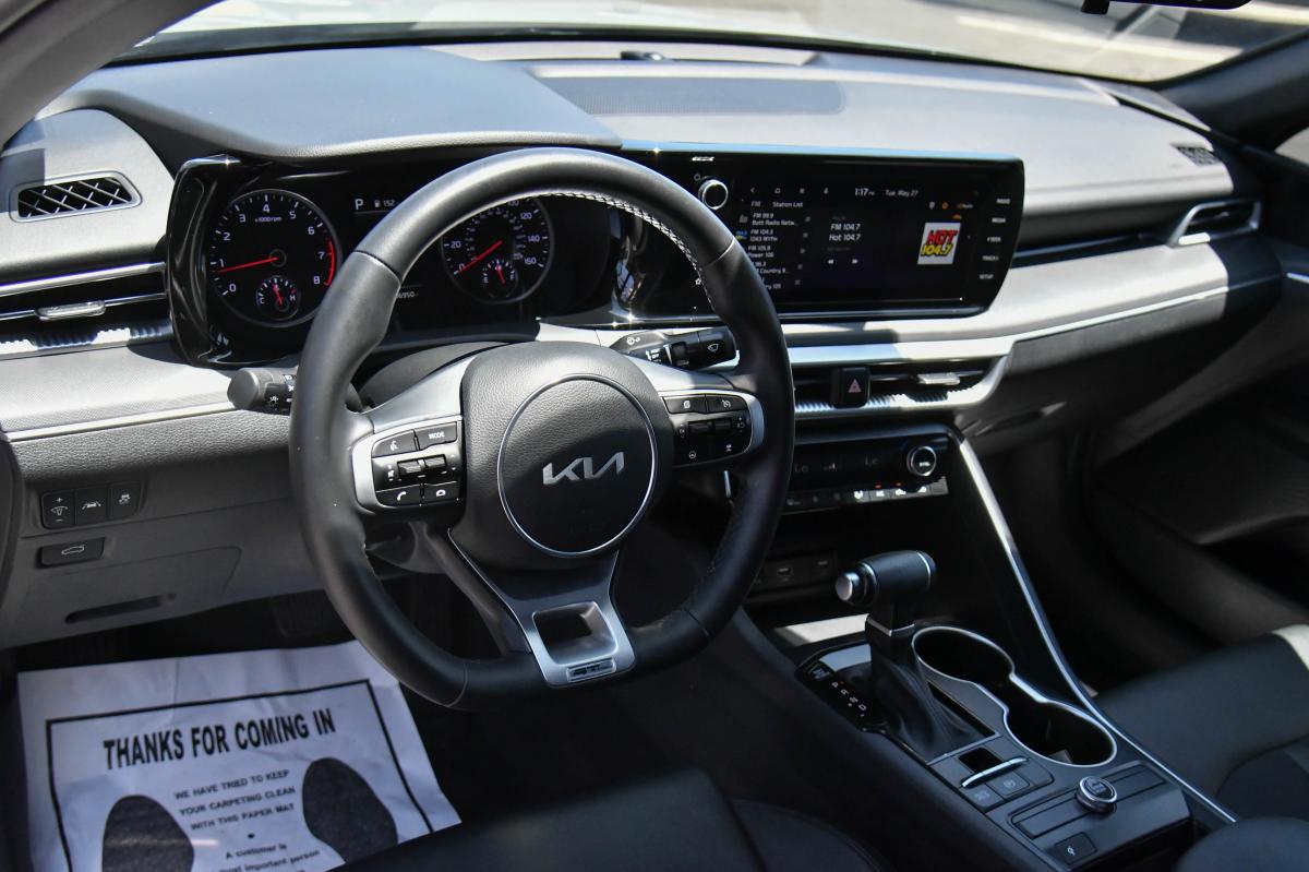 Boasts 37 Highway MPG and 27 City MPG! This Kia K5 delivers a Intercooled Turbo Regular Unleaded I-4 1.6 L/98 engine powering this Automatic transmission. WOLF GRAY, GT-LINE PREMIUM PACKAGE -inc: Smart Cruise Control w/Stop & Go, LED Projection Headlamps, Highway Driving Assist, Forward Collision Avoidance-Assist, cyclist and junction turning, CARPETED FLOOR MATS.*This Kia K5 Features the Following Options *CARGO NET, BLACK, CLOTH/SYNTEX SEAT TRIM -inc: GT-Line logo, Window Grid Antenna, Wheels: 18 Gloss Black Machined Finish Alloy, Variable Intermittent Wipers, Urethane Gear Shifter Material, Turn-By-Turn Navigation Directions, Trunk Rear Cargo Access, Trip Computer, Transmission: 8-Speed Automatic -inc: drive mode select system.