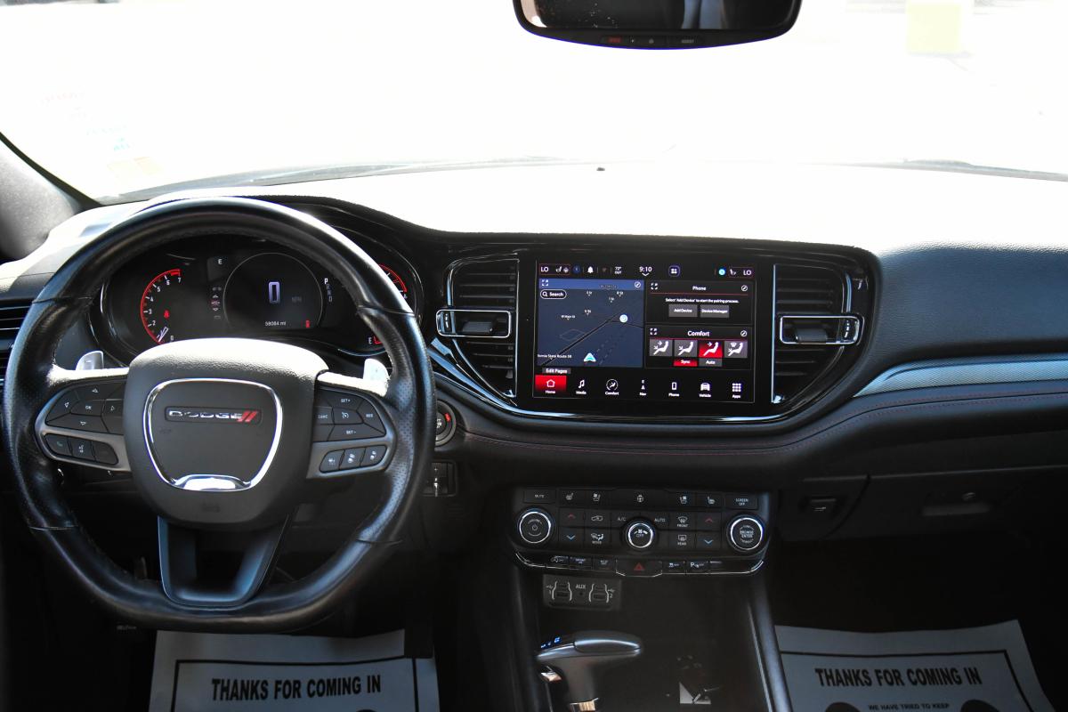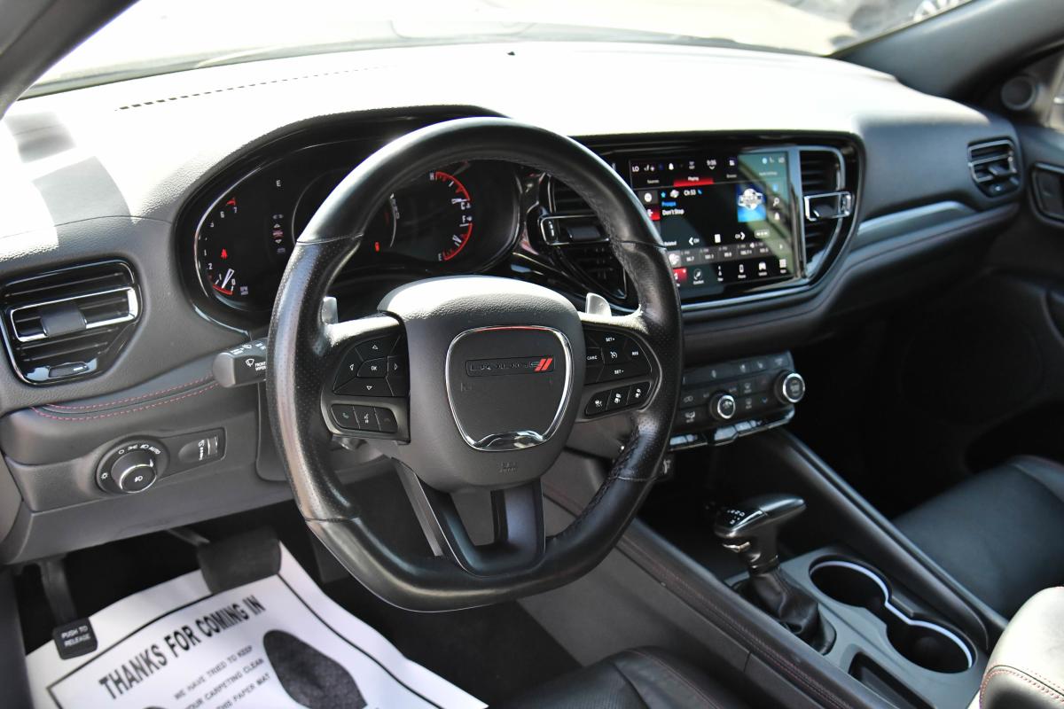 Boasts 26 Highway MPG and 19 City MPG! This Dodge Durango delivers a Regular Unleaded V-6 3.6 L/220 engine powering this Automatic transmission. WHITE KNUCKLE CLEARCOAT, WHEELS: 20 X 8.0 FINE SILVER (STD), TRANSMISSION: 8-SPEED AUTOMATIC (850RE) (STD).*This Dodge Durango Comes Equipped with These Options *QUICK ORDER PACKAGE 2BG GT PLUS -inc: Engine: 3.6L V6 24V VVT UPG I w/ESS, Transmission: 8-Speed Automatic (850RE), 7 & 4 Pin Wiring Harness, Integrated Roof Rail Crossbars, Power Driver/Passenger 4-Way Lumbar Adjust, 1-Year Trial (Registration Required), GPS Navigation, 4G LTE Wi-Fi Hot Spot, LED Auxiliary Low Beam & Turn Signal, Power Sunroof, Auto Dim Exterior Driver Mirror, Dual Remote USB Port - Charge Only, SiriusXM w/360L, Trailer Brake Control, Global Telematics Box Module (TBM), Connected Travel & Traffic Services, Heated Second Row Seats, Black Roof Rails, Class IV Receiver Hitch, Floor Console w/Leather Armrest, 10.1 Touchscreen Display, Power 6x9 Multi-Function Foldaway Mirrors, Power Tilt & Telescopic Steering Column, Disassociated Touchscreen Display, HD Radio, 180 Amp Alternator, Heavy Duty Engine Cooling, Exterior Mirrors w/Supplemental Signals, Power 8-Way Driver Memory 8-Way Passenger Seats, Ventilated Front Seats, SiriusXM Guardian - Included Trial (B), Full Speed , TIRES: 265/50R20 BSW AS LRR (STD), MANUFACTURER'S STATEMENT OF ORIGIN, FRONT LICENSE PLATE BRACKET, ENGINE: 3.6L V6 24V VVT UPG I W/ESS (STD), BLACK, LEATHER TRIMMED BUCKET SEATS, Wheels: 20 x 8.0 Fine Silver, Valet Function, USB Host Flip, Urethane Gear Shifter Material.