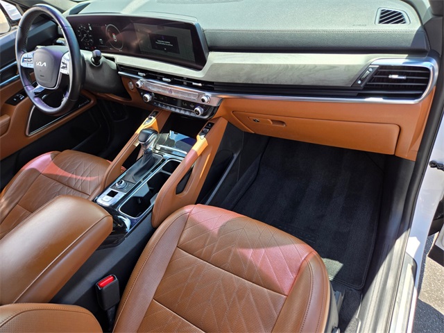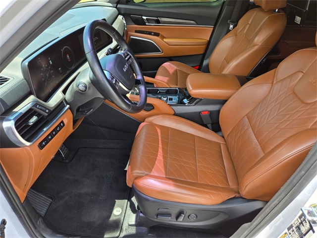 Priced below KBB Fair Purchase Price!Glacial White Pearl 2023 Kia Telluride SX-Prestige X-Pro AWD 8-Speed Automatic 3.8L V6 DGI DOHC Dual CVVTIf you don't drive here, you can't save here!Price may not include recon fee. Terracotta Interior Color Package, 10 Speakers, 3.648 Axle Ratio, 3rd row seats: split-bench, 4-Wheel Disc Brakes, ABS brakes, Air Conditioning, Alloy wheels, AM/FM radio: SiriusXM, Apple CarPlay & Android Auto, Auto High-beam Headlights, Auto-dimming Rear-View mirror, Auto-leveling suspension, Automatic temperature control, Brake assist, Bumpers: body-color, Carpet Floor Mats, Compass, Delay-off headlights, Driver door bin, Driver vanity mirror, Dual front impact airbags, Dual front side impact airbags, Electronic Stability Control, Emergency communication system: 911 Connect, Exterior Parking Camera Rear, Four wheel independent suspension, Front anti-roll bar, Front Bucket Seats, Front Center Armrest, Front dual zone A/C, Front fog lights, Front reading lights, Fully automatic headlights, Garage door transmitter: HomeLink, harman/kardon® Speakers, Heads-Up Display, Heated & Ventilated Front Bucket Seats, Heated door mirrors, Heated front seats, Heated rear seats, Heated steering wheel, Illuminated entry, Knee airbag, Leather Shift Knob, Leather steering wheel, Low tire pressure warning, Memory seat, Navigation System, Occupant sensing airbag, Outside temperature display, Overhead airbag, Overhead console, Panic alarm, Passenger door bin, Passenger vanity mirror, Power door mirrors, Power driver seat, Power Liftgate, Power moonroof, Power passenger seat, Power steering, Power windows, Premium Nappa Leather Seat Trim, Radio data system, Radio: AM/FM harman/kardon Audio System, Rain sensing wipers, Rear air conditioning, Rear anti-roll bar, Rear audio controls, Rear reading lights, Rear Seat Entertainment System, Rear side impact airbag, Rear window defroster, Rear window wiper, Reclining 3rd row seat, Remote keyless entry, Roof rack: rails only, Security system, Smart Key w/ Push Button and Remote Start, Speed control, Speed-sensing steering, Split folding rear seat, Spoiler, Steering wheel mounted audio controls, Tachometer, Telescoping steering wheel, Tilt steering wheel, Traction control, Trip computer, Turn signal indicator mirrors, Variably intermittent wipers, Ventilated front seats, Ventilated rear seats, and Wheels: 18" x 7.5" Black Finish X-PRO Exclusive.