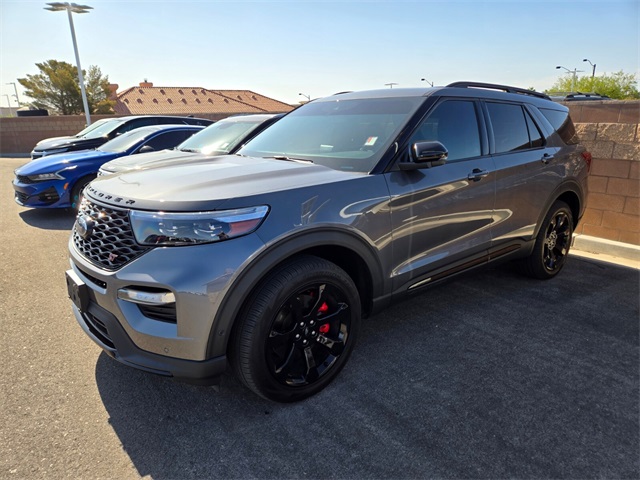 Recent Arrival!Odometer is 8069 miles below market average!Carbonized Gray Metallic 2022 Ford Explorer ST 4WD 10-Speed Automatic 3.0L EcoBoost V6 4WD.If you don't drive here, you can't save here!Price may not include recon fee. Equipment Group 401A, Ford Co-Pilot360 Assist+ (Evasive Steering Assist, Intelligent Adaptive Cruise Control, Speed Sign Recognition, and Voice-Activated Touchscreen Navigation System), Premium Technology Package (10.1" LCD Capacitive Portrait Touchscreen, 1st Row Heated Seats, 2 Additional Speakers, and Leather Htd/Ventilated Sport Captain's Chairs), ST High Package (110V/150W AC Power Outlet, 360-Degree Camera w/Split View, Auto-Dimming Rearview Mirror (Interior), FordPass Connect, Front Parking Sensors, Front Rain-Sensing Wipers, Hands-Free Foot-Activated Liftgate, Memory Driver's Seat, Power Tilt/Telescoping Steering Column, Radio: B&O Sound System by Bang & Olufsen, Reverse Brake Assist, Second Row Heated Seats, Sideview Mirrors w/Gloss Black Caps, SYNC 3 Communications & Entertainment System, Third Row PowerFold (Folds Flat), Universal Garage Door Opener (UGDO), and Wireless Charging Pad), ST Street Pack (Performance Front & Rear Brakes and Wheels: 21" Aluminum), 4WD, 20" Machined Aluminum w/Painted Pockets Wheels, 3.58 Non-Limited-Slip Rear Axle Ratio, 3rd row seats: bench, 4-Wheel Disc Brakes, 6 Speakers, ABS brakes, Air Conditioning, Alloy wheels, AM/FM radio: SiriusXM, AM/FM Stereo, Auto High-beam Headlights, Automatic temperature control, Black Roof-Rack Side Rails, Brake assist, Bumpers: body-color, Cargo Area Management System, Compass, Delay-off headlights, Driver door bin, Driver vanity mirror, Dual front impact airbags, Dual front side impact airbags, Electronic Stability Control, Emergency communication system: SYNC 3 911 Assist, Exterior Parking Camera Rear, Four wheel independent suspension, Front anti-roll bar, Front Bucket Seats, Front Center Armrest, Front dual zone A/C, Front fog lights, Front reading lights, Fully automatic headlights, Heated door mirrors, Heated front seats, Heated steering wheel, Illuminated entry, Knee airbag, Leather steering wheel, Low tire pressure warning, Memory seat, Occupant sensing airbag, Outside temperature display, Overhead airbag, Overhead console, Panic alarm, Passenger door bin, Passenger vanity mirror, Power door mirrors, Power driver seat, Power Liftgate, Power passenger seat, Power steering, Power windows, Rear air conditioning, Rear anti-roll bar, Rear Auxiliary Controls Credit, Rear reading lights, Rear window defroster, Rear window wiper, Remote keyless entry, Security system, SelectShift Capability w/Paddle Shifters, Speed control, Speed-sensing steering, Speed-Sensitive Wipers, Split folding rear seat, Spoiler, Sport steering wheel, Steering wheel mounted audio controls, SYNC 3/Apple CarPlay/Android Auto, Tachometer, Telescoping steering wheel, Tilt steering wheel, Traction control, Trip computer, Twin Panel Moonroof, Variably intermittent wipers, and Ventilated front seats.