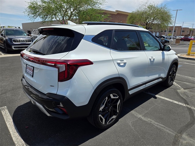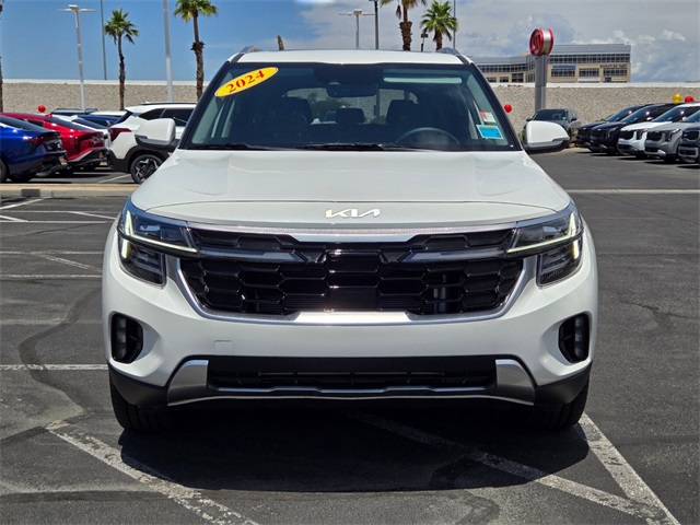 CARFAX One-Owner.Odometer is 5016 miles below market average!25/27 City/Highway MPGSnow White Pearl 2024 Kia Seltos SX AWD 8-Speed Automatic I4If you don't drive here, you can't save here!Price may not include recon fee. Midnight Green Interior Color Package, SX Sunroof Package (Digital Key, Power Liftgate, Sunroof, and Ventilated Front Seats), 3.510 Axle Ratio, 4-Wheel Disc Brakes, 8 Speakers, ABS brakes, Air Conditioning, Alloy wheels, AM/FM radio: SiriusXM, Apple CarPlay & Android Auto, Auto High-beam Headlights, Auto-dimming Rear-View mirror, Automatic temperature control, Brake assist, Bumpers: body-color, Carpet Floor Mats, Delay-off headlights, Driver door bin, Driver vanity mirror, Dual front impact airbags, Dual front side impact airbags, Electronic Stability Control, Emergency communication system: 911 Connect, Exterior Parking Camera Rear, Four wheel independent suspension, Front anti-roll bar, Front Bucket Seats, Front Center Armrest, Front fog lights, Front reading lights, Fully automatic headlights, Heated door mirrors, Heated Front Bucket Seats, Heated front seats, Illuminated entry, Leather Shift Knob, Leather steering wheel, Low tire pressure warning, Navigation System, Occupant sensing airbag, Outside temperature display, Overhead airbag, Overhead console, Panic alarm, Passenger door bin, Passenger vanity mirror, Power door mirrors, Power driver seat, Power steering, Power windows, Radio: AM/FM/HD/Satellite Display System w/Navigation, Rear seat center armrest, Rear window defroster, Rear window wiper, Remote keyless entry, Security system, Sofino Premium Leatherette Seat Trim, Speed control, Speed-sensing steering, Split folding rear seat, Spoiler, Sport steering wheel, Steering wheel mounted audio controls, Tachometer, Telescoping steering wheel, Tilt steering wheel, Traction control, Trip computer, Turn signal indicator mirrors, Variably intermittent wipers, and Wheels: 18" Alloy w/Machined Finish.