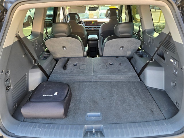 CARFAX One-Owner.Aurora Black Pearl 2024 Kia EV9 Light Long Range RWD 1-Speed Automatic Electric MotorIf you don't drive here, you can't save here!Price may not include recon fee. 13.16 Axle Ratio, 3rd row seats: split-bench, 4-Wheel Disc Brakes, 8 Speakers, ABS brakes, Air Conditioning, Alloy wheels, AM/FM radio: SiriusXM, Apple CarPlay & Android Auto, Auto High-beam Headlights, Auto-dimming Rear-View mirror, Automatic temperature control, Brake assist, Bumpers: body-color, Delay-off headlights, Driver door bin, Driver vanity mirror, Dual front impact airbags, Dual front side impact airbags, Electronic Stability Control, Emergency communication system: 911 Connect, Exterior Parking Camera Rear, Four wheel independent suspension, Front anti-roll bar, Front Bucket Seats, Front Center Armrest w/Storage, Front dual zone A/C, Front reading lights, Fully automatic headlights, Garage door transmitter: HomeLink, Heated & Ventilated Front Bucket Seats, Heated door mirrors, Heated front seats, Illuminated entry, Knee airbag, Low tire pressure warning, Navigation System, Occupant sensing airbag, Outside temperature display, Overhead airbag, Overhead console, Panic alarm, Passenger door bin, Passenger vanity mirror, Power door mirrors, Power driver seat, Power Liftgate, Power passenger seat, Power steering, Power windows, Radio data system, Radio: AM/FM/MP3/HD Radio/SiriusXM, Rain sensing wipers, Rear air conditioning, Rear anti-roll bar, Rear reading lights, Rear seat center armrest, Rear window defroster, Rear window wiper, Reclining 3rd row seat, Remote keyless entry, Security system, Speed control, Speed-sensing steering, Split folding rear seat, Spoiler, Steering wheel mounted audio controls, SynTex Leather Seats, Telescoping steering wheel, Tilt steering wheel, Traction control, Trip computer, Turn signal indicator mirrors, Variably intermittent wipers, Ventilated front seats, and Wheels: 19" Black & Machined Finished Alloy.
