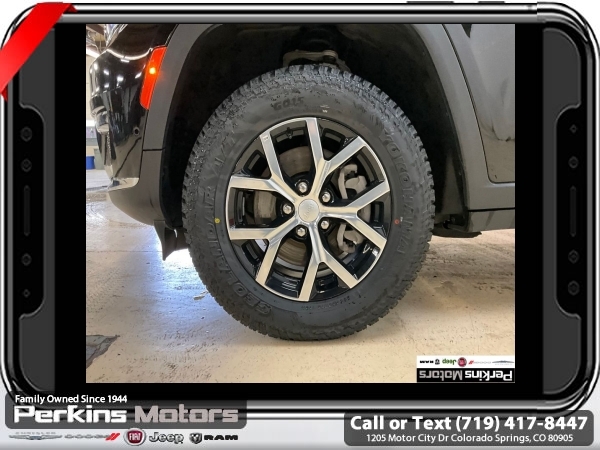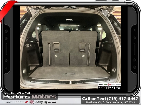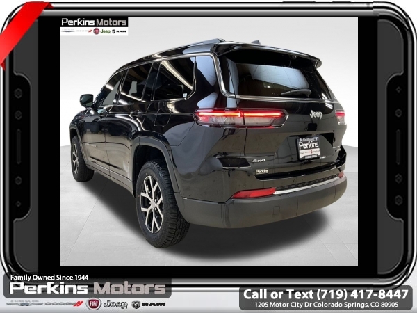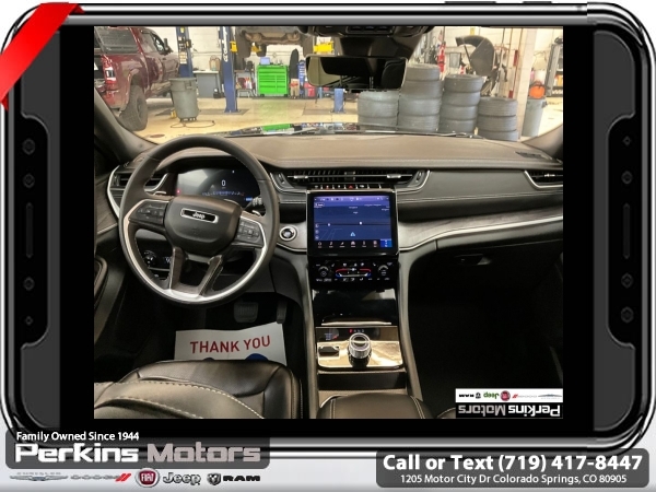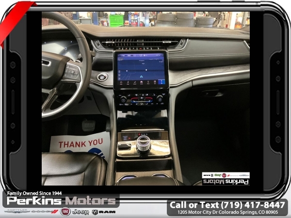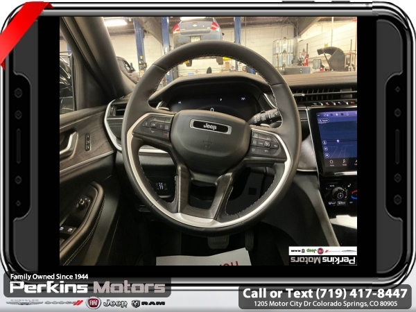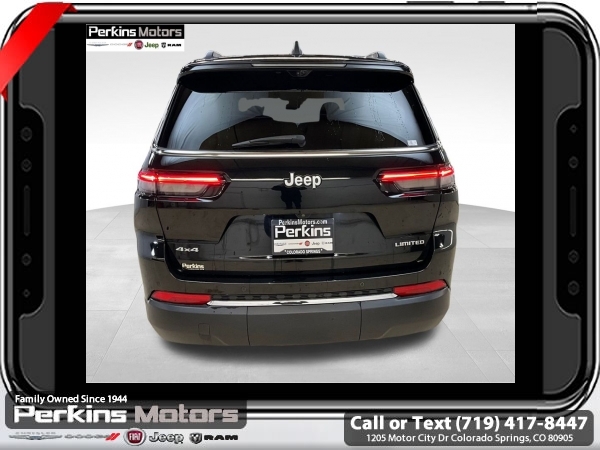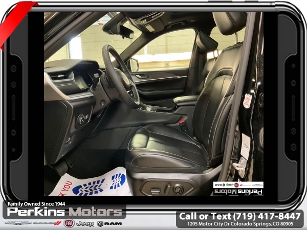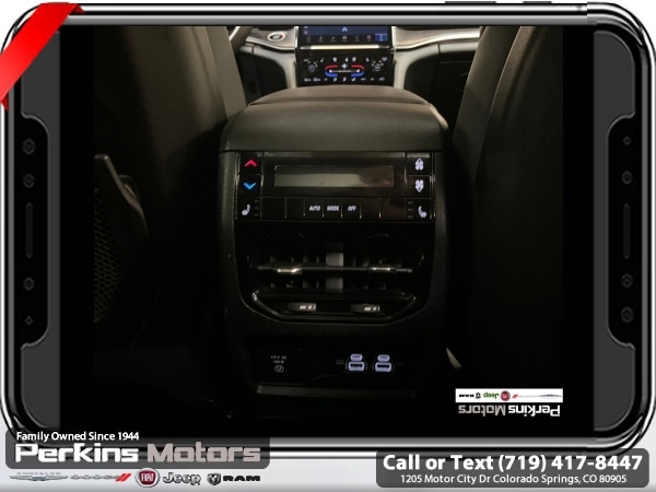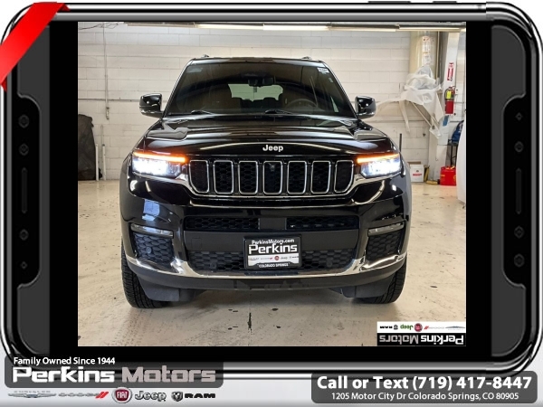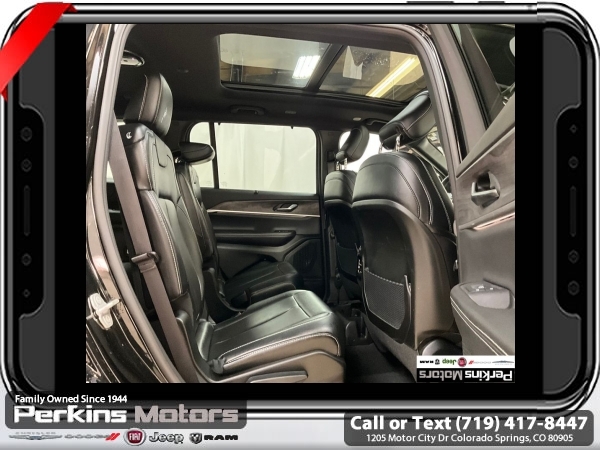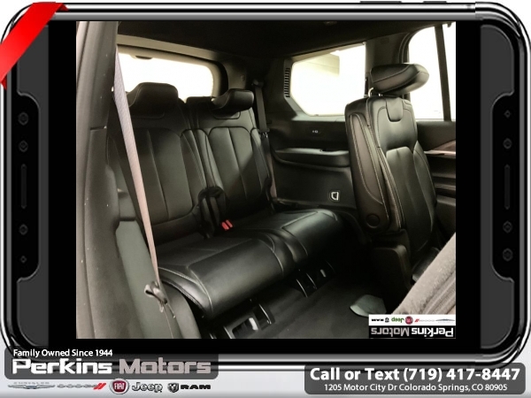 Diamond Black Crystal Pearlcoat 4WD 3.6L V6 24V VVT 8-Speed Automatic<br><br><br>CARFAX One-Owner. Clean CARFAX.<br><br>Check us out at www.perkinsmotors.com to see our specials! Since opening our doors in 1944, we’ve been proud to serve Colorado Springs, CO, and the surrounding areas of Pueblo, Castle Rock and Denver, CO. Throughout this time of being family owned for 80 years, we’ve maintained a firm commitment to our customers: to offer a wide selection of New Chrysler, Dodge, Fiat, Jeep, and Ram vehicles and quality pre-owned vehicles, and provide a quick, no-hassle car-buying process that ensures everyone drives off the lot satisfied with their purchase.<br><br><br>Luxury Tech Group II (2nd Row Manual Window Shades, Auto-Dimming Exterior Driver Mirror, Capri Leatherette w/Axis II Seats, Integrated Off-Road Camera, Intersection Collision Assist System, Memory Steering Column, ParkSense Front/Rear Park Assist w/Stop, Passive Entry - Front/Rear Doors, Liftgate, Power Tilt/Telescope Steering Column, Rain Sensitive Windshield Wipers, Rear Back Up Camera Washer, Rearview Autodim Digital Display Mirror, Surround View Camera System, Ventilated Front Seats, and Wireless Charging Pad), Quick Order Package 23E, 3.45 Rear Axle Ratio, 3rd row seats: split-bench, 4-Wheel Disc Brakes, 6 Speakers, ABS brakes, Active Noise Control System, Air Conditioning, Alloy wheels, AM/FM radio: SiriusXM with 360L, Anti-whiplash front head restraints, Audio memory, Auto High-beam Headlights, Automatic temperature control, Brake assist, Bumpers: body-color, Capri Leatherette Seats, Compass, Cruise Control, Delay-off headlights, Driver door bin, Driver vanity mirror, Dual front impact airbags, Dual front side impact airbags, Dual-Pane Panoramic Sunroof, Electronic Stability Control, Emergency communication system, Four wheel independent suspension, Front anti-roll bar, Front Bucket Seats, Front Center Armrest w/Storage, Front dual zone A/C, Front fog lights, Front License Plate Bracket, Front reading lights, Fully automatic headlights, Garage door transmitter, Heated door mirrors, Heated front seats, Heated rear seats, Heated steering wheel, Illuminated entry, Interior Rear Facing Camera, Knee airbag, Low tire pressure warning, Manual Fold Seatbacks, Memory seat, Navigation System, Normal Duty Suspension, Occupant sensing airbag, Outside temperature display, Overhead airbag, Overhead console, Panic alarm, ParkView Rear Back-Up Camera, Passenger door bin, Passenger vanity mirror, Power door mirrors, Power driver seat, Power Liftgate, Power passenger seat, Power steering, Power windows, Radio data system, Radio: Uconnect 5 Nav w/10.1 Display, Rear air conditioning, Rear anti-roll bar, Rear reading lights, Rear window defroster, Rear window wiper, Reclining 3rd row seat, Remote keyless entry, Security system, Speed-Sensitive Wipers, Split folding rear seat, Spoiler, Steering wheel mounted audio controls, Tachometer, Telescoping steering wheel, Tilt steering wheel, Traction control, Trip computer, Turn signal indicator mirrors, Variably intermittent wipers, Voltmeter, and Wheels: 18 x 8.0 Polished/Painted Aluminum.