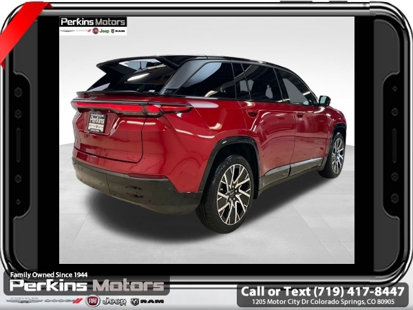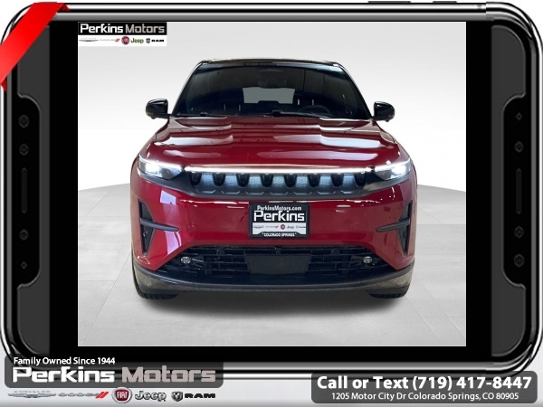 Factory MSRP: $67,790 $21,643 off MSRP! Priced below KBB Fair Purchase Price! Red Hot Pearlcoat 2025 Jeep Wagoneer S Limited 4WD 1-Speed Automatic Electric Motor<br><br>Check us out at www.perkinsmotors.com to see our specials! Since opening our doors in 1944, we’ve been proud to serve Colorado Springs, CO, and the surrounding areas of Pueblo, Castle Rock and Denver, CO. Throughout this time of being family owned for 80 years, we’ve maintained a firm commitment to our customers: to offer a wide selection of New Chrysler, Dodge, Fiat, Jeep, and Ram vehicles and quality pre-owned vehicles, and provide a quick, no-hassle car-buying process that ensures everyone drives off the lot satisfied with their purchase.<br><br>Dark Appearance Package (Dark Daylight Opening Upper, Titanium Exterior Accents, Titanium Rear Fascia Applique, and Titanium Upper Grille Applique), Quick Order Package 25D, Two Tone Paint Group, 10 Speakers, 4-Wheel Disc Brakes, ABS brakes, Air Conditioning, Alloy wheels, AM/FM radio: SiriusXM with 360L, Apple CarPlay/Android Auto, Audio memory, Auto High-beam Headlights, Auto-dimming door mirrors, Auto-dimming Rear-View mirror, Automatic temperature control, Brake assist, Bumpers: body-color, Compass, Cruise Control, Delay-off headlights, Driver door bin, Driver vanity mirror, Dual front impact airbags, Dual front side impact airbags, Electronic Stability Control, Emergency communication system: Jeep Connect, Four wheel independent suspension, Front anti-roll bar, Front Bucket Seats, Front Center Armrest w/Storage, Front dual zone A/C, Front fog lights, Front reading lights, Fully automatic headlights, Garage door transmitter, Heated door mirrors, Heated front seats, Heated steering wheel, Heavy Duty Suspension, Illuminated entry, Knee airbag, Low tire pressure warning, Memory seat, Navigation System, Neo Ultra Lux II Seats, Occupant sensing airbag, Outside temperature display, Overhead airbag, Panic alarm, ParkView Rear Back-Up Camera, Passenger door bin, Passenger vanity mirror, Power door mirrors, Power driver seat, Power Liftgate, Power moonroof, Power passenger seat, Power steering, Power windows, Premium audio system: UConnect 5, Radio data system, Radio: Uconnect 5 Nav w/12.3 Display, Rain sensing wipers, Rear air conditioning, Rear anti-roll bar, Rear dual zone A/C, Rear reading lights, Rear seat center armrest, Rear side impact airbag, Rear window defroster, Rear window wiper, Remote keyless entry, Security system, Speed-sensing steering, Speed-Sensitive Wipers, Split folding rear seat, Spoiler, Steering wheel mounted audio controls, Telescoping steering wheel, Tilt steering wheel, Traction control, Trip computer, Turn signal indicator mirrors, Variably intermittent wipers, and Wheels: 20 x 8.5 Painted Diamond Aluminum Design 1. Sale price includes all manufacture's incentives and dealer discounts. Sale price not available on lease or compatible with special APR. $3500 - Colorado Innovative Motor Vehicle Retail Credit. Exp. 12/31/2025 $4500 - 2025 National Retail Consumer Cash. Exp. 06/30/2025 $7500 - 2025 CDJ Federal Tax Credit Purchase FTC251. Exp. 01/05/2026