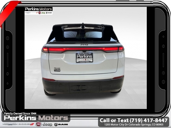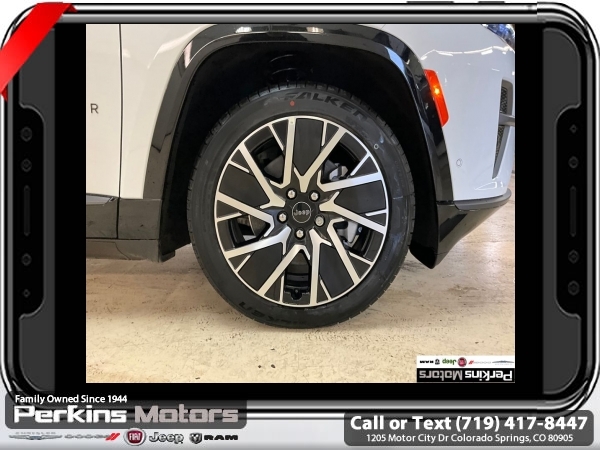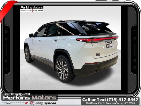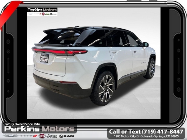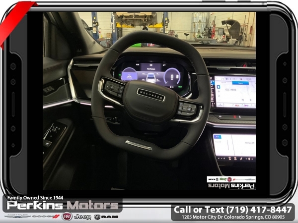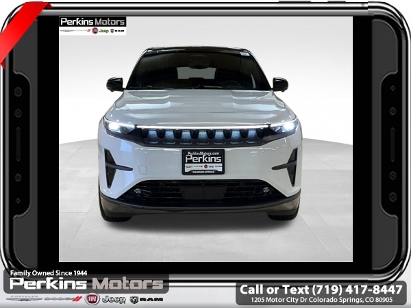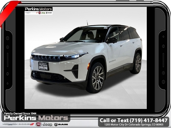 Factory MSRP: $67,195 $21,619 off MSRP! Priced below KBB Fair Purchase Price! Bright White Clearcoat 2025 Jeep Wagoneer S Limited 4WD 1-Speed Automatic Electric Motor<br><br>Check us out at www.perkinsmotors.com to see our specials! Since opening our doors in 1944, we’ve been proud to serve Colorado Springs, CO, and the surrounding areas of Pueblo, Castle Rock and Denver, CO. Throughout this time of being family owned for 80 years, we’ve maintained a firm commitment to our customers: to offer a wide selection of New Chrysler, Dodge, Fiat, Jeep, and Ram vehicles and quality pre-owned vehicles, and provide a quick, no-hassle car-buying process that ensures everyone drives off the lot satisfied with their purchase.<br><br>Dark Appearance Package (Dark Daylight Opening Upper, Titanium Exterior Accents, Titanium Rear Fascia Applique, and Titanium Upper Grille Applique), Quick Order Package 25D, Two Tone Paint Group, 10 Speakers, 4-Wheel Disc Brakes, ABS brakes, Air Conditioning, Alloy wheels, AM/FM radio: SiriusXM with 360L, Apple CarPlay/Android Auto, Audio memory, Auto High-beam Headlights, Auto-dimming door mirrors, Auto-dimming Rear-View mirror, Automatic temperature control, Brake assist, Bumpers: body-color, Compass, Cruise Control, Delay-off headlights, Driver door bin, Driver vanity mirror, Dual front impact airbags, Dual front side impact airbags, Electronic Stability Control, Emergency communication system: Jeep Connect, Four wheel independent suspension, Front anti-roll bar, Front Bucket Seats, Front Center Armrest w/Storage, Front dual zone A/C, Front fog lights, Front reading lights, Fully automatic headlights, Garage door transmitter, Heated door mirrors, Heated front seats, Heated steering wheel, Heavy Duty Suspension, Illuminated entry, Knee airbag, Low tire pressure warning, Memory seat, Navigation System, Neo Ultra Lux II Seats, Occupant sensing airbag, Outside temperature display, Overhead airbag, Panic alarm, ParkView Rear Back-Up Camera, Passenger door bin, Passenger vanity mirror, Power door mirrors, Power driver seat, Power Liftgate, Power moonroof, Power passenger seat, Power steering, Power windows, Premium audio system: UConnect 5, Radio data system, Radio: Uconnect 5 Nav w/12.3 Display, Rain sensing wipers, Rear air conditioning, Rear anti-roll bar, Rear dual zone A/C, Rear reading lights, Rear seat center armrest, Rear side impact airbag, Rear window defroster, Rear window wiper, Remote keyless entry, Security system, Speed-sensing steering, Speed-Sensitive Wipers, Split folding rear seat, Spoiler, Steering wheel mounted audio controls, Telescoping steering wheel, Tilt steering wheel, Traction control, Trip computer, Turn signal indicator mirrors, Variably intermittent wipers, and Wheels: 20 x 8.5 Painted Diamond Aluminum Design 1. Sale price includes all manufacture's incentives and dealer discounts. Sale price not available on lease or compatible with special APR. $3500 - Colorado Innovative Motor Vehicle Retail Credit. Exp. 12/31/2025 $4500 - 2025 National Retail Consumer Cash. Exp. 06/30/2025 $7500 - 2025 CDJ Federal Tax Credit Purchase FTC251. Exp. 01/05/2026