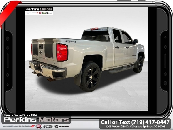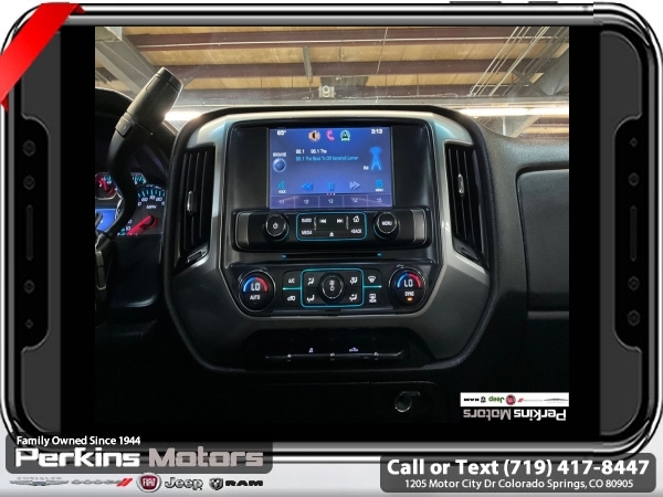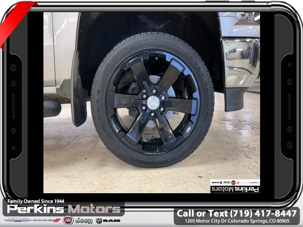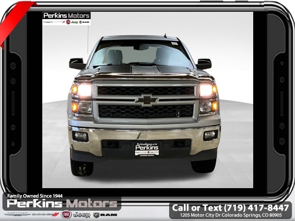 Silver Ice Metallic 4WD EcoTec3 5.3L V8 Flex Fuel 6-Speed Automatic Electronic with Overdrive<br><br>6-Speed Automatic Electronic with Overdrive, 4WD, Black Cloth.<br><br><br>Check us out at www.perkinsmotors.com to see our specials! Since opening our doors in 1944, we’ve been proud to serve Colorado Springs, CO, and the surrounding areas of Pueblo, Castle Rock and Denver, CO. Throughout this time of being family owned for 80 years, we’ve maintained a firm commitment to our customers: to offer a wide selection of New Chrysler, Dodge, Fiat, Jeep, and Ram vehicles and quality pre-owned vehicles, and provide a quick, no-hassle car-buying process that ensures everyone drives off the lot satisfied with their purchase.<br><br>Reviews:<br> * New, more fuel-efficient engines; improved interior; quiet highway ride. Source: Edmunds<br> * While we realize the majority of full-size truck buyers are predisposed towards their favorite brand, the 2014 Chevy Silverado makes a compelling case for itself. From its sophisticated-yet-easy-to-use infotainment system to its surprisingly refined interior, the 2014 Silverado deserves serious consideration from the brand faithful and cross-shoppers alike. Source: KBB.com<br><br><br>Awards:<br> * NACTOY 2014 North American Truck of the Year * 2014 KBB.com Brand Image Awards<br><br>Trailering Equipment (Heavy-Duty Rear Locking Differential), 6-Speed Automatic Electronic with Overdrive, 4WD, Black Cloth, 10-Way Power Driver's Seat Adjuster, 110-Volt AC Power Outlet, 150 Amp Alternator, 3.42 Rear Axle Ratio, 4-Wheel Disc Brakes, 4.2 Diagonal Color Display Driver Info Center, 4 Round Black Tubular Assist Steps (LPO), 40/20/40 Front Split Bench Seat, 6 Speaker Audio System, 6 Speakers, ABS brakes, Air Conditioning, Alloy wheels, AM/FM radio: SiriusXM, Auxiliary External Transmission Oil Cooler, Black Power Adjustable Heated Outside Mirrors, Bluetooth® For Phone, Brake assist, Bumpers: chrome, CD player, Cloth Seat Trim, Color-Keyed Carpeting w/Rubberized Vinyl Floor Mats, Compass, Cruise Control, Deep-Tinted Glass, Delay-off headlights, Driver & Front Passenger Illuminated Vanity Mirrors, Driver door bin, Driver vanity mirror, Dual front impact airbags, Dual front side impact airbags, Dual-Zone Automatic Climate Control, Electric Rear-Window Defogger, Electronic Stability Control, Emergency communication system: OnStar Directions & Connections, EZ Lift & Lower Tailgate, Front anti-roll bar, Front Center Armrest w/Storage, Front Chrome Bumper, Front Frame-Mounted Black Recovery Hooks, Front Halogen Fog Lamps, Front reading lights, Front wheel independent suspension, Fully automatic headlights, Heated door mirrors, Illuminated entry, Leather Wrapped Steering Wheel w/Cruise Controls, Low tire pressure warning, Manual Tilt Wheel Steering Column, Occupant sensing airbag, OnStar 6 Months Directions & Connections Plan, Outside temperature display, Overhead airbag, Overhead console, Panic alarm, Passenger door bin, Passenger vanity mirror, Power door mirrors, Power steering, Power windows, Power Windows w/Driver Express Up, Premium audio system: Chevrolet MyLink, Radio data system, Radio: AM/FM 8 Diagonal Color Touch Screen, Radio: AM/FM Audio System w/Chevrolet MyLink, Rally 2 Edition, Rear 60/40 Folding Bench Seat (Folds Up), Rear Chrome Bumper, Rear reading lights, Rear step bumper, Rear Vision Camera w/Dynamic Guide Lines, Rear Wheelhouse Liners, Remote Keyless Entry, Remote keyless entry, Remote Vehicle Starter System, Single Slot CD/MP3 Player, SiriusXM Satellite & HD Radio, Speed-sensing steering, Split folding rear seat, Steering Wheel Audio Controls, Steering wheel mounted audio controls, Tachometer, Theft Deterrent System (Unauthorized Entry), Tilt steering wheel, Traction control, Trip computer, Variably intermittent wipers, Voltmeter, Wheels: 17 x 8 Bright Machined Aluminum, Wheels: 22 6-Spoke Black (LPO) (DISC), and Wheels: 22 x 9 Steel Interim (LPO)