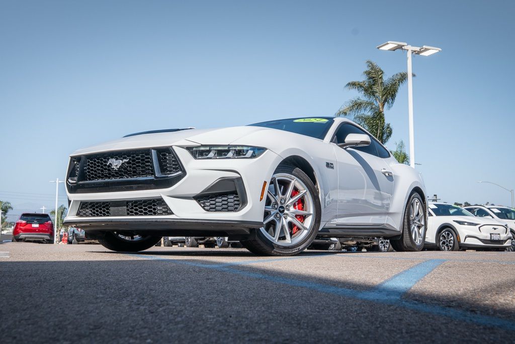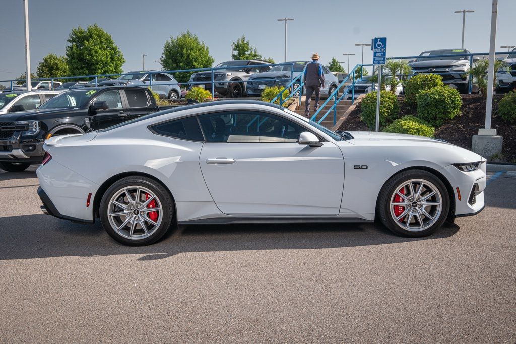 Oxford White 2024 Ford Mustang GT Premium RWD 10-Speed Automatic 5.0L V8 Ti-VCT Active Anti-Theft System, B&O Sound System by Bang & Olufsen, Connected Built-In Navigation, Equipment Group 401A High Package, Exterior Parking Camera Rear, Ford Co-Pilot360 Assist+, Illuminated Door-Sill Scuff Plates, Integrated Turn Signals, Leather-Trimmed Bucket Seats w/Color Accents, Locking Center Console, Memory Driver Seat & Mirrors, Pre-Collision Assist w/Automatic Emergency Braking, Rear Parking Sensors, Security Package, SYNC 4.0 QNX, Wheel Locking Kit, Wheels: 19" x 8.5" Shadow Silver-Painted Aluminum.
