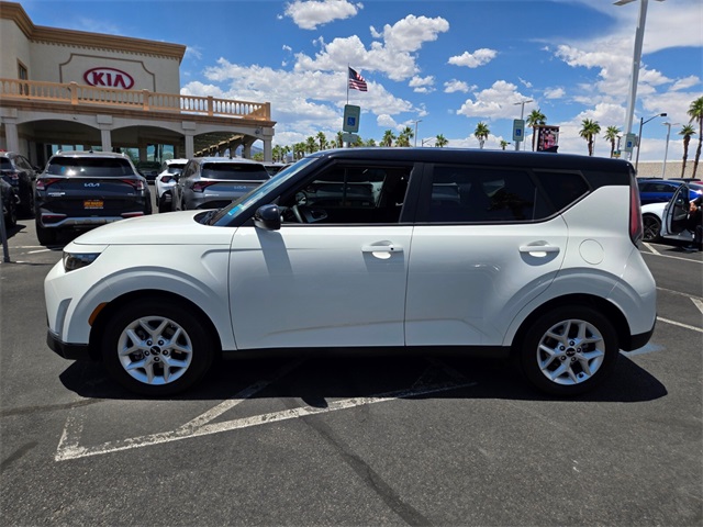 CARFAX One-Owner.Odometer is 15870 miles below market average!29/35 City/Highway MPGClear White w/Black Roof 2023 Kia Soul S FWD CVT 2.0L I4 DOHCIf you don't drive here, you can't save here!Price may not include recon fee. 16" Alloy Wheels, 4-Wheel Disc Brakes, 6 Speakers, ABS brakes, Air Conditioning, Alloy wheels, AM/FM radio: SiriusXM, Apple CarPlay & Android Auto, Auto High-beam Headlights, Automatic temperature control, Brake assist, Bumpers: body-color, Carpeted Floor Mats, Compass, Delay-off headlights, Driver door bin, Driver vanity mirror, Dual front impact airbags, Dual front side impact airbags, Electronic Stability Control, Emergency communication system, Exterior Parking Camera Rear, Front anti-roll bar, Front Bucket Seats, Front Center Armrest, Front dual zone A/C, Front reading lights, Front wheel independent suspension, Fully automatic headlights, Illuminated entry, Low tire pressure warning, Navigation System, Occupant sensing airbag, Outside temperature display, Overhead airbag, Overhead console, Panic alarm, Passenger door bin, Passenger vanity mirror, Power door mirrors, Power driver seat, Power steering, Power windows, Radio data system, Radio: AM/FM/MP3/HD Audio System, Rear window defroster, Rear window wiper, Remote keyless entry, Speed control, Speed-sensing steering, Split folding rear seat, Steering wheel mounted audio controls, Tachometer, Telescoping steering wheel, Tilt steering wheel, Traction control, Trip computer, Variably intermittent wipers, and Woven & Tricot Cloth Seat Trim.