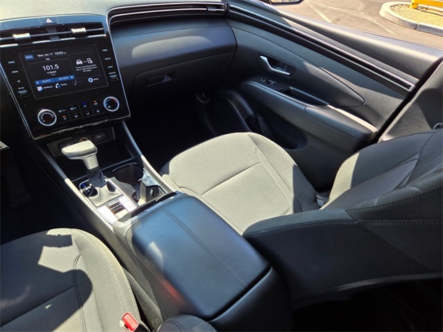 24/29 City/Highway MPGPhantom Black 2022 Hyundai Tucson SE AWD 8-Speed Automatic with SHIFTRONIC 2.5L I4 DGI DOHC 16V LEV3-ULEV70 187hp AWD.If you don't drive here, you can't save here!Price may not include recon fee. Cargo Package (Cargo Net, Cargo Tray, and First Aid Kit), Option Group 01, AWD, 3.648 Axle Ratio, 4-Wheel Disc Brakes, 6 Speakers, ABS brakes, Air Conditioning, Alloy wheels, AM/FM radio, Apple CarPlay & Android Auto, Auto High-beam Headlights, Brake assist, Bumpers: body-color, Cargo Cover, Carpeted Floor Mats, Delay-off headlights, Driver door bin, Driver vanity mirror, Dual front impact airbags, Dual front side impact airbags, Electronic Stability Control, Four wheel independent suspension, Front anti-roll bar, Front Bucket Seats, Front Center Armrest, Front reading lights, Fully automatic headlights, Illuminated entry, Low tire pressure warning, Occupant sensing airbag, Outside temperature display, Overhead airbag, Overhead console, Panic alarm, Passenger door bin, Passenger vanity mirror, Power door mirrors, Power steering, Power windows, Radio data system, Radio: AM/FM/HD Audio System, Rear anti-roll bar, Rear seat center armrest, Rear window defroster, Rear window wiper, Remote keyless entry, Security system, Speed control, Split folding rear seat, Spoiler, Stain & Odor Resistant Cloth Seat Trim, Steering wheel mounted audio controls, Tachometer, Telescoping steering wheel, Tilt steering wheel, Traction control, Trip computer, Variably intermittent wipers, Wheel Locks, and Wheels: 17" x 7.0J" Alloy.