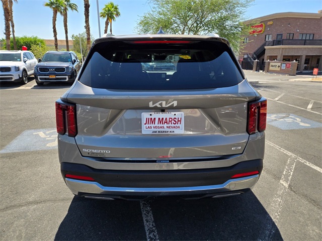Recent Arrival!CARFAX One-Owner.Odometer is 2349 miles below market average!34/34 City/Highway MPGVolcanic Sand 2025 Kia Sorento Hybrid EX AWD 6-Speed Automatic 1.6L Turbo GDI 4-Cylinder 1.6L Turbo GDI 4-Cylinder.If you don't drive here, you can't save here!Price may not include recon fee. EX Panoramic Sunroof Package (LED Interior Lighting and Power Sunroof w/Power Sunshade), 1.6L Turbo GDI 4-Cylinder, 3rd row seats: split-bench, 4-Wheel Disc Brakes, 6 Speakers, ABS brakes, Air Conditioning, Alloy wheels, AM/FM radio: SiriusXM, Apple CarPlay & Android Auto, Auto High-beam Headlights, Automatic temperature control, Brake assist, Bumpers: body-color, Carpeted Floor Mats, Delay-off headlights, Driver door bin, Driver vanity mirror, Dual front impact airbags, Dual front side impact airbags, Electronic Stability Control, Emergency communication system: 911 Connect, Exterior Parking Camera Rear, Four wheel independent suspension, Front anti-roll bar, Front Bucket Seats, Front Center Armrest, Front dual zone A/C, Front fog lights, Front reading lights, Fully automatic headlights, Heated door mirrors, Heated Front Bucket Seats, Heated front seats, Illuminated entry, Knee airbag, Leather steering wheel, Low tire pressure warning, Navigation System, Occupant sensing airbag, Outside temperature display, Overhead airbag, Overhead console, Panic alarm, Passenger door bin, Passenger vanity mirror, Power door mirrors, Power driver seat, Power Liftgate, Power passenger seat, Power steering, Power windows, Radio data system, Radio: AM/FM/SiriusXM Audio System, Rear air conditioning, Rear anti-roll bar, Rear reading lights, Rear window defroster, Rear window wiper, Remote keyless entry, Security system, Smart Key w/ Push Button and Remote Start, Speed control, Speed-sensing steering, Split folding rear seat, Spoiler, Steering wheel mounted audio controls, SynTex Artificial Leather Seat Trim, Tachometer, Telescoping steering wheel, Tilt steering wheel, Traction control, Trip computer, Turn signal indicator mirrors, Variably intermittent wipers, and Wheels: 19" Machine-Finished Aero Alloy.