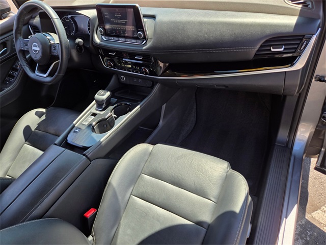 Priced below KBB Fair Purchase Price!29/36 City/Highway MPGGun Metallic 2022 Nissan Rogue SL FWD CVT with Xtronic 1.5L I3 Turbocharged DOHC 12V LEV3-ULEV50 201hpIf you don't drive here, you can't save here!Price may not include recon fee. 19" Aluminum Alloy Wheels, 4-Wheel Disc Brakes, 5.604 Axle Ratio, 6 Speakers, ABS brakes, Air Conditioning, Alloy wheels, AM/FM Radio, AM/FM radio: SiriusXM, Auto High-beam Headlights, Auto-dimming Rear-View mirror, Automatic temperature control, Black Splash Guards (Set of 4), Bose Premium Audio System, Brake assist, Bumpers: body-color, Chrome Rear Bumper Protector, Delay-off headlights, Driver door bin, Driver vanity mirror, Dual front impact airbags, Dual front side impact airbags, Electronic Stability Control, Emergency communication system: NissanConnect Services, First Aid Kit, Floor Mats w/2-Piece Cargo Area Protector, Four wheel independent suspension, Front anti-roll bar, Front Bucket Seats, Front Center Armrest, Front dual zone A/C, Front fog lights, Front reading lights, Fully automatic headlights, Heated door mirrors, Heated Front Bucket Seats, Heated front seats, Heated steering wheel, Illuminated entry, Knee airbag, Leather-Appointed Seat Trim, Low tire pressure warning, Memory seat, NissanConnect featuring Apple CarPlay and Android Auto, Occupant sensing airbag, Outside temperature display, Overhead airbag, Overhead console, Panic alarm, Passenger door bin, Passenger vanity mirror, Power door mirrors, Power driver seat, Power Liftgate, Power moonroof, Power passenger seat, Power steering, Power windows, Radio data system, Rear air conditioning, Rear anti-roll bar, Rear Parking Sensors, Rear reading lights, Rear seat center armrest, Rear side impact airbag, Rear window defroster, Rear window wiper, Remote keyless entry, Roof rack: rails only, Security system, Speed control, Speed-Sensitive Wipers, Split folding rear seat, Spoiler, Steering wheel mounted audio controls, Tachometer, Telescoping steering wheel, Tilt steering wheel, Traction control, Trip computer, Turn signal indicator mirrors, and Variably intermittent wipers.
