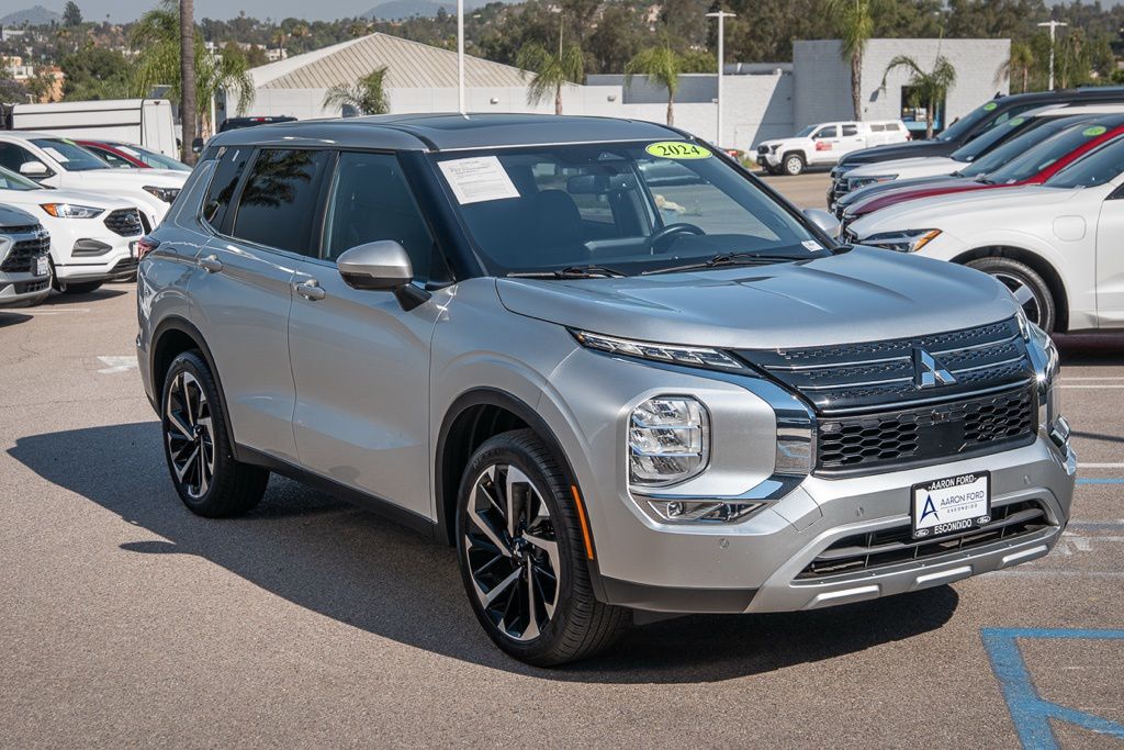Silver 2024 Mitsubishi Outlander SE FWD CVT 2.5L 4-Cylinder DOHC Android Auto & Apple CarPlay, Automatic temperature control, Exterior Parking Camera Rear, Front dual zone A/C, Heated Front Bucket Seats, Heated front seats, Navigation System, Power driver seat, Power Liftgate, Reclining 3rd row seat, Remote keyless entry, Spoiler, Synthetic Leather Seat Trim, Turn signal indicator mirrors, Wheels: 20" Two-Tone Alloy.Odometer is 9791 miles below market average! 24/31 City/Highway MPG